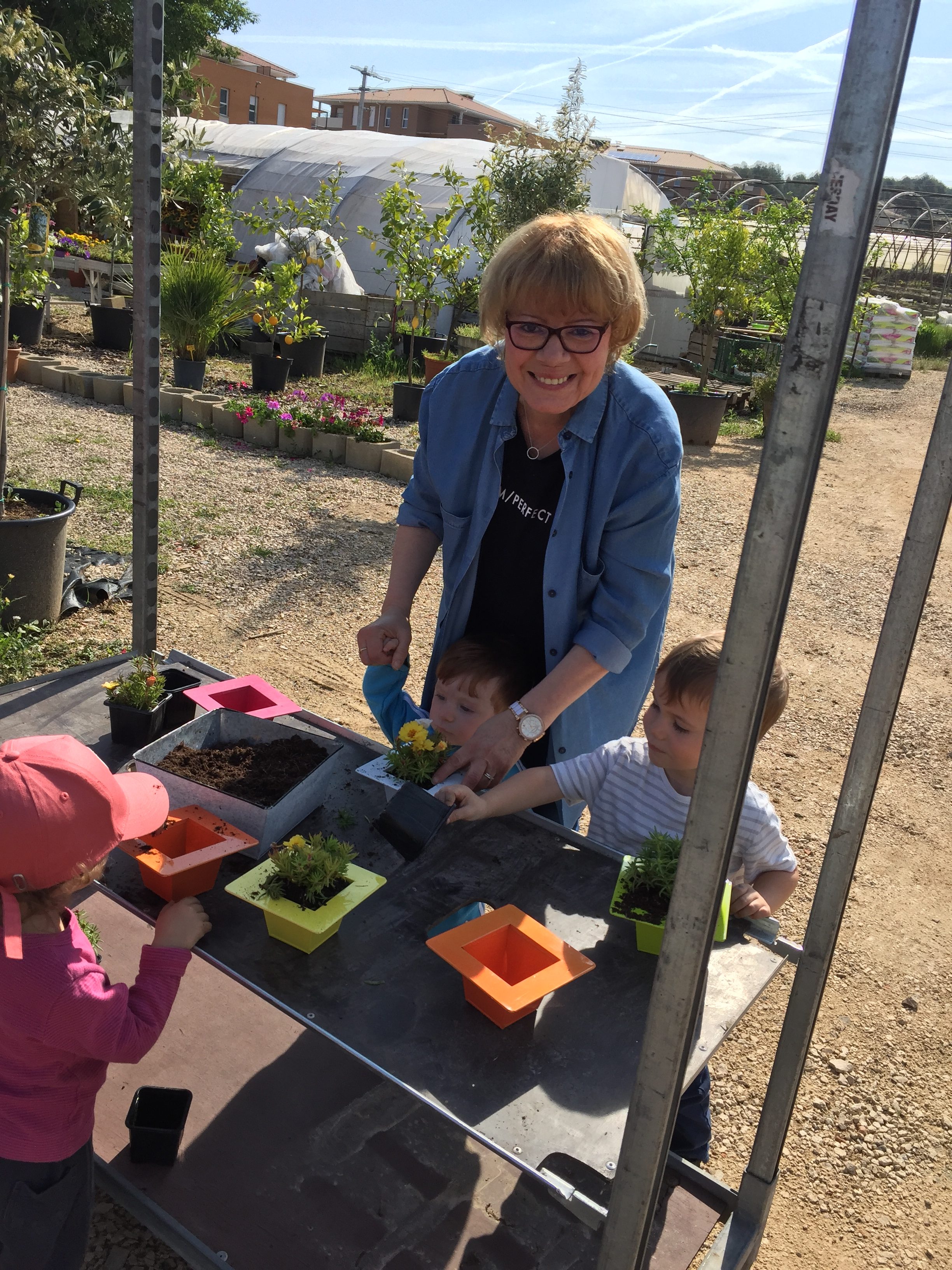 Aujourd’hui nous étions à la jardinerie du Capeou pour un moment de petite plantation avec les enfants