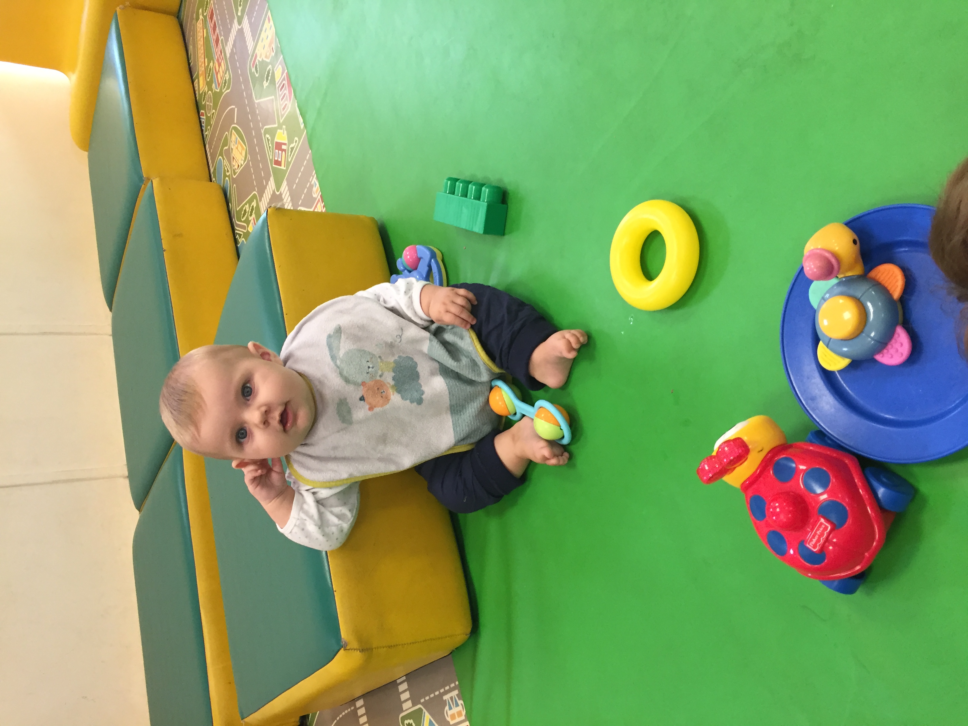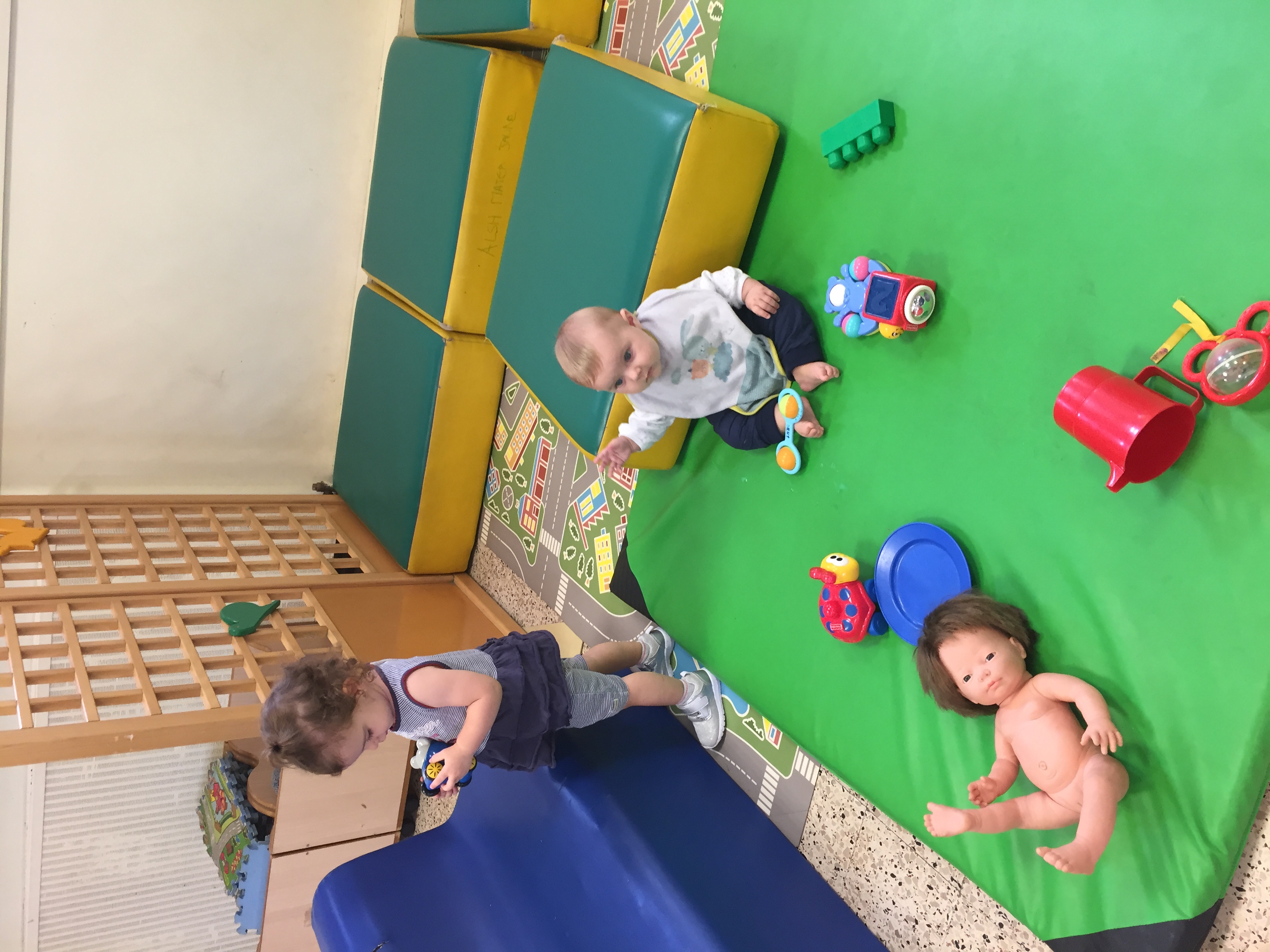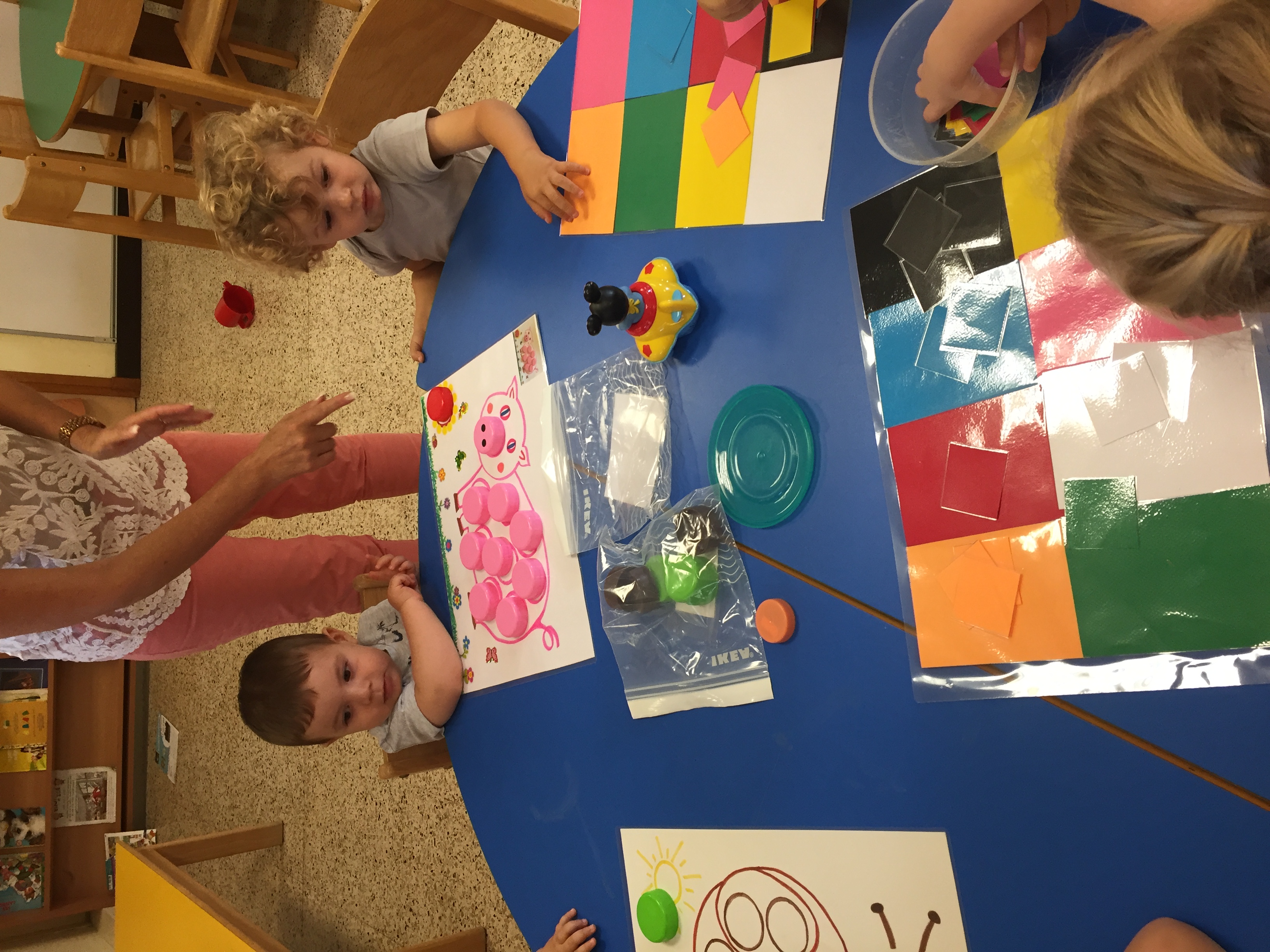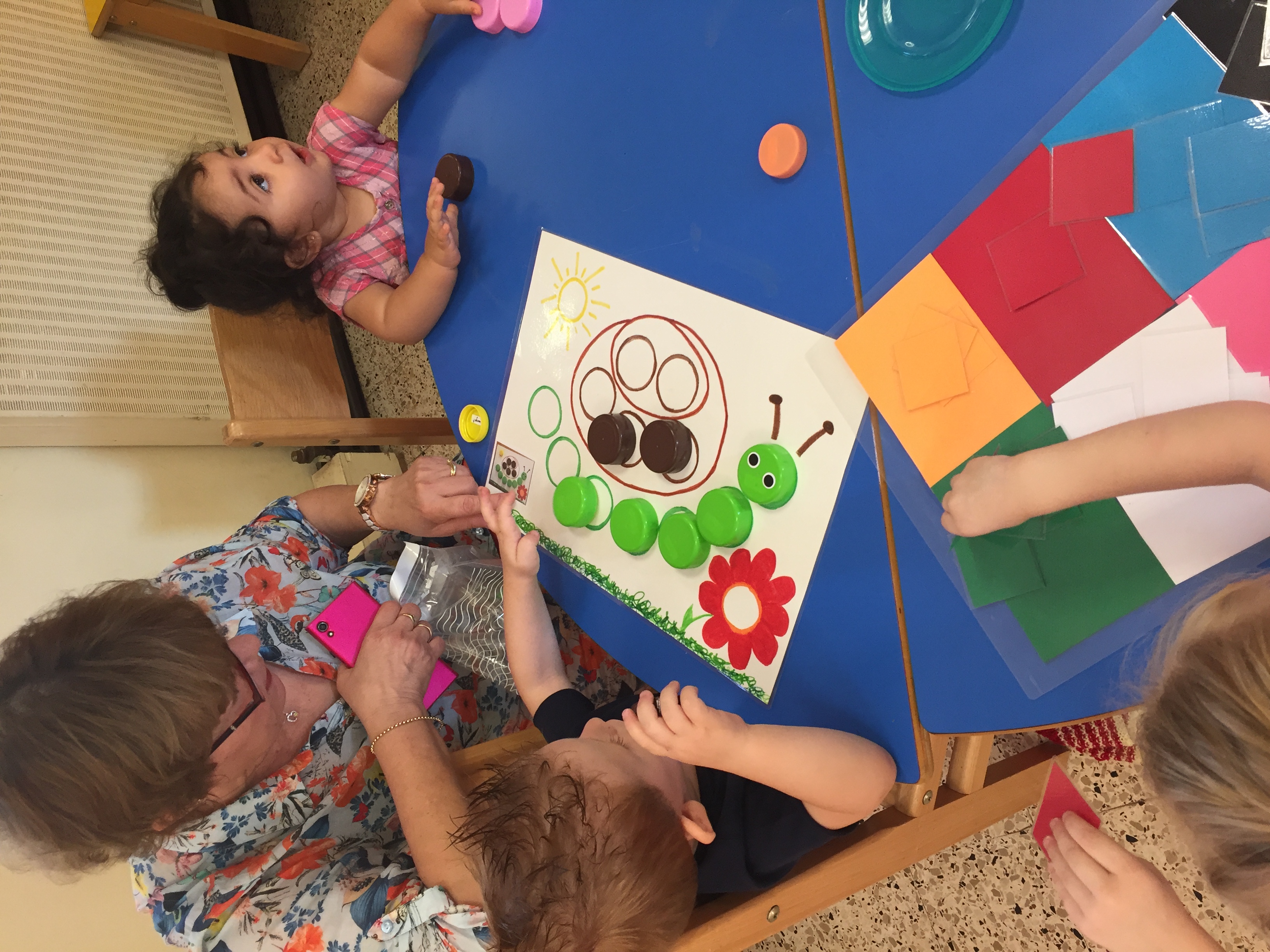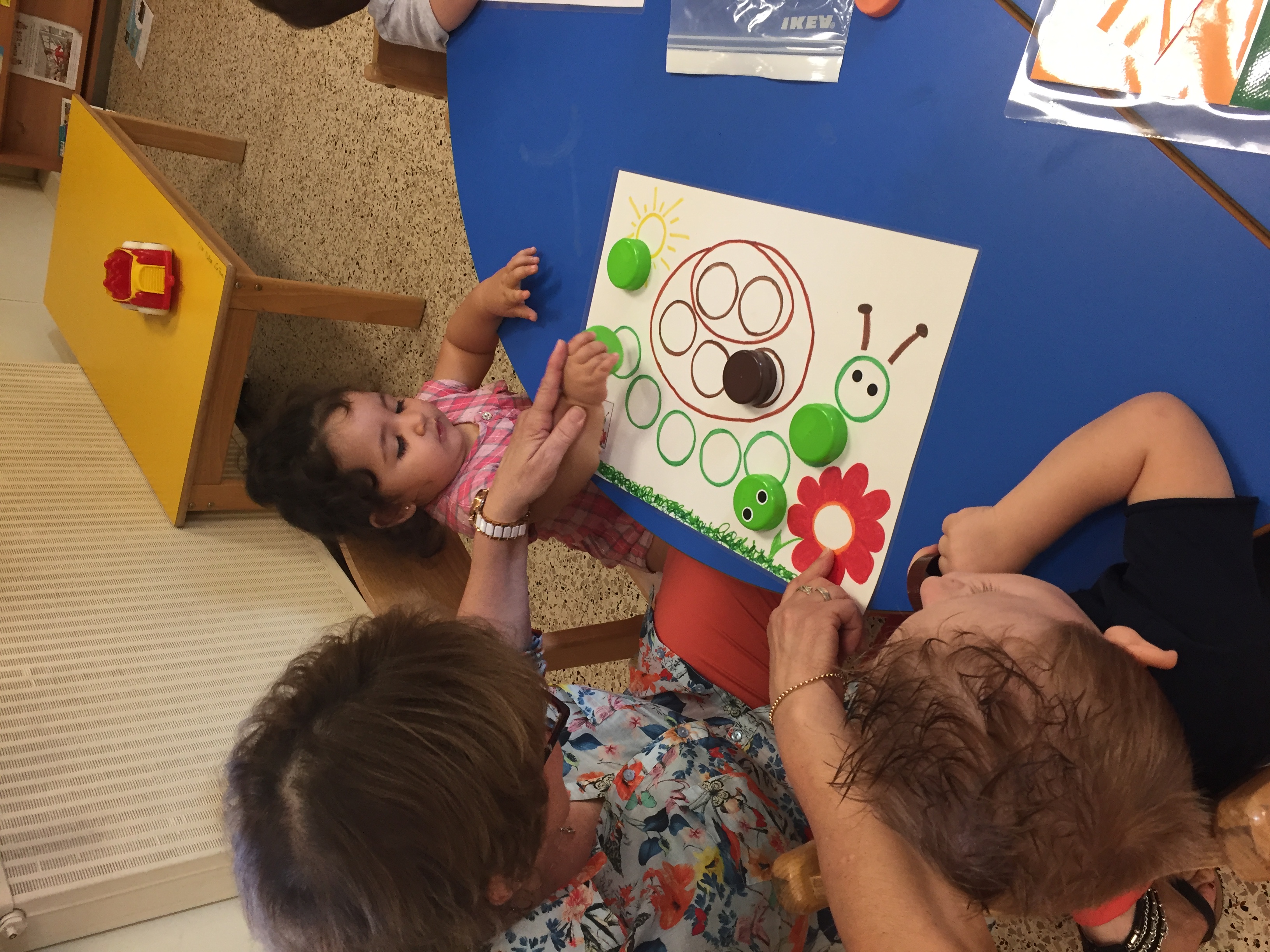 Nous étions ce matin au jardin de la petite enfance et nous avons proposé aux enfants un jeu de bouchon