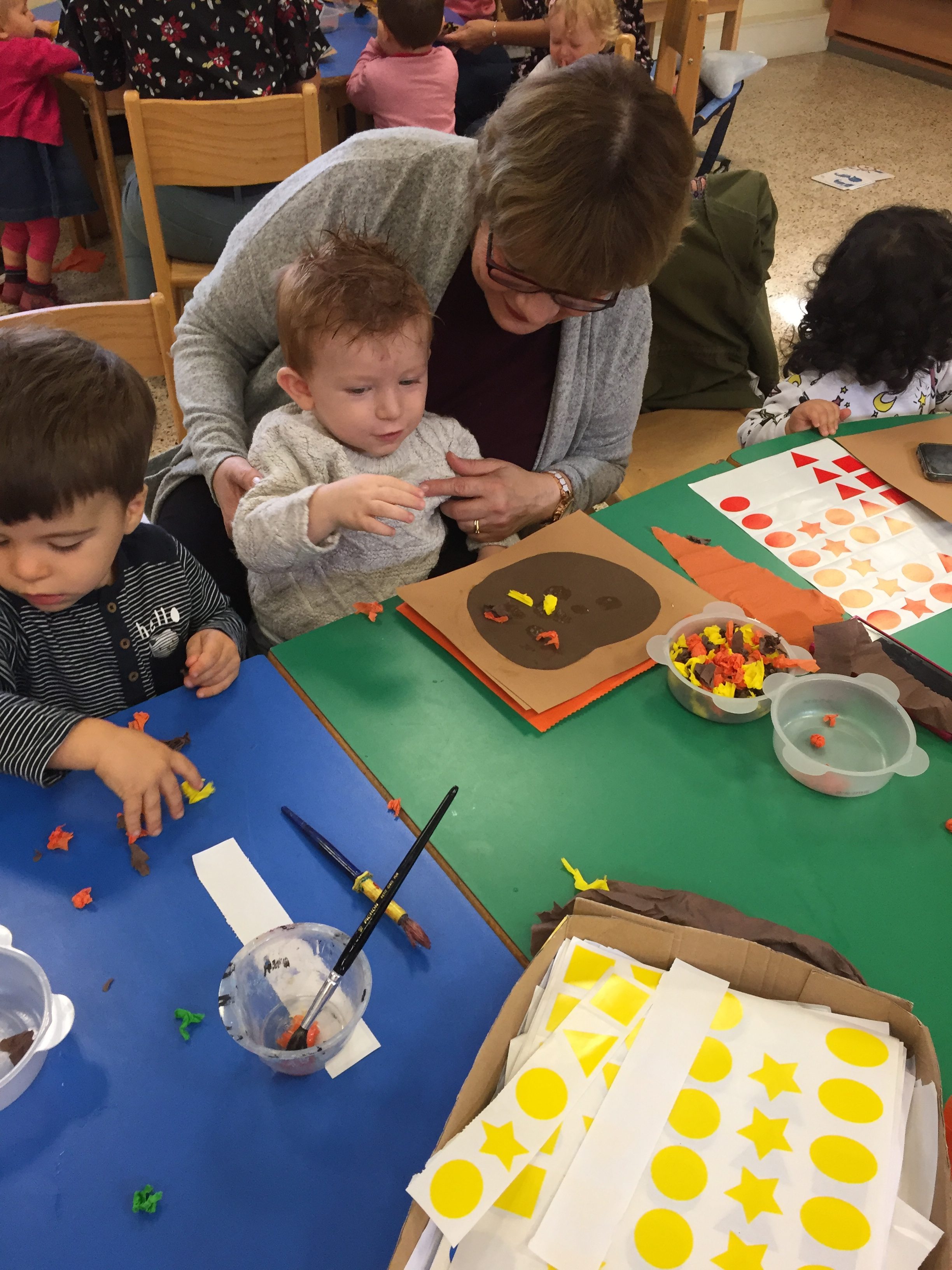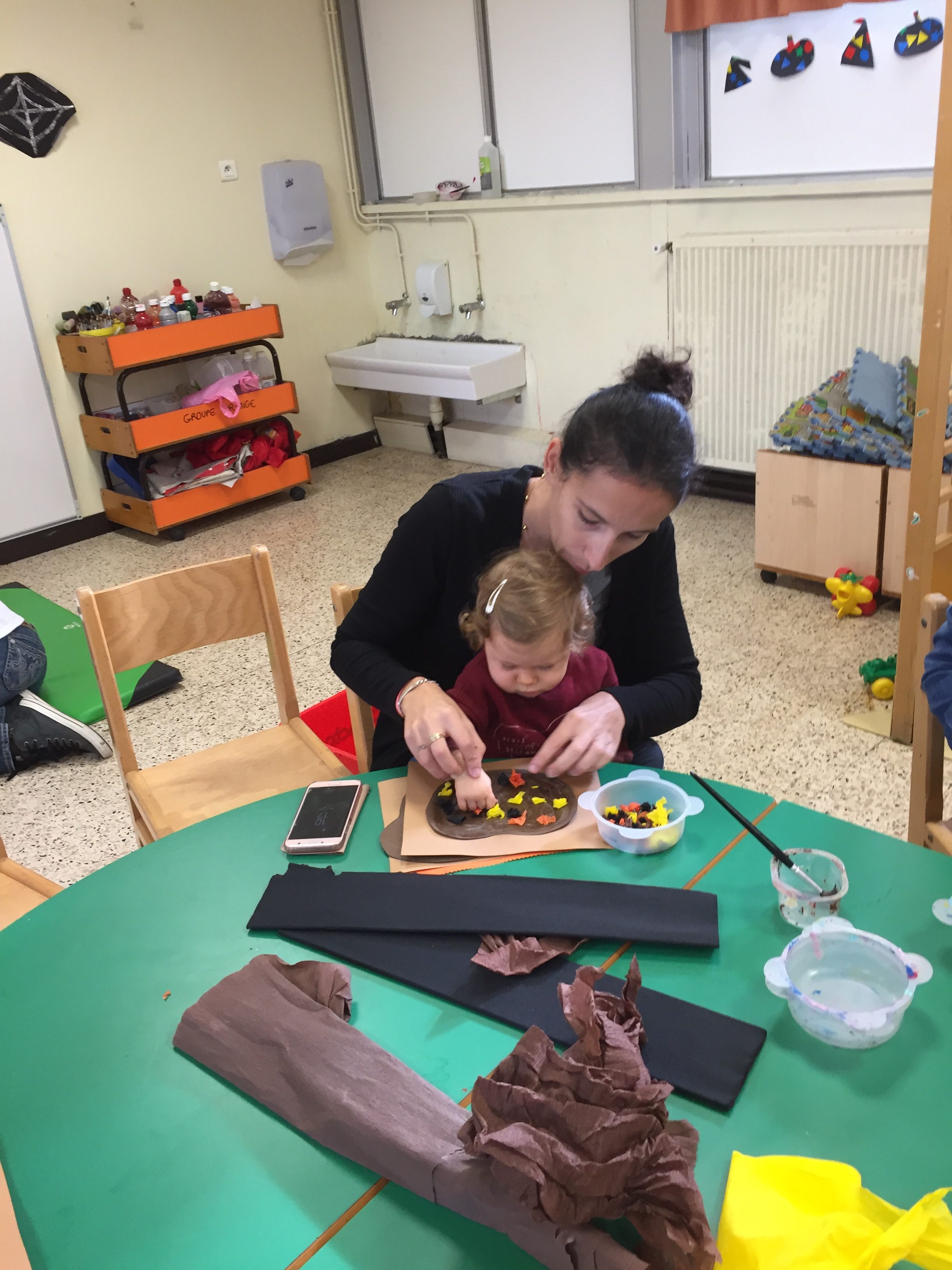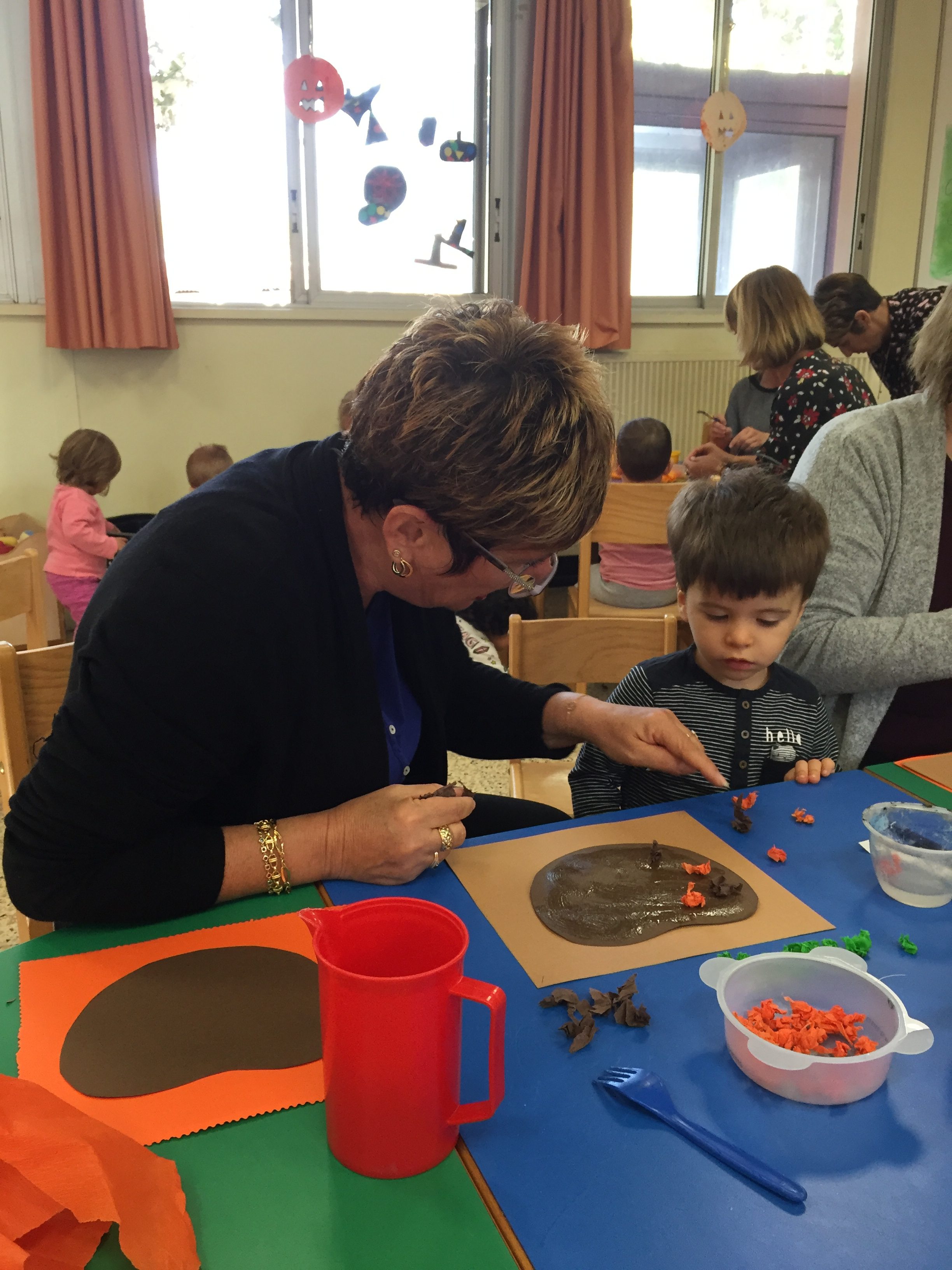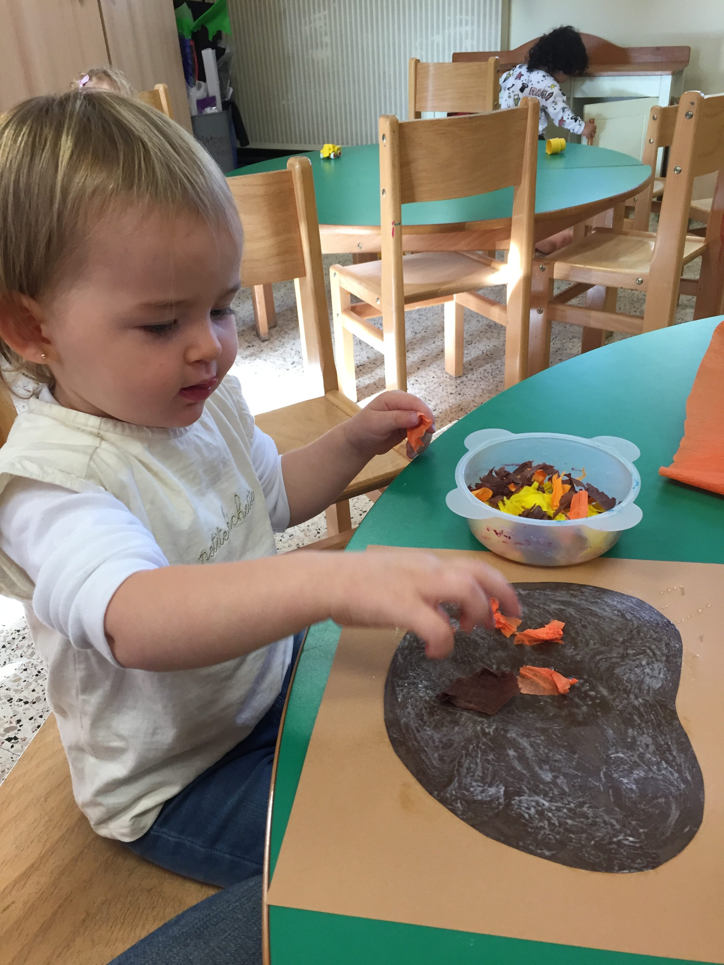 Aujourd’hui nous étions à la salle du jardin de la petite enfance pour proposer aux enfants du collage de papier crépon pour fabriquer une citrouille d’automne en faisons aussi référence à halloween