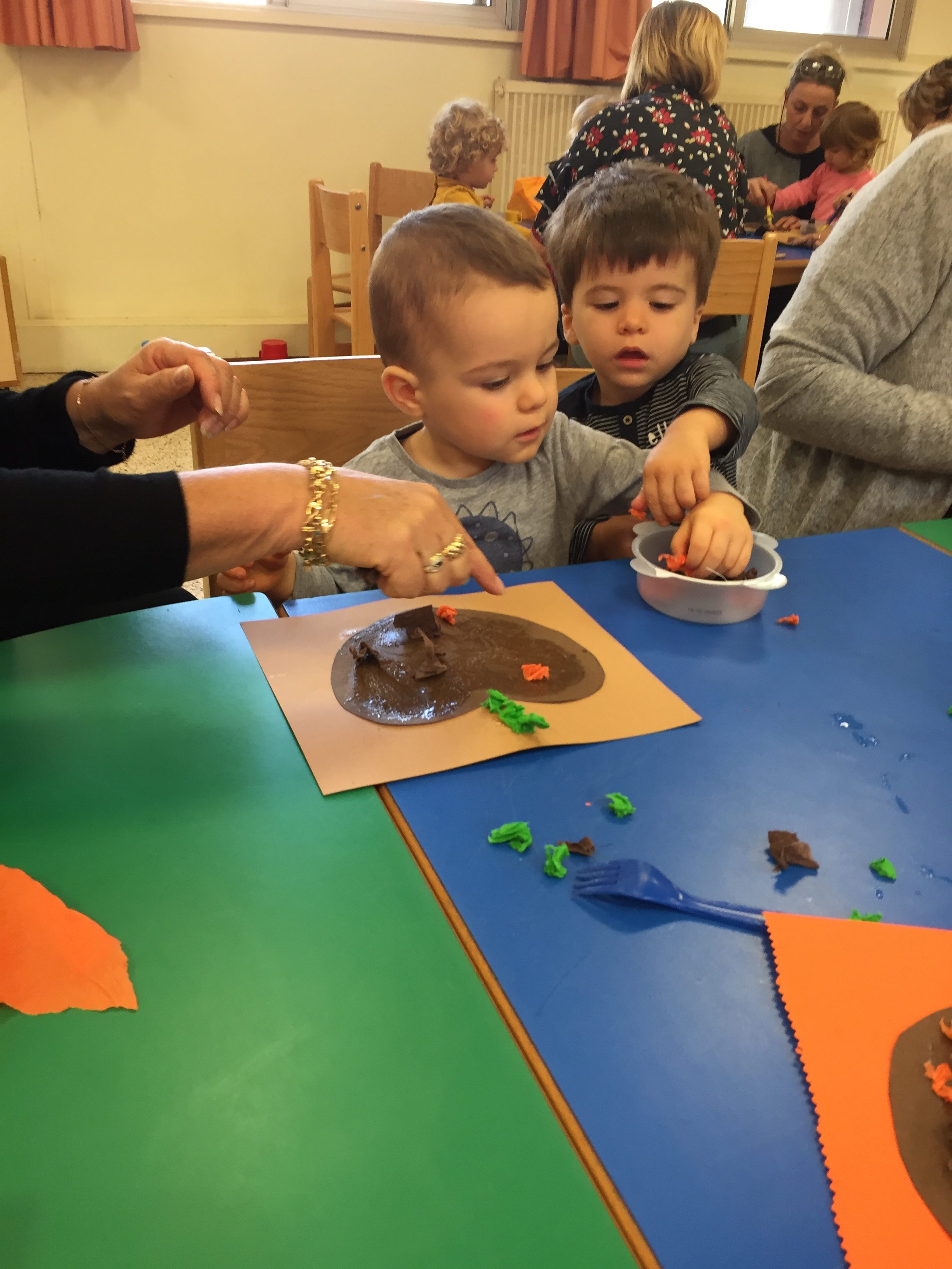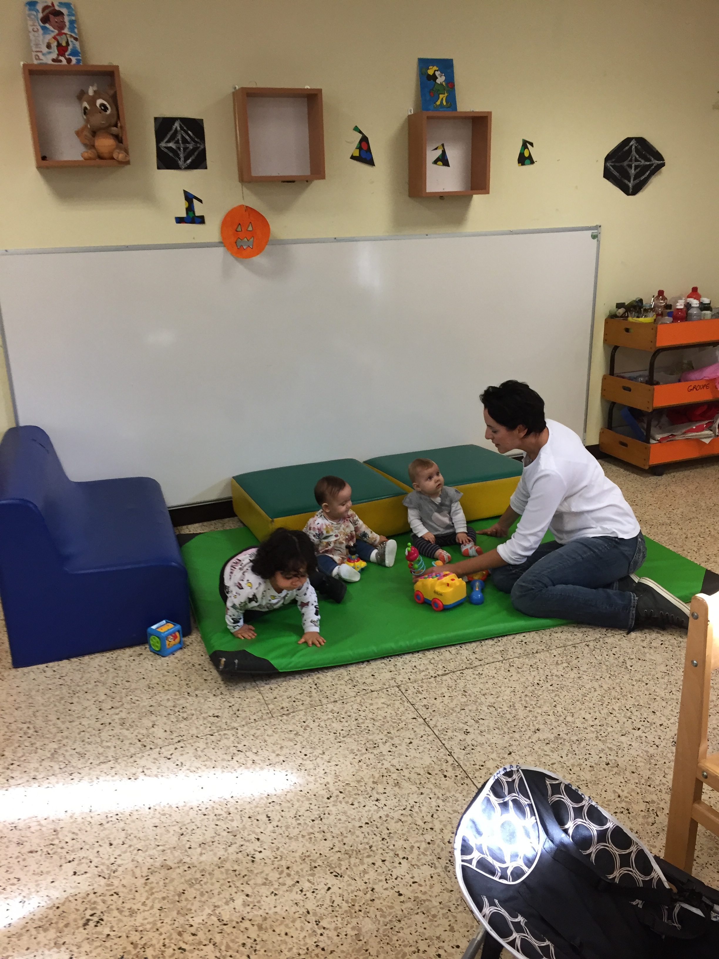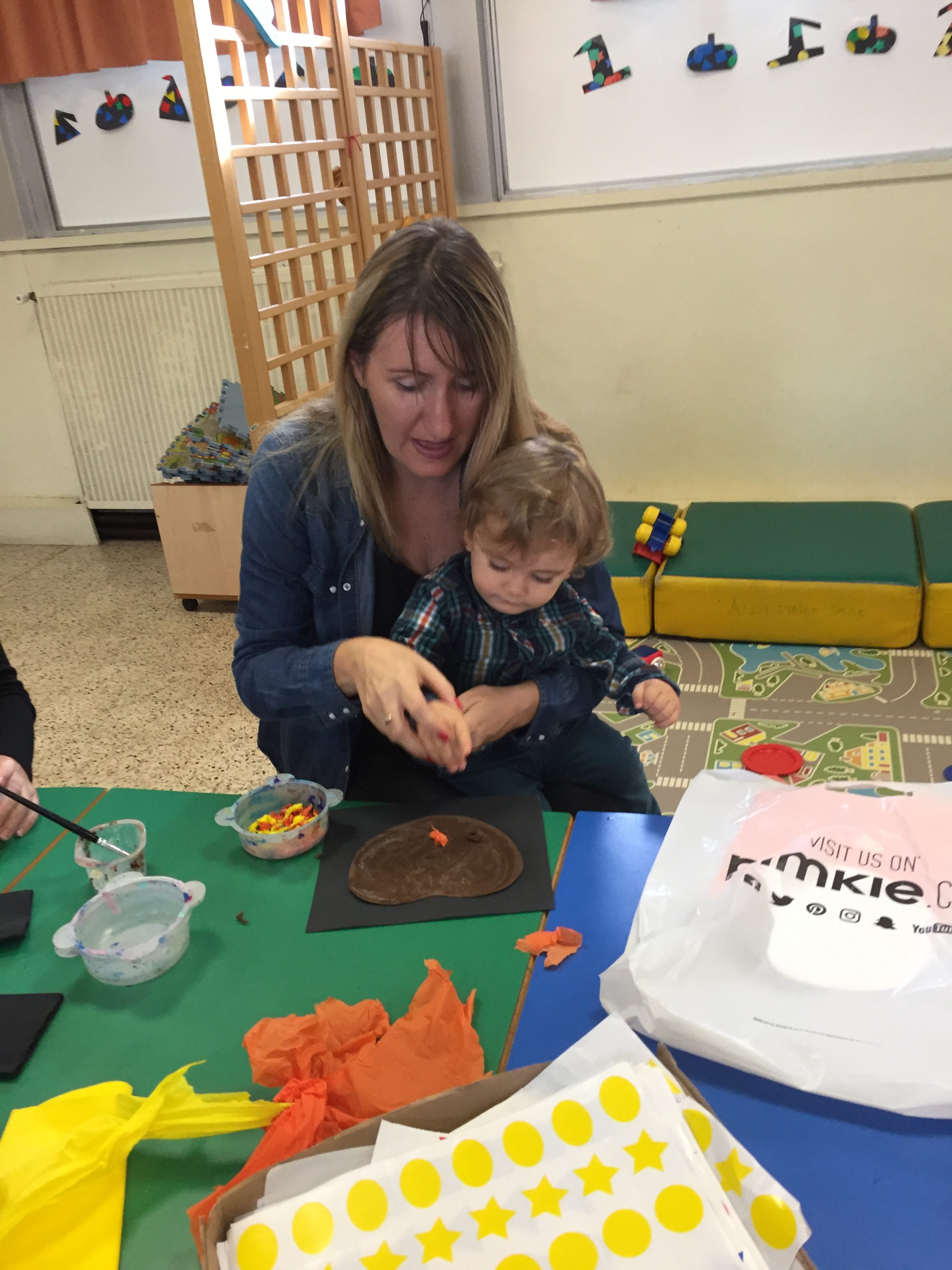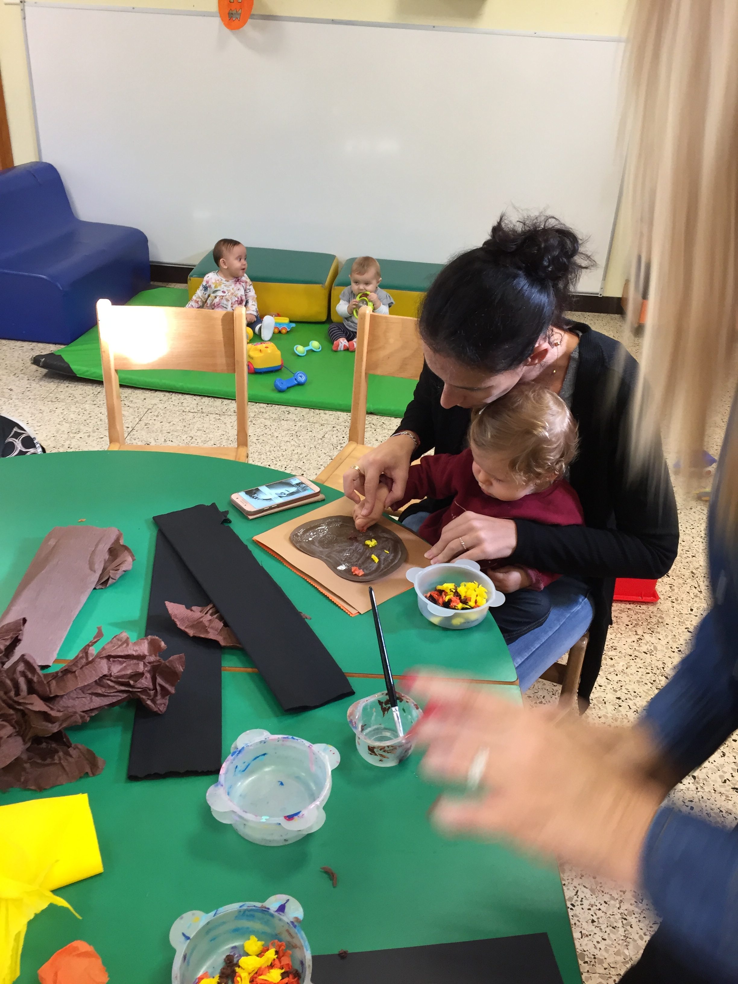 Aujourd’hui nous étions à la salle du jardin de la petite enfance pour proposer aux enfants du collage de papier crépon pour fabriquer une citrouille d’automne en faisons aussi référence à halloween