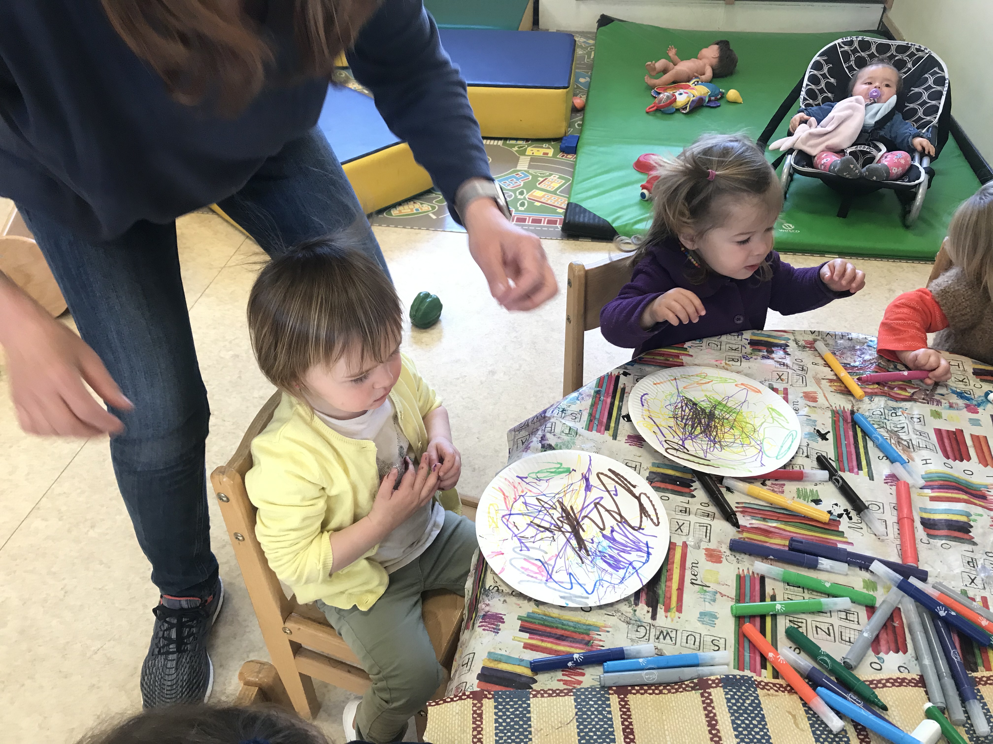 les poussins ont dessiné sur leur assiette libre de toutes couleurs, et de faire ce qu’ils voulaient dessus
