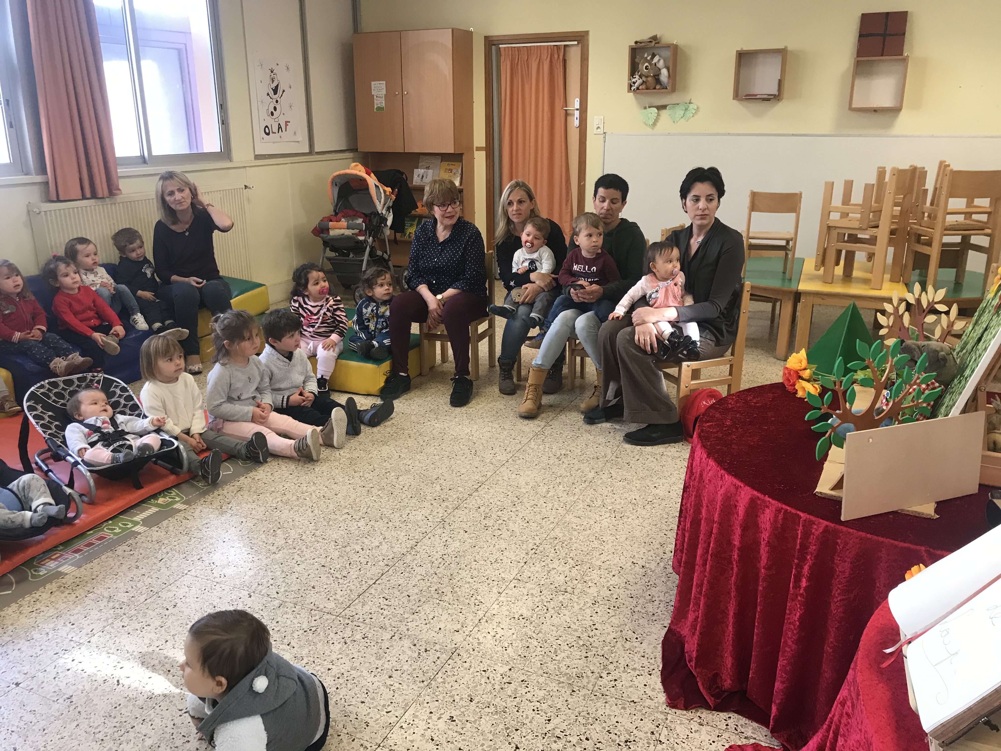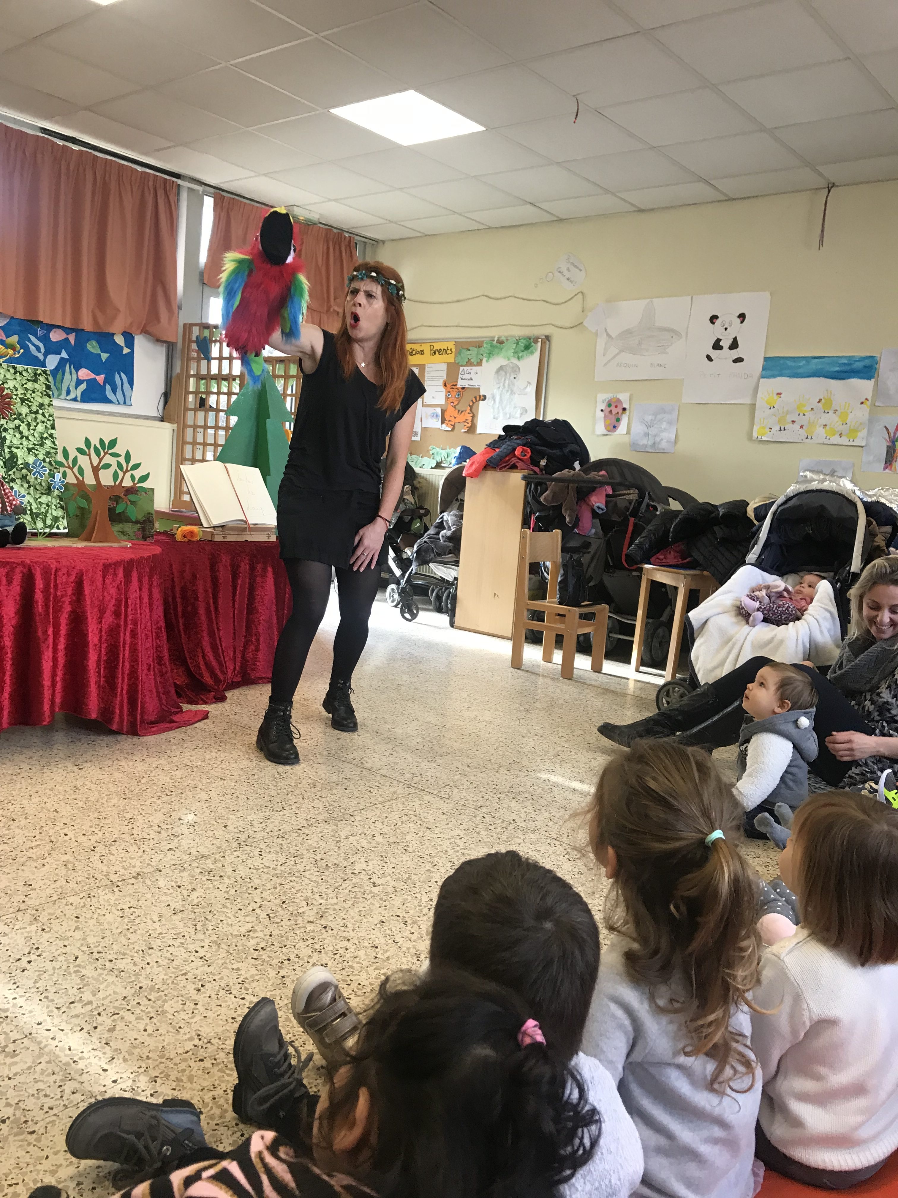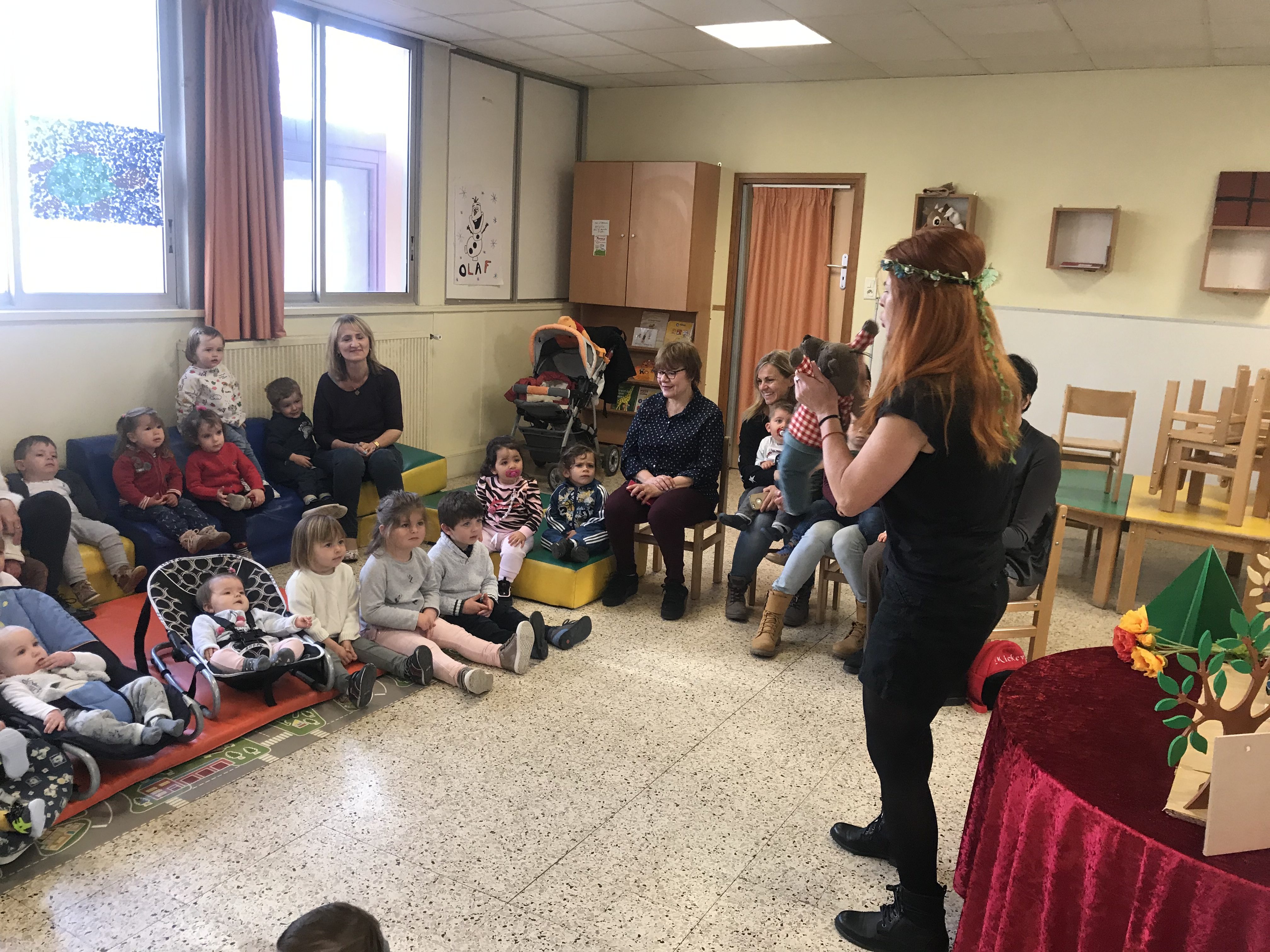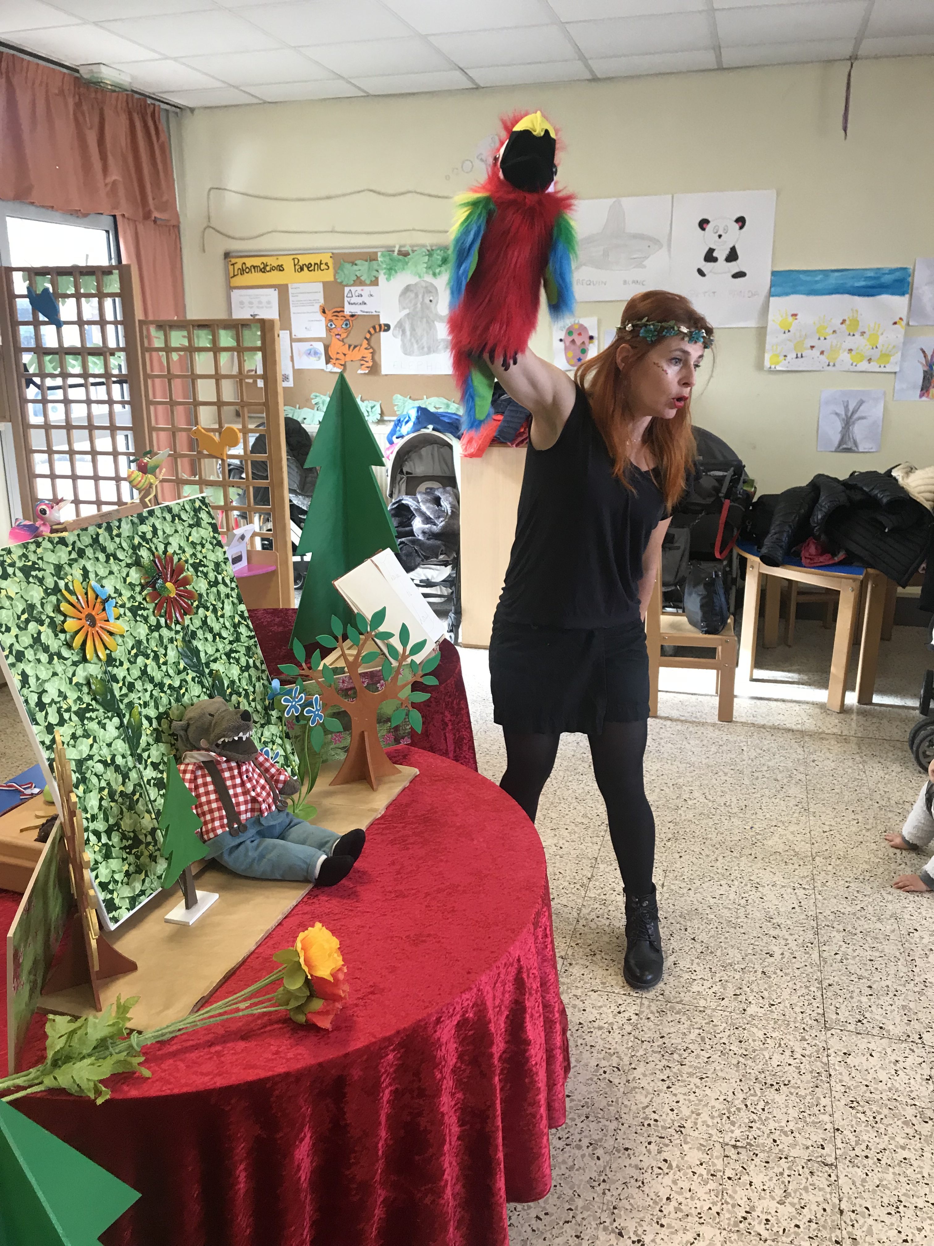 Jeudi Kathy nous a fait son spectacle avec une jolie histoire « loulou le loup » qui voulait gagner le concours et la médaille du plus méchant loup