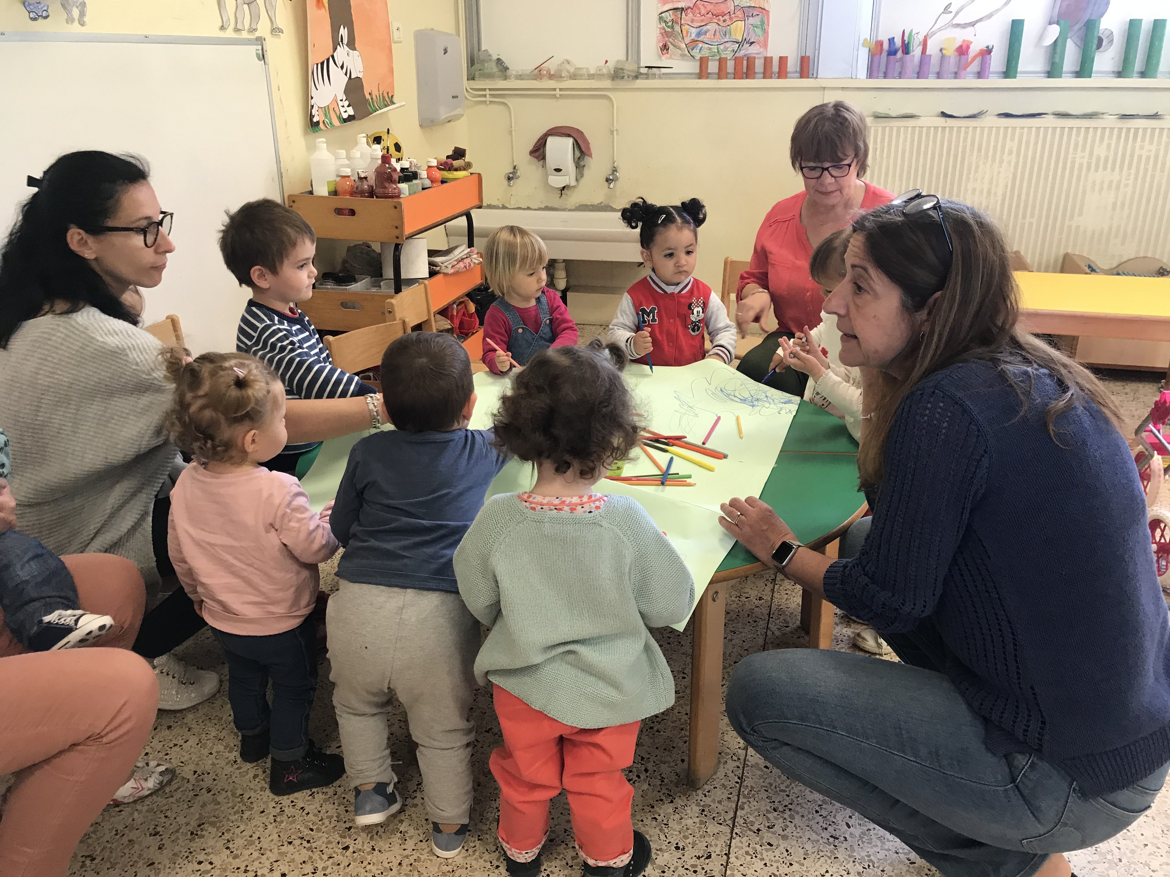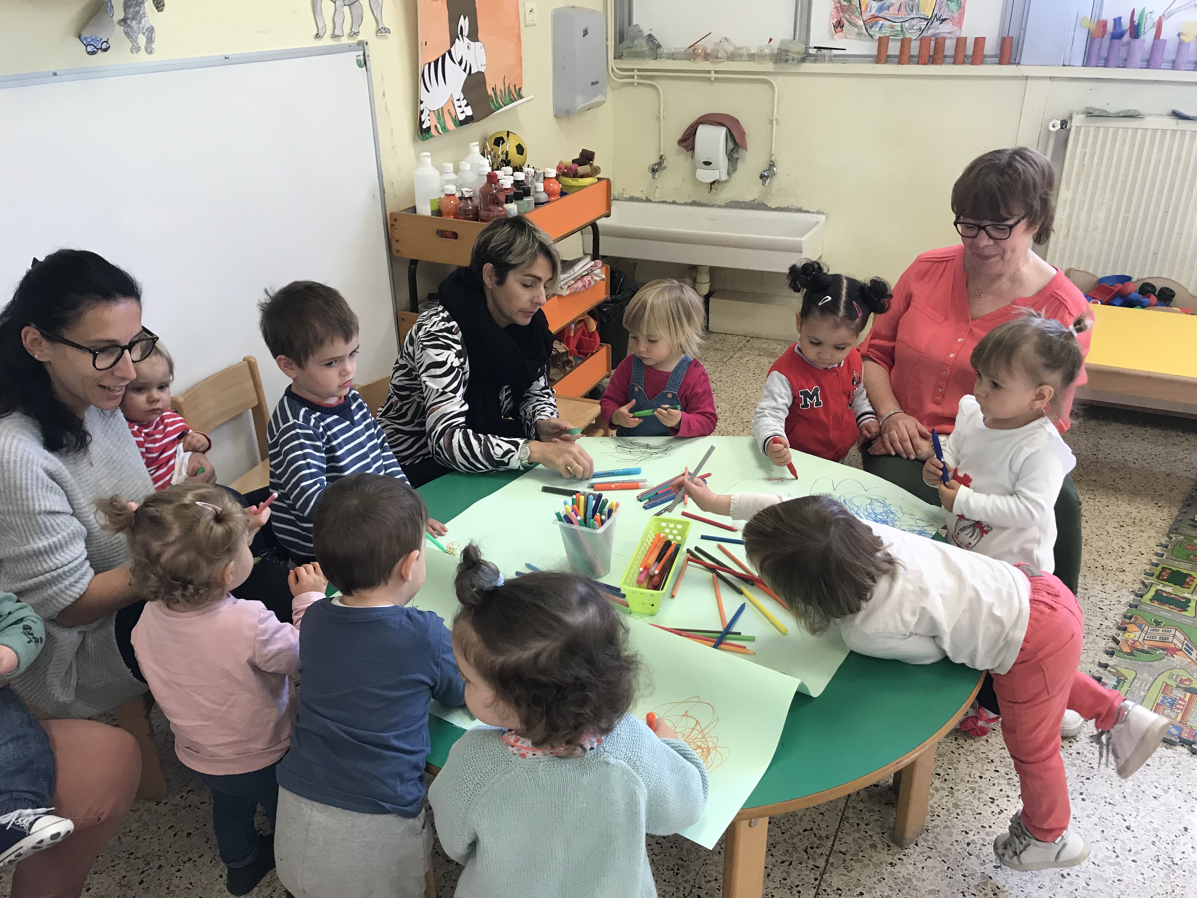 Ils sont debout autour de la table et vont tourner pour user de feutres, crayons et surtout « faire ensemble et partager »