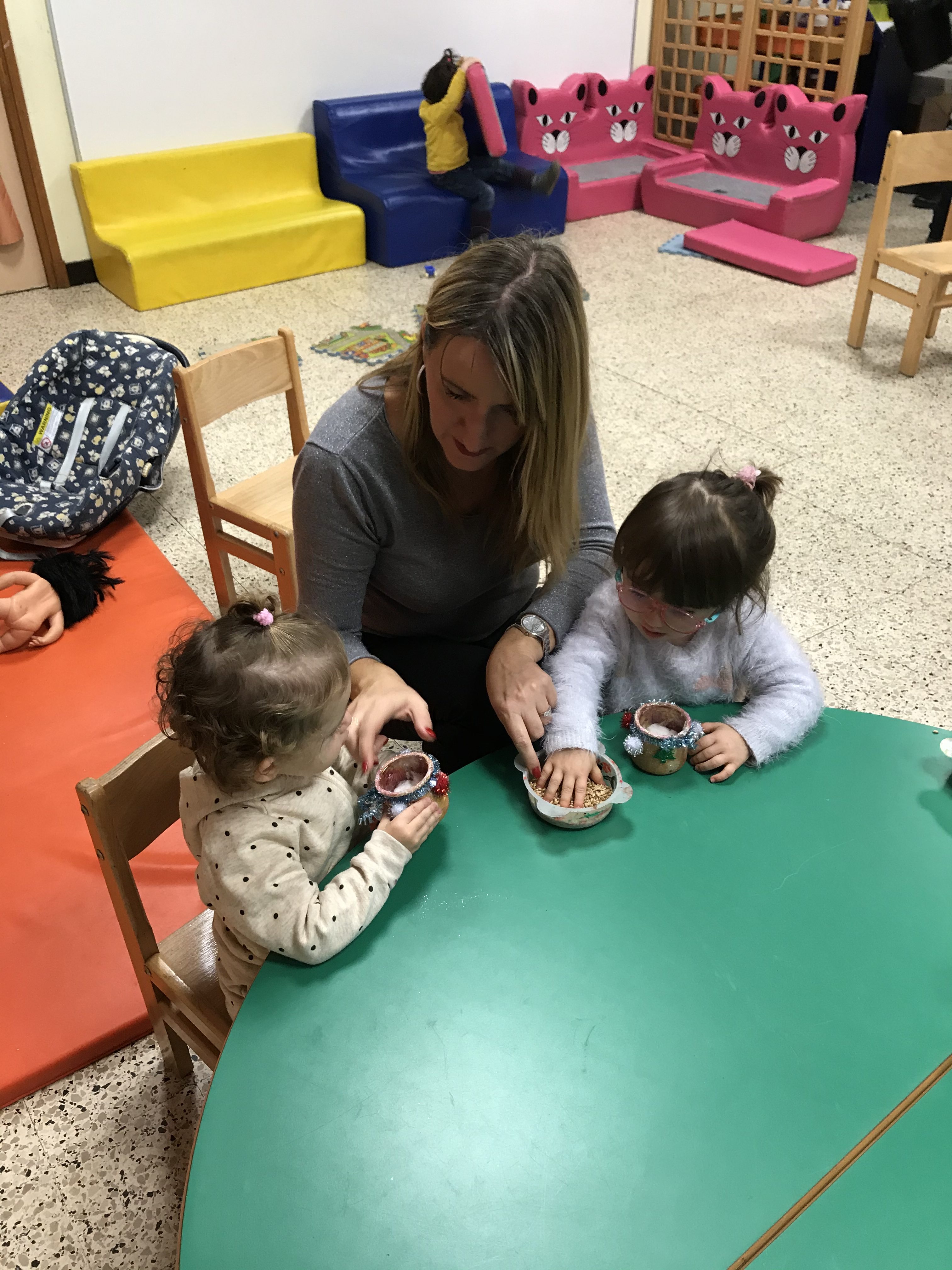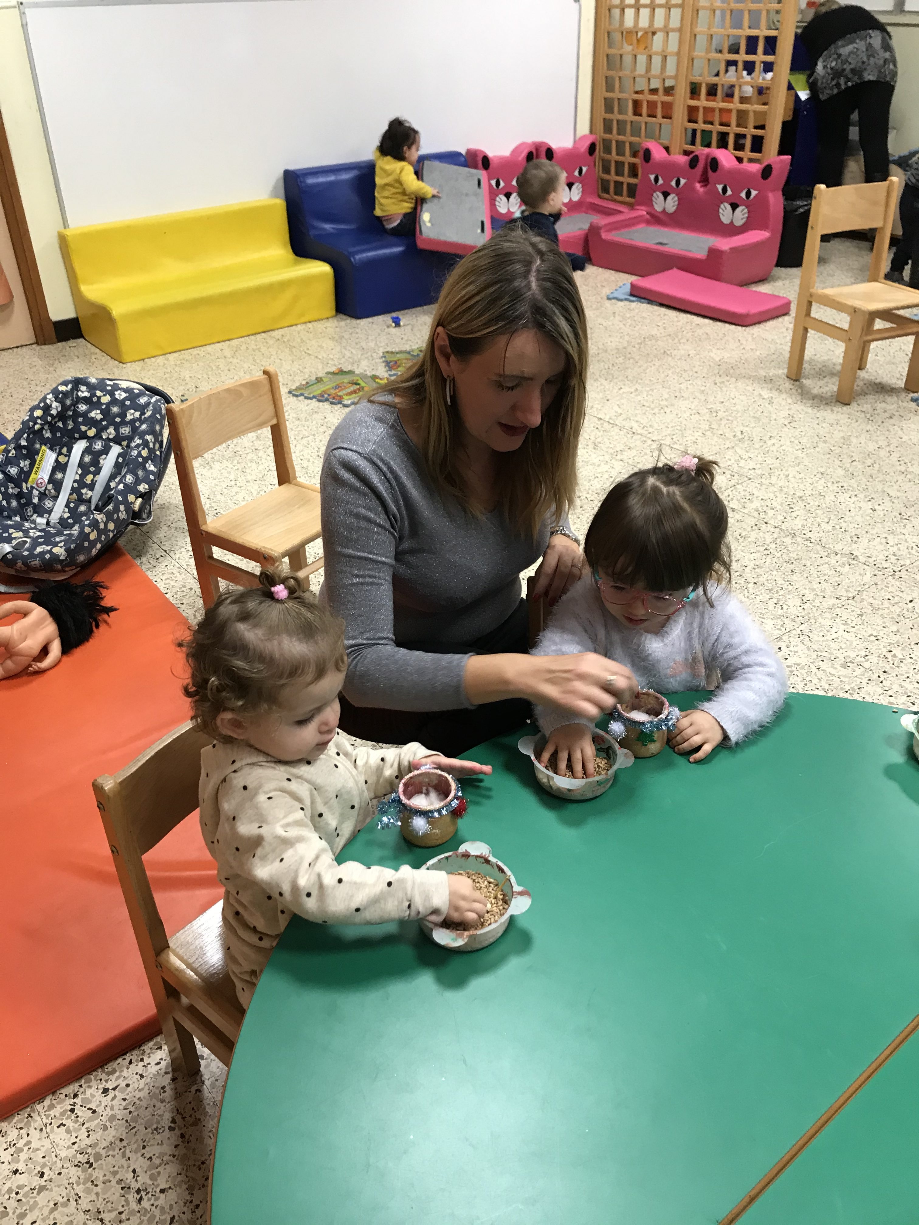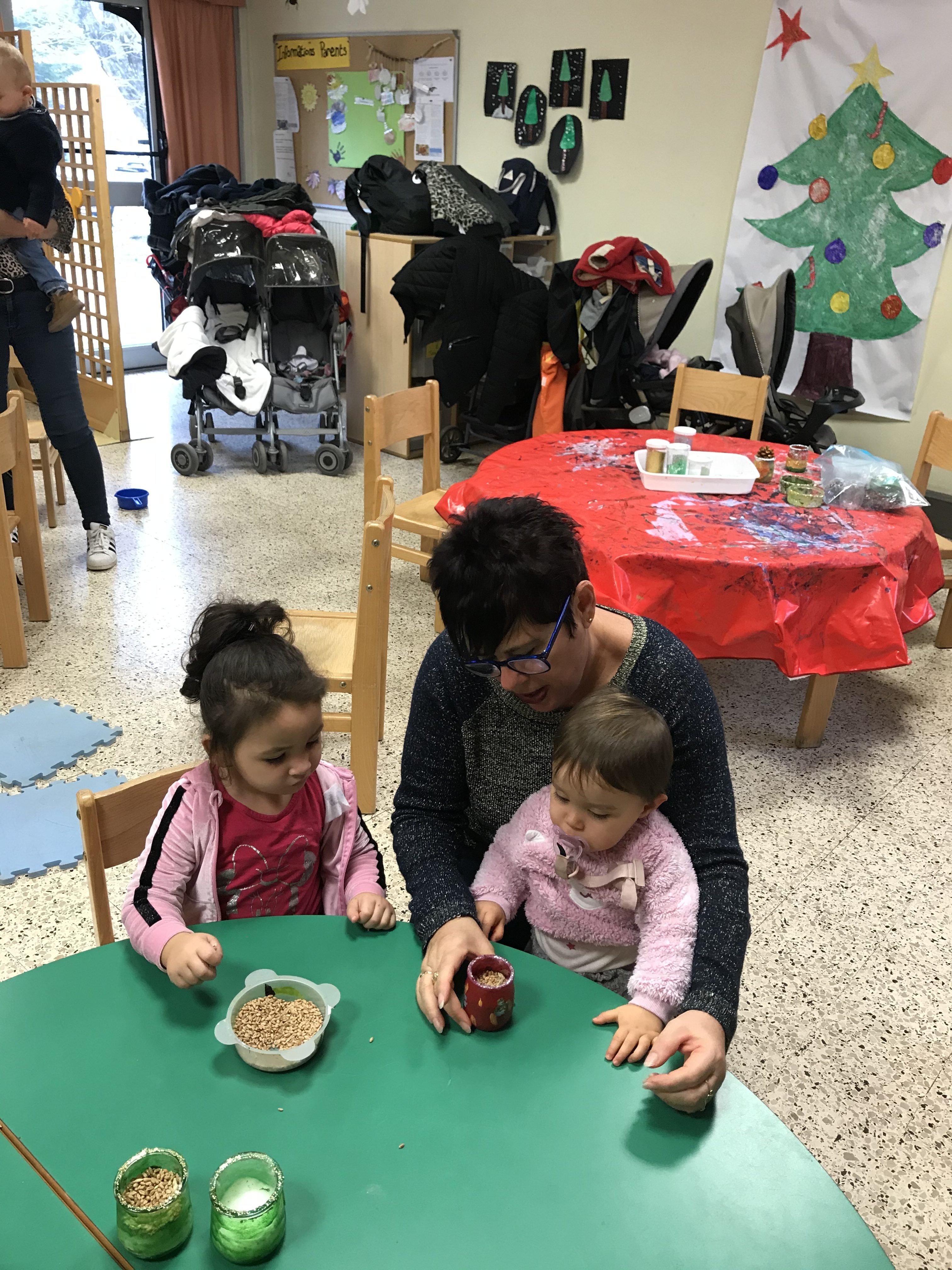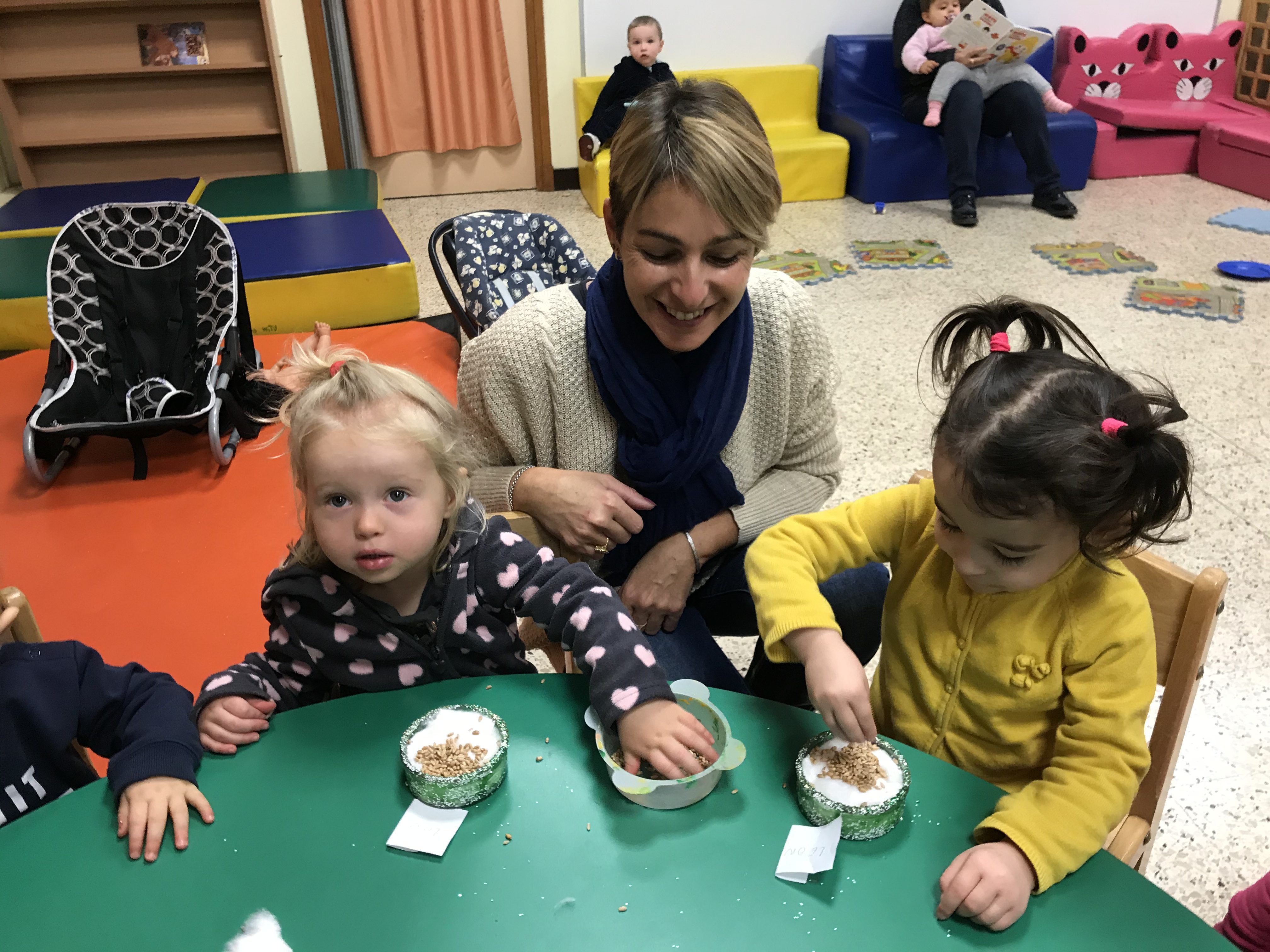 Le titre de l’histoire « Noël dans la forêt ». Elle va se déguiser en lutin fille « Une lutine » comme elle nous le présente. Son humour, ces sourires font la joie de nos poussins.
