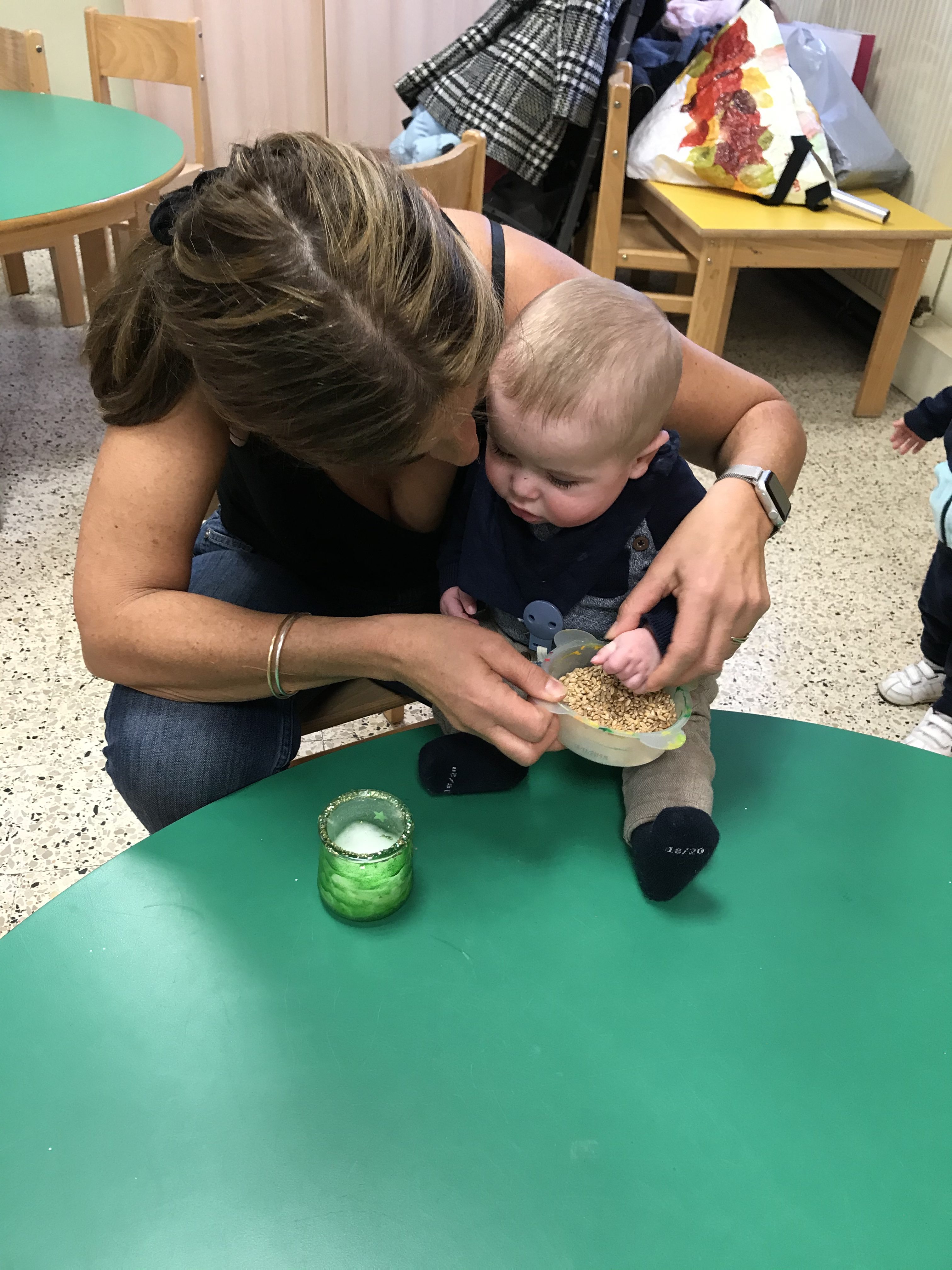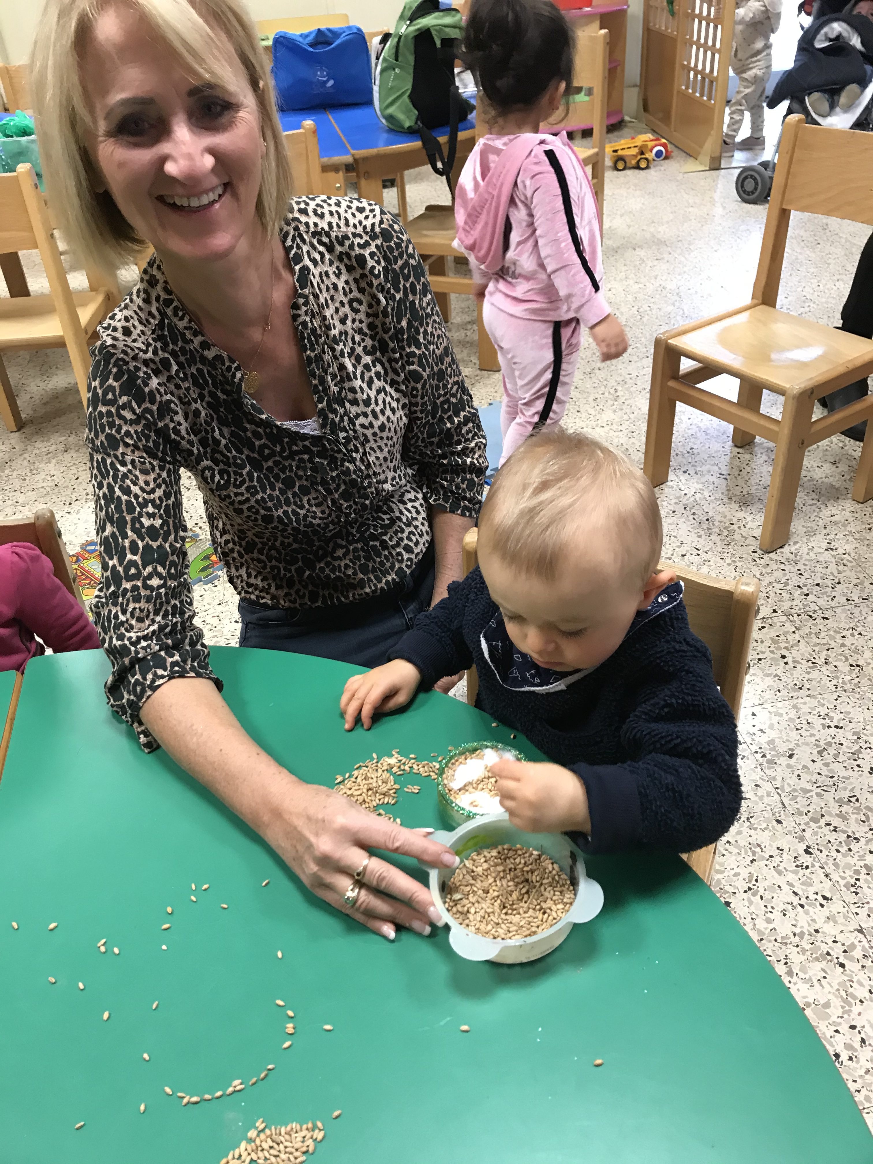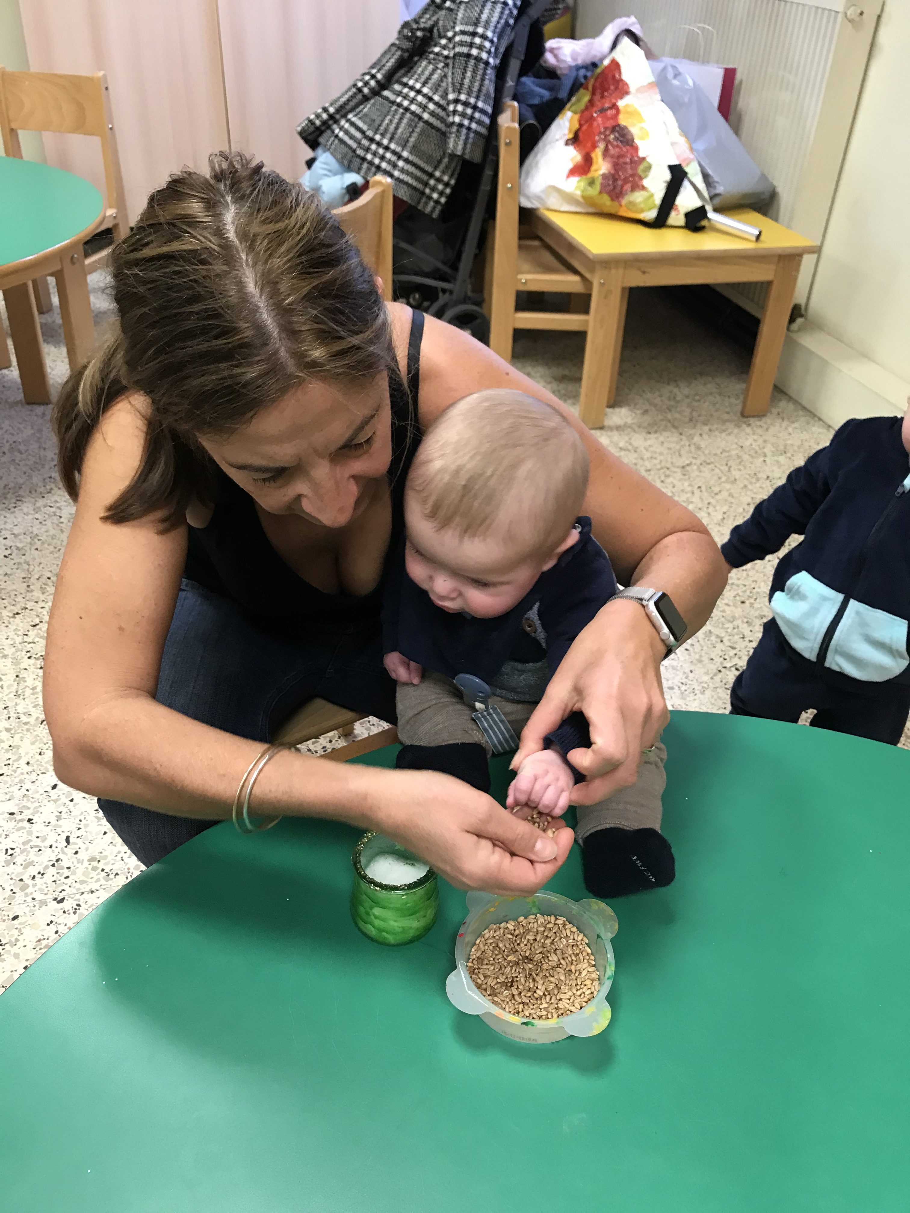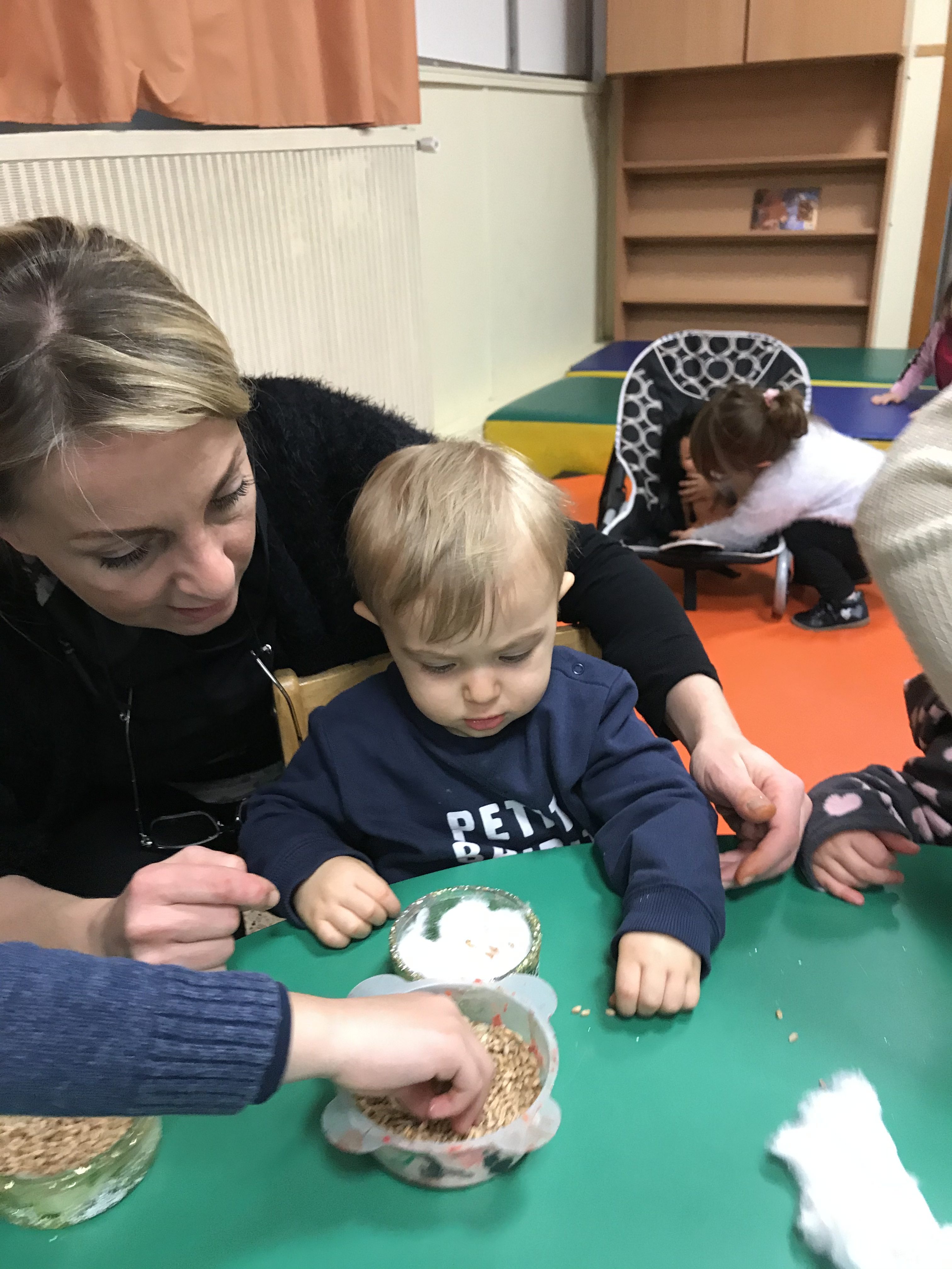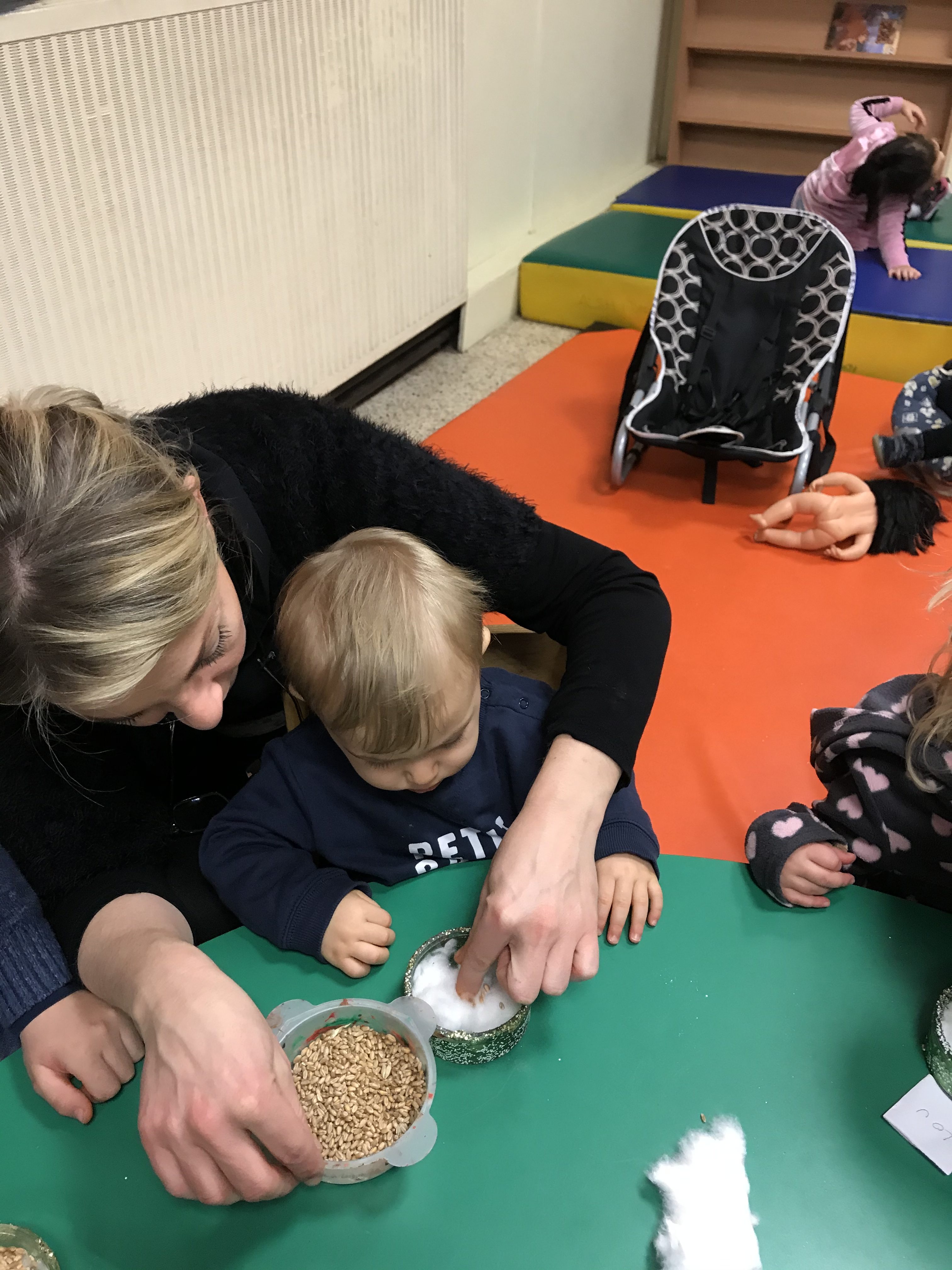 Le titre de l’histoire « Noël dans la forêt ». Elle va se déguiser en lutin fille « Une lutine » comme elle nous le présente. Son humour, ces sourires font la joie de nos poussins.
