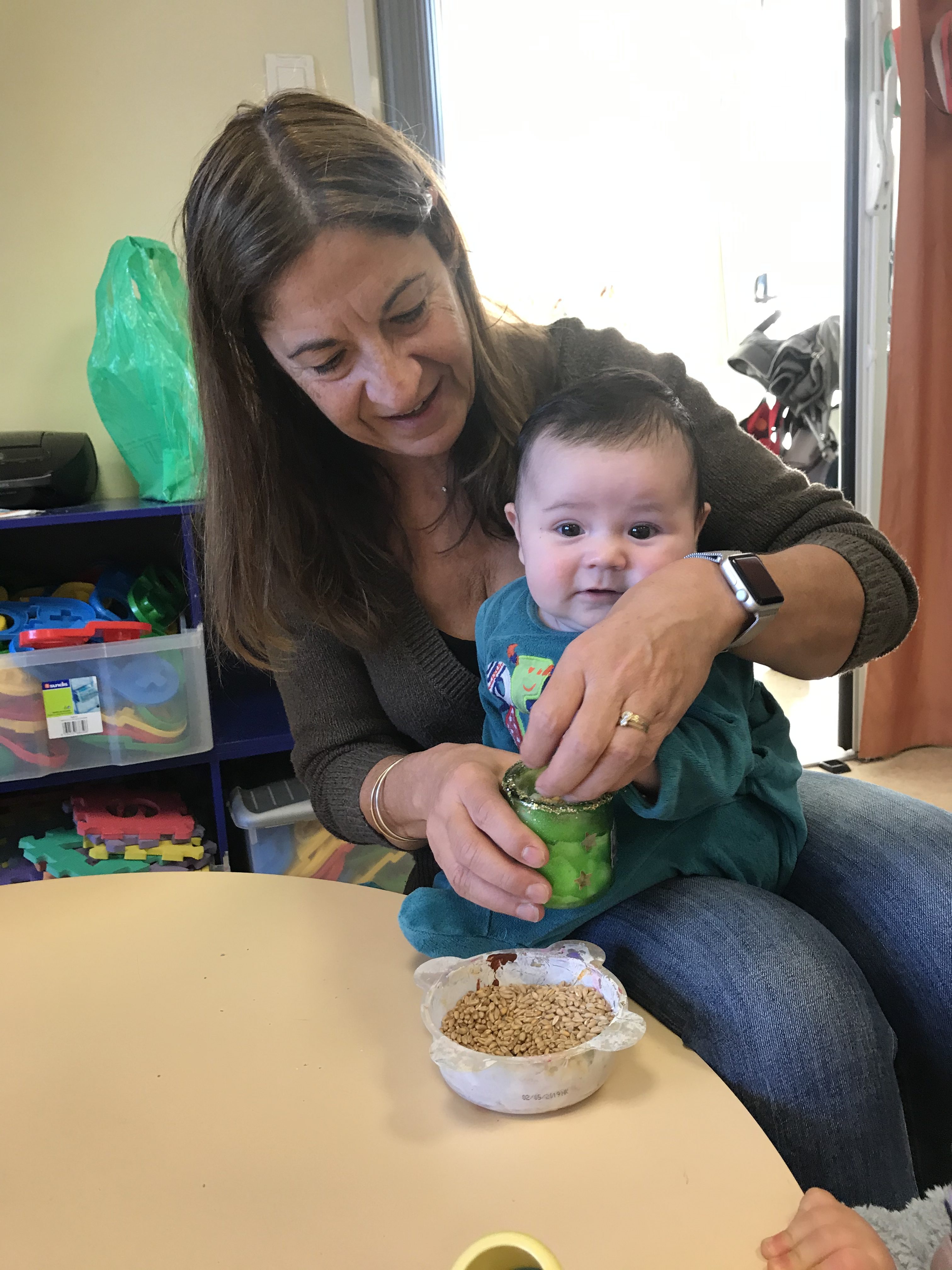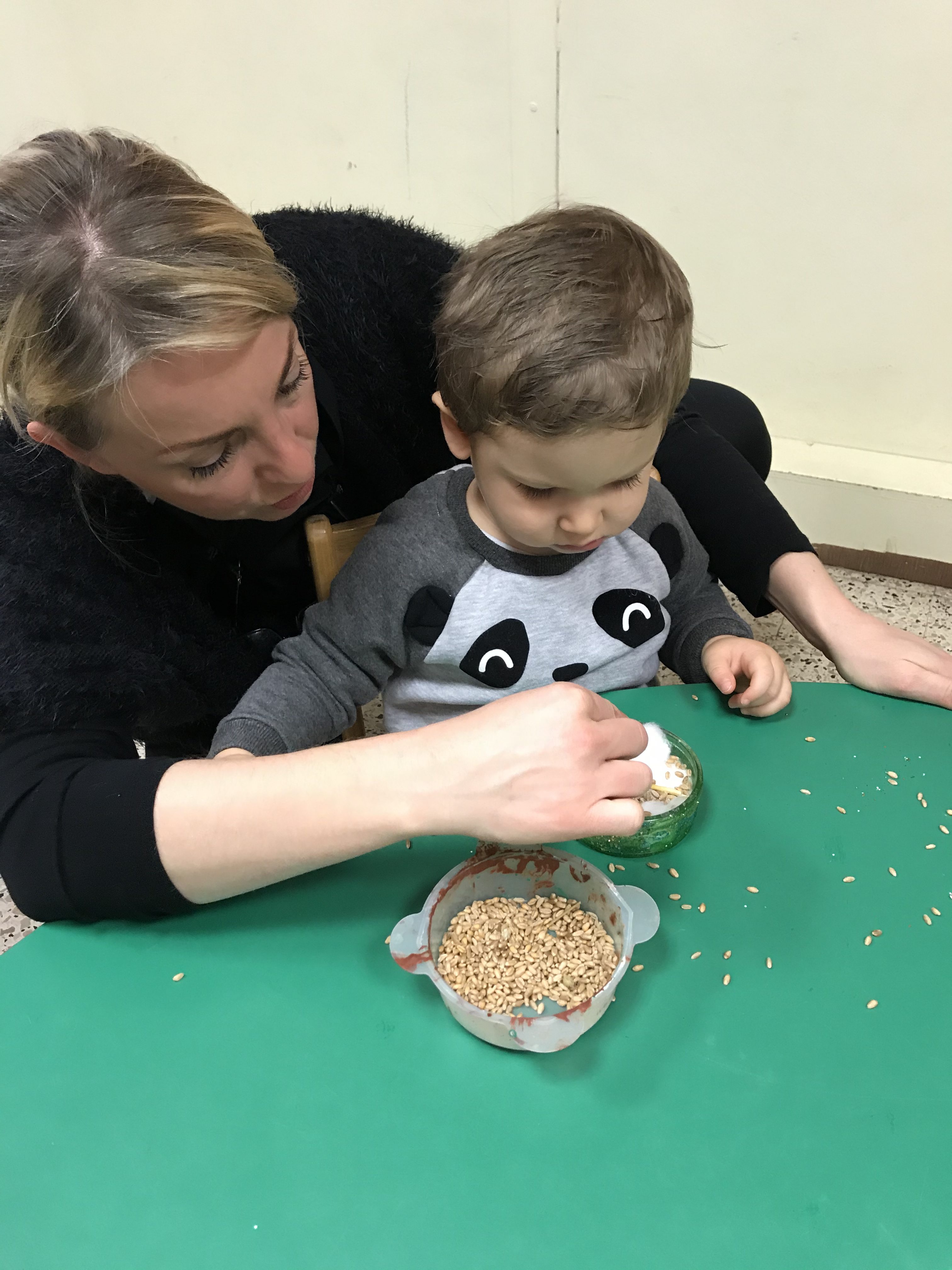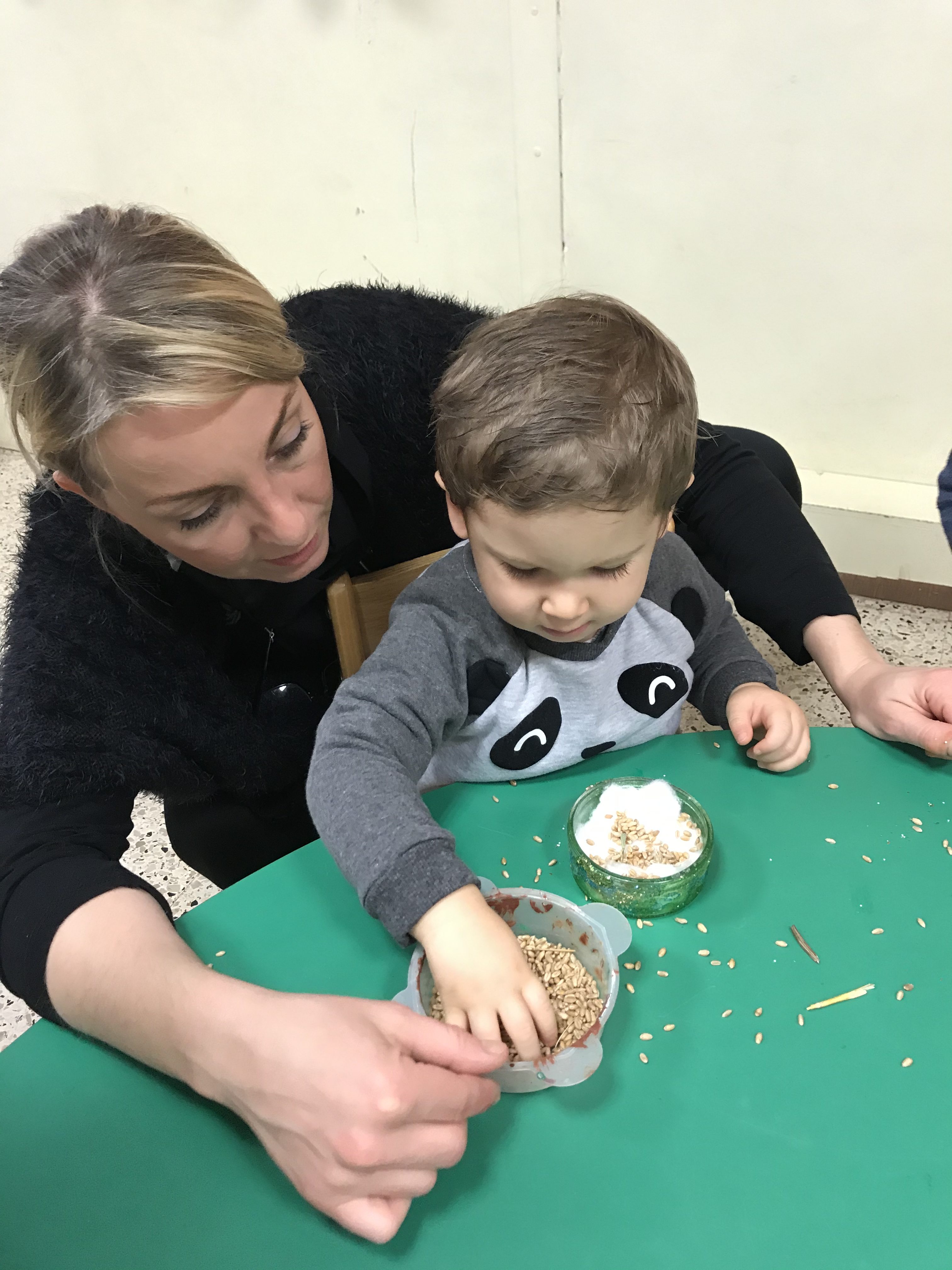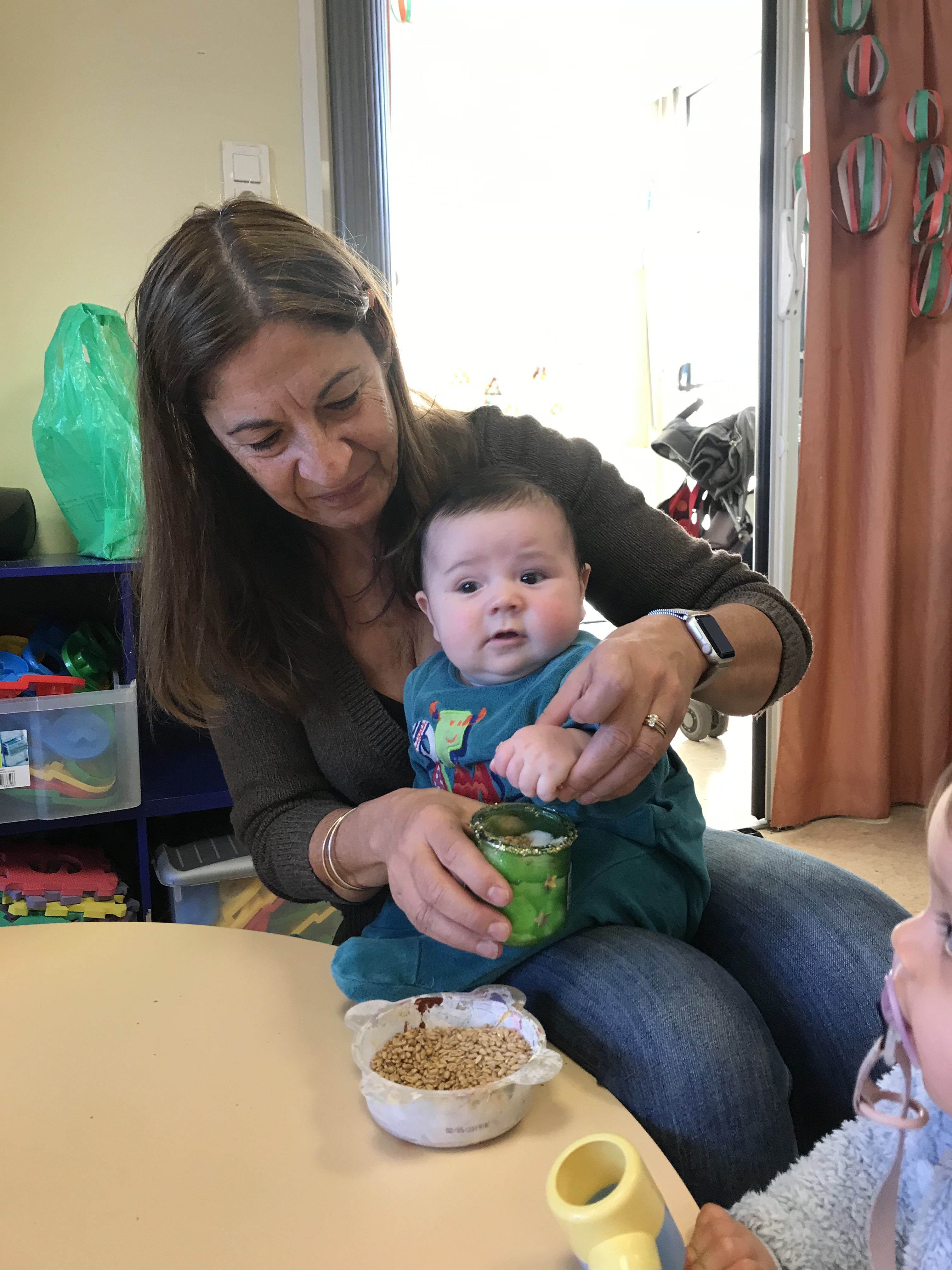 Le titre de l’histoire « Noël dans la forêt ». Elle va se déguiser en lutin fille « Une lutine » comme elle nous le présente. Son humour, ces sourires font la joie de nos poussins.