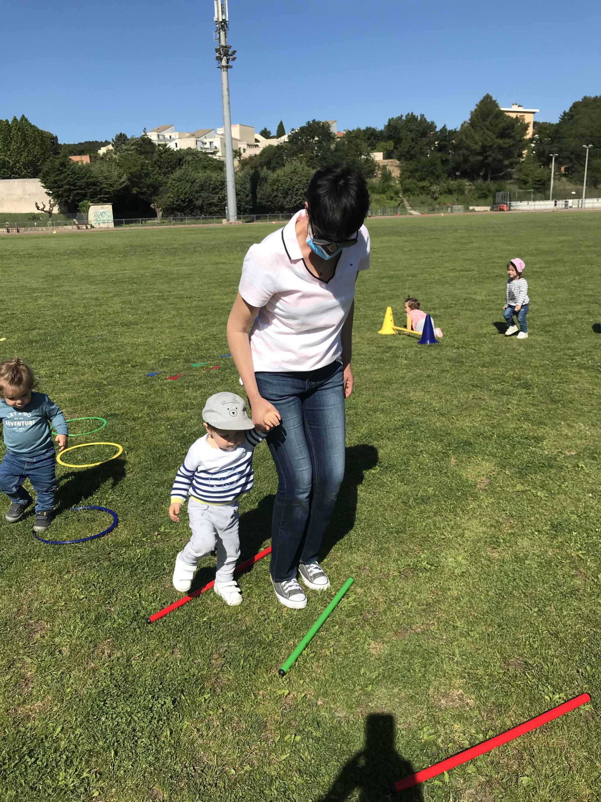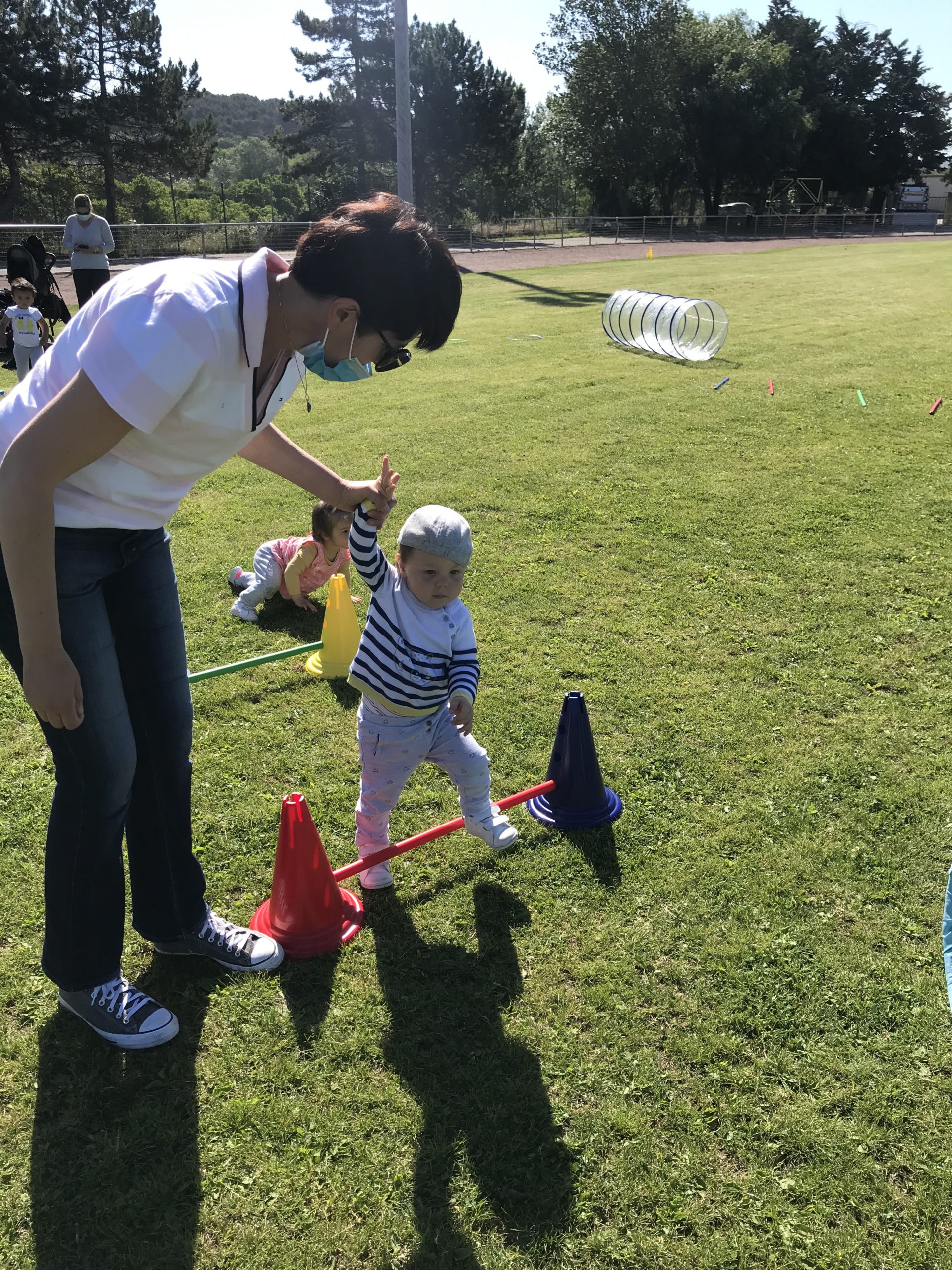 Enfin nous avons pu nous retrouver après un silence de l’association. L’association a donc pu proposer à toutes les assistantes maternelles de participer en extérieur avec masque bien entendu.. un parcours de motricité pour les poussins.