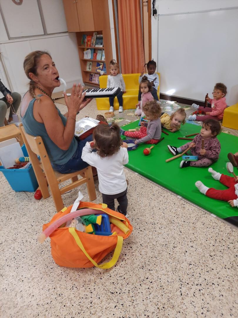 Nous avons continué à découvre d’autres instruments, des sons différents qui les ont bien fait rire comme celui de la grenouille, de l’oiseau, du canard, de la vache et jusqu’au sifflet du train.