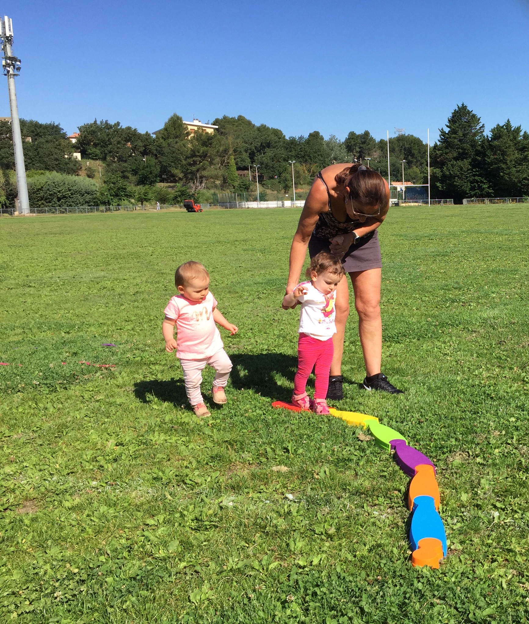 Aujourd’hui le soleil était avec nous enfin, et nous nous sommes retrouvées au stade de fontvenelle pour proposer aux enfants un parcours et jeux d’éveil.