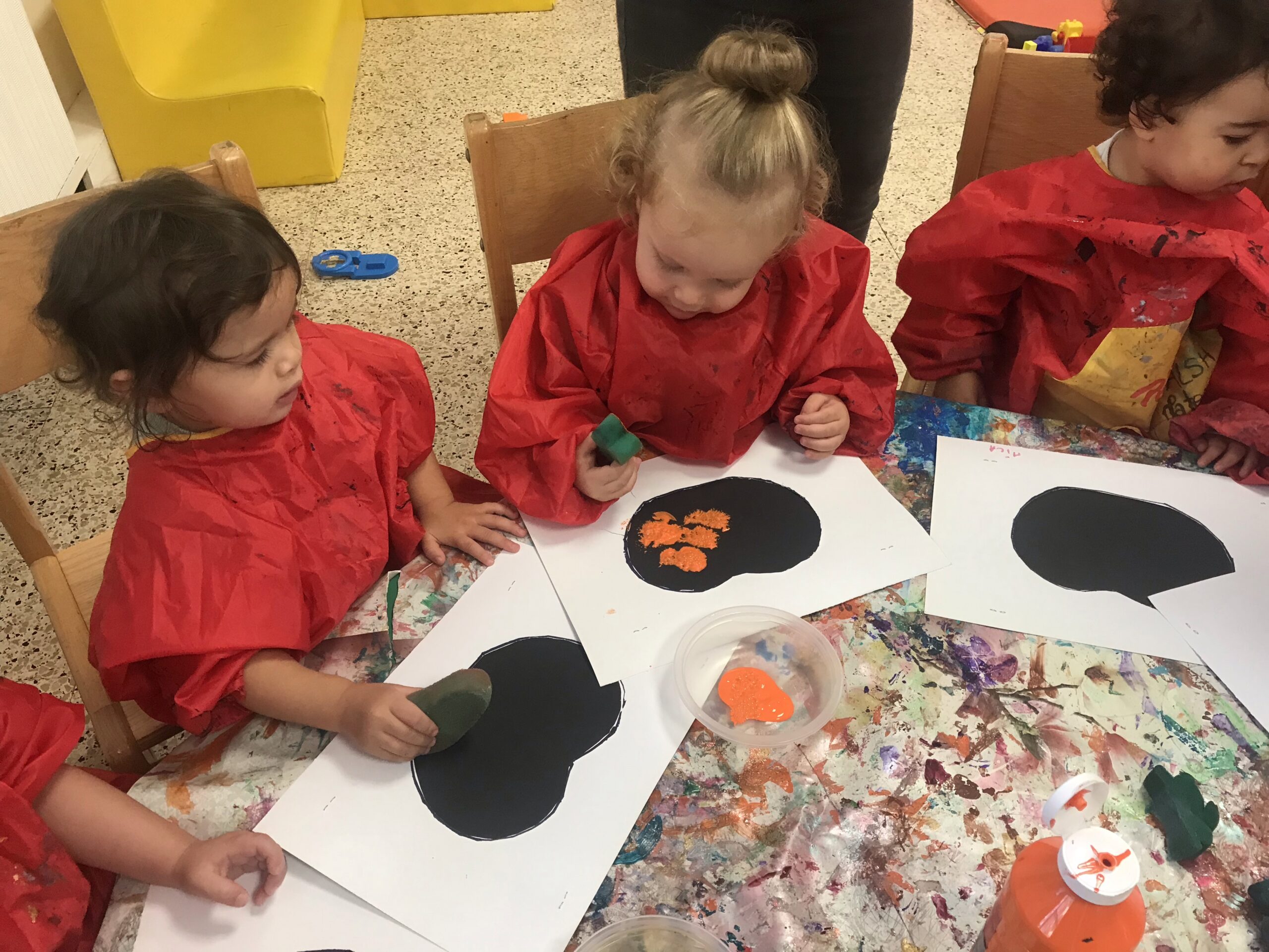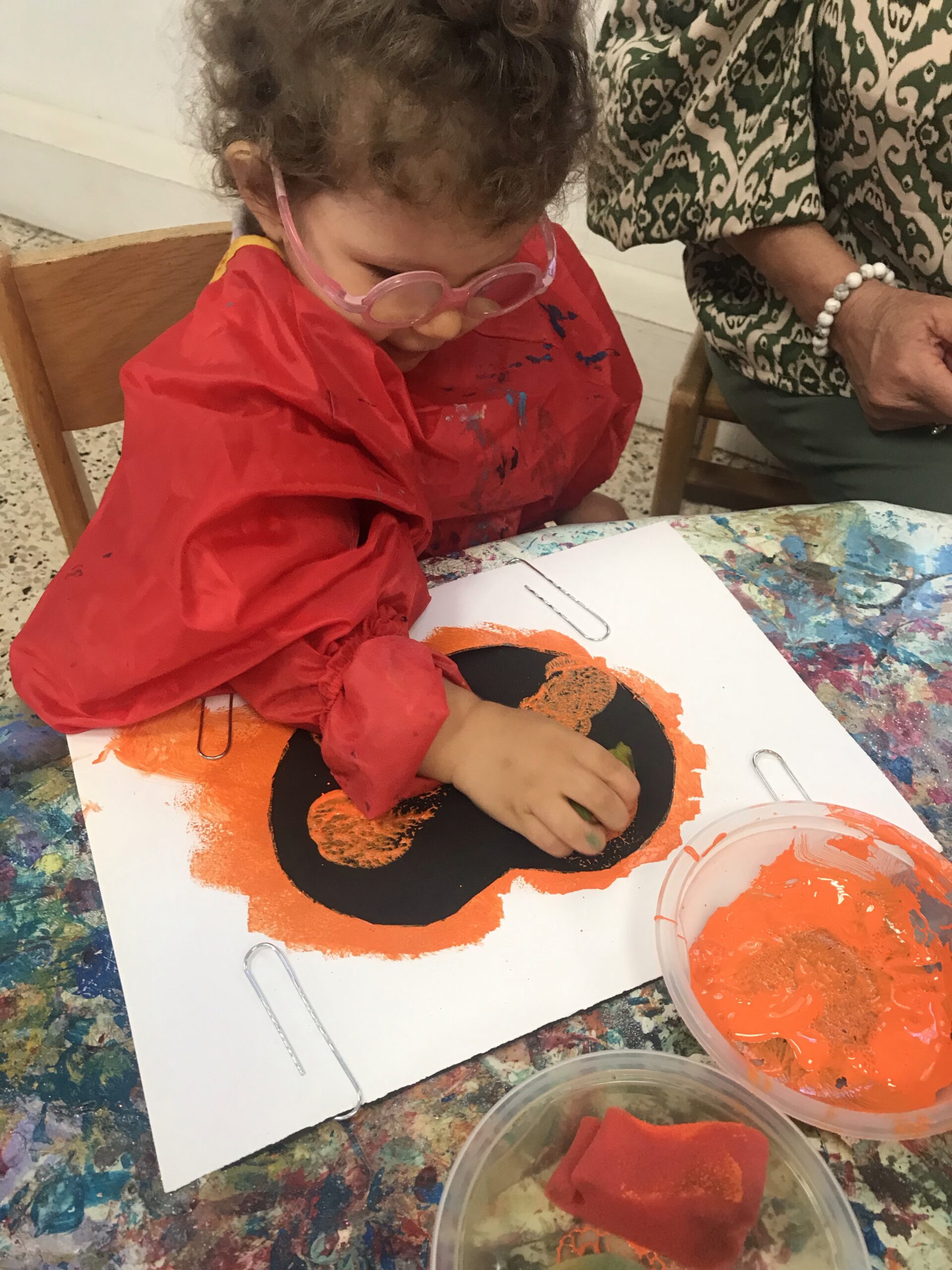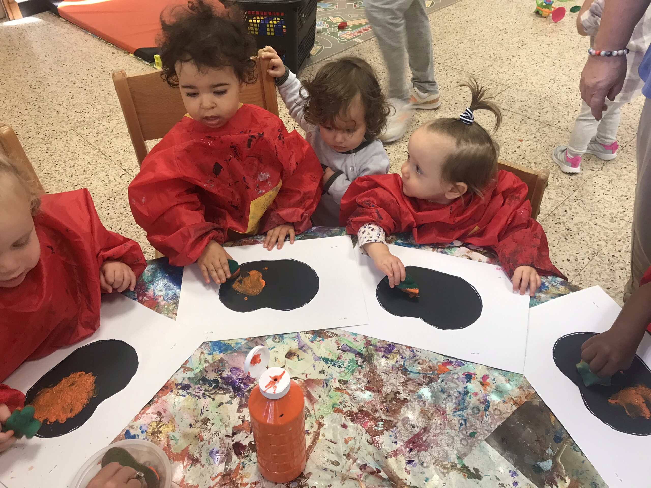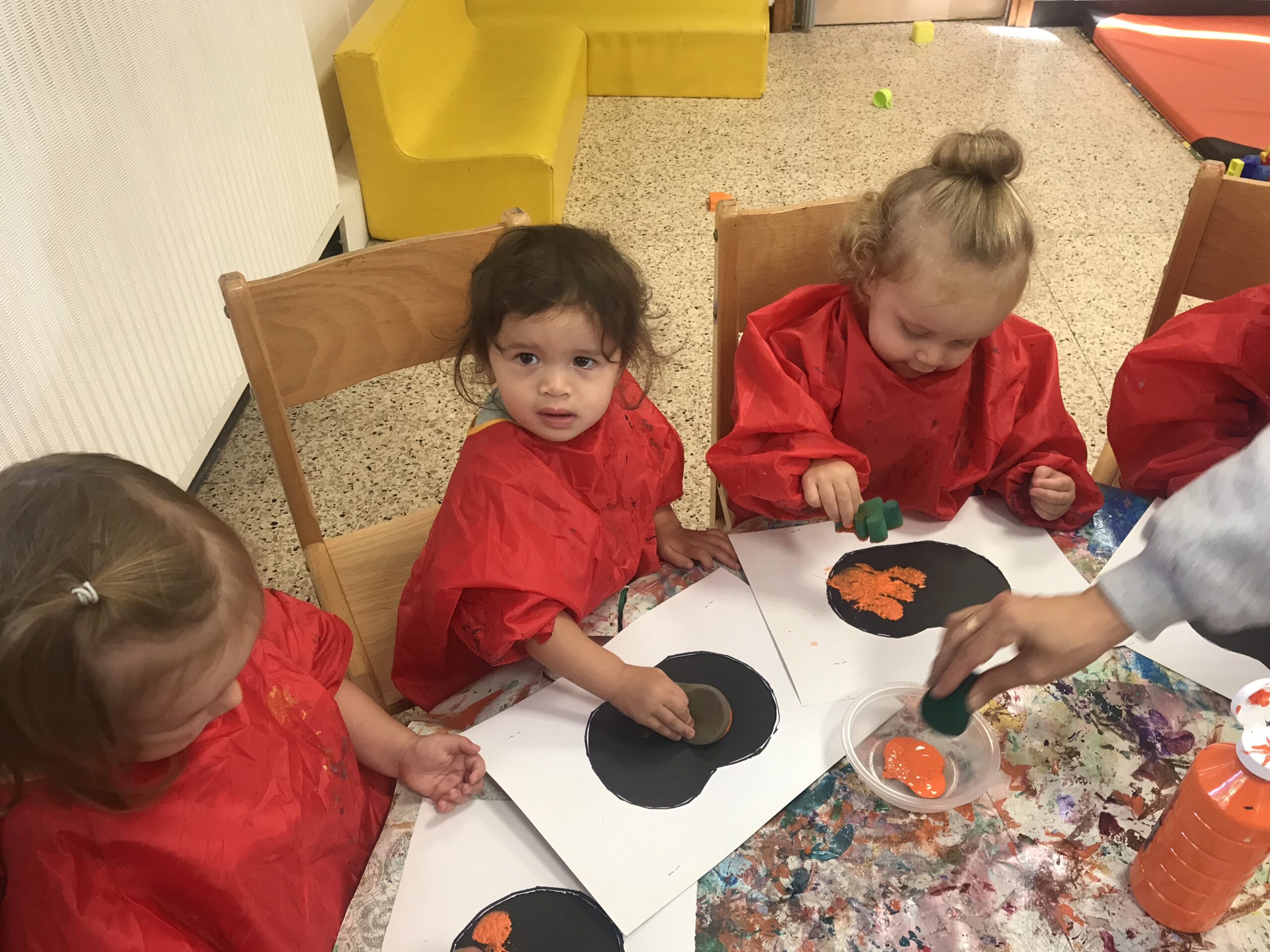 Aujourd’hui nous étions à la salle pour une activité de peinture « la citrouille d’halloween »