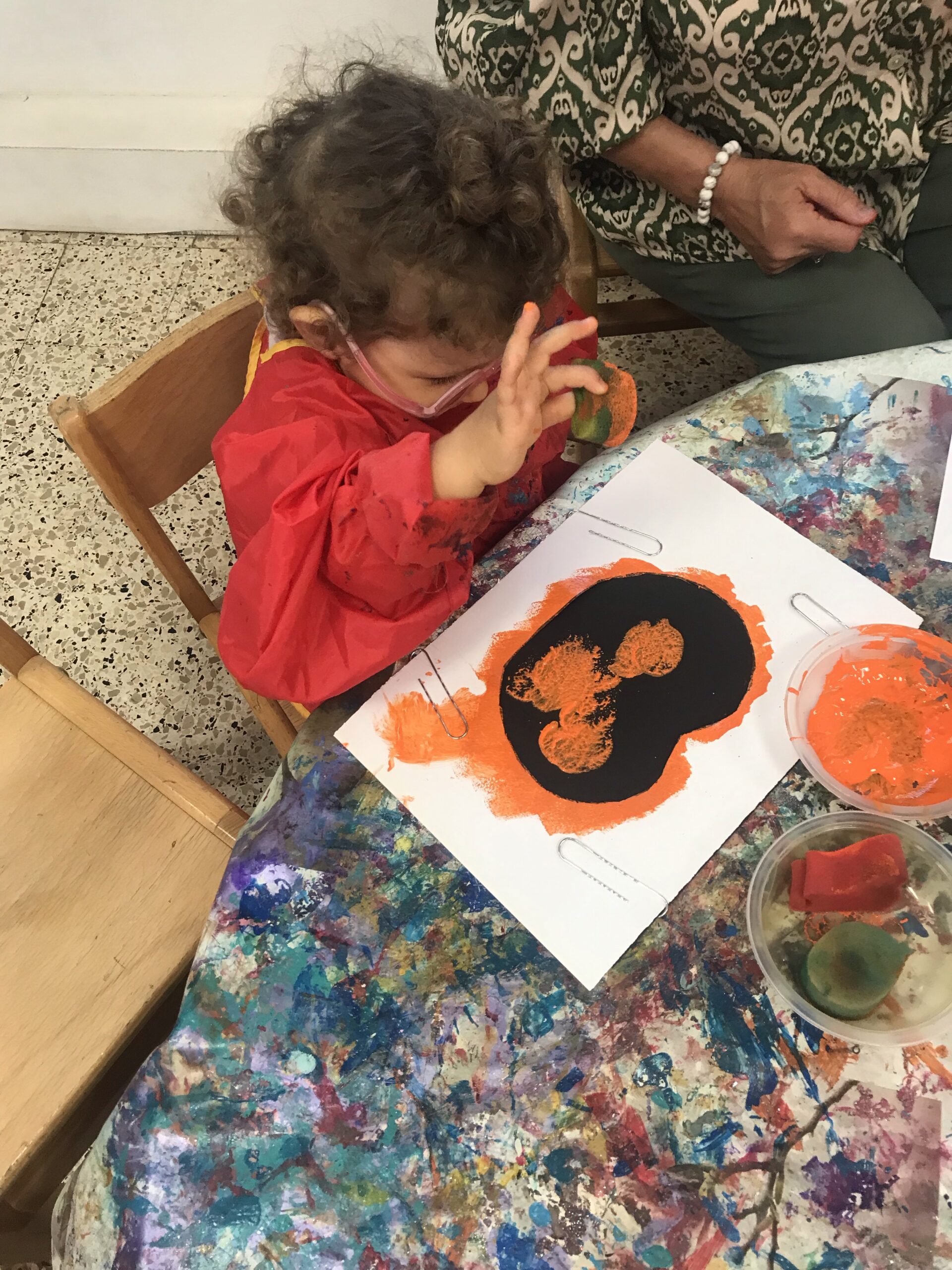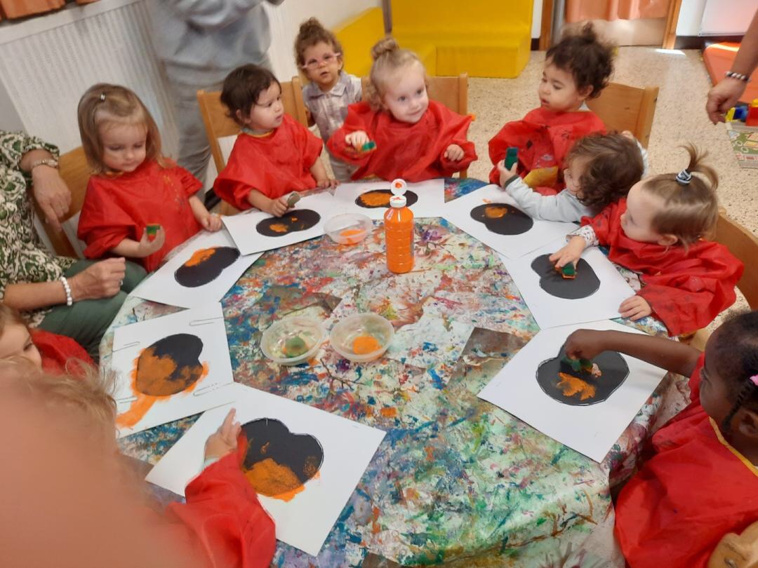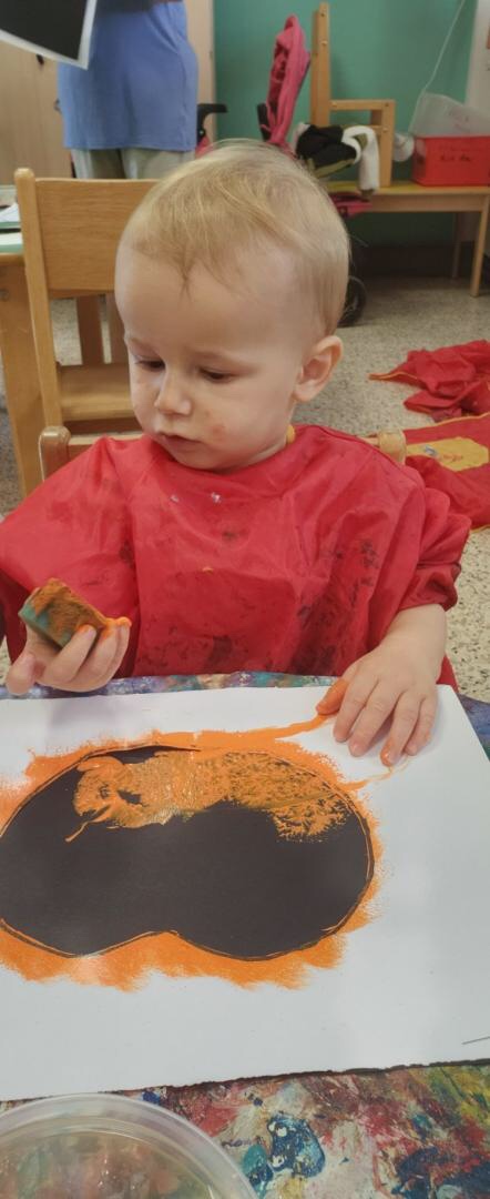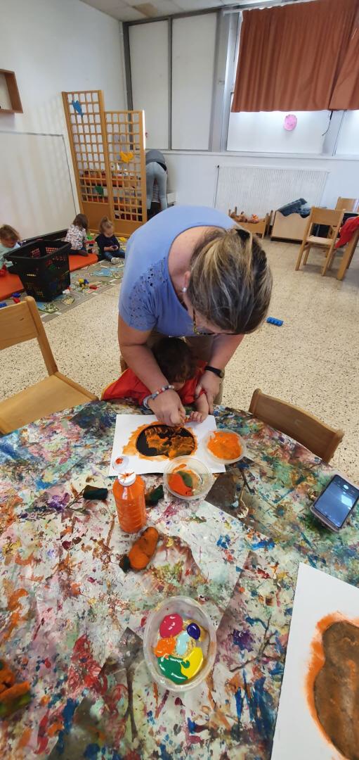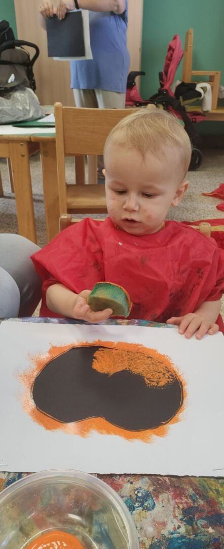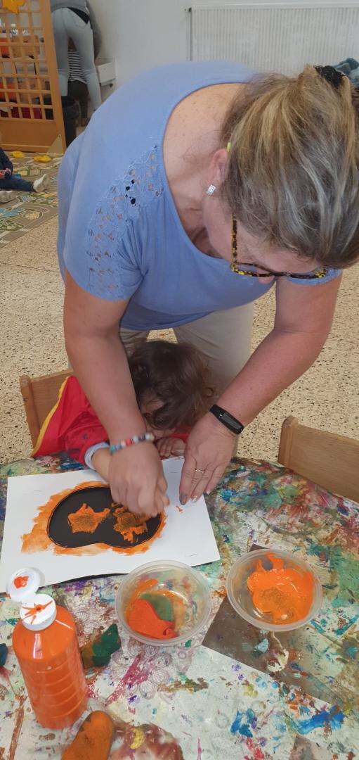 Aujourd’hui nous étions à la salle pour une activité de peinture « la citrouille d’halloween »