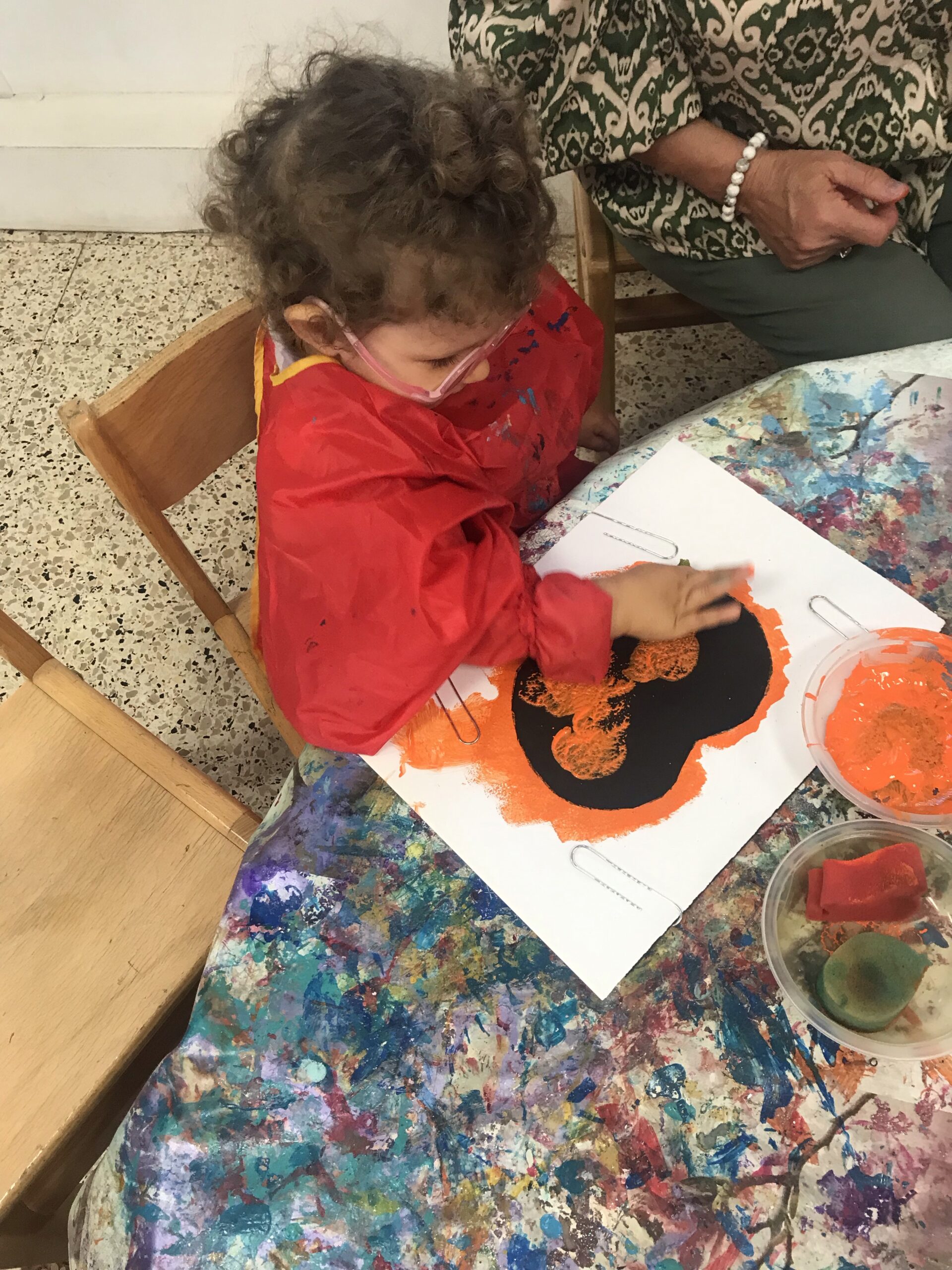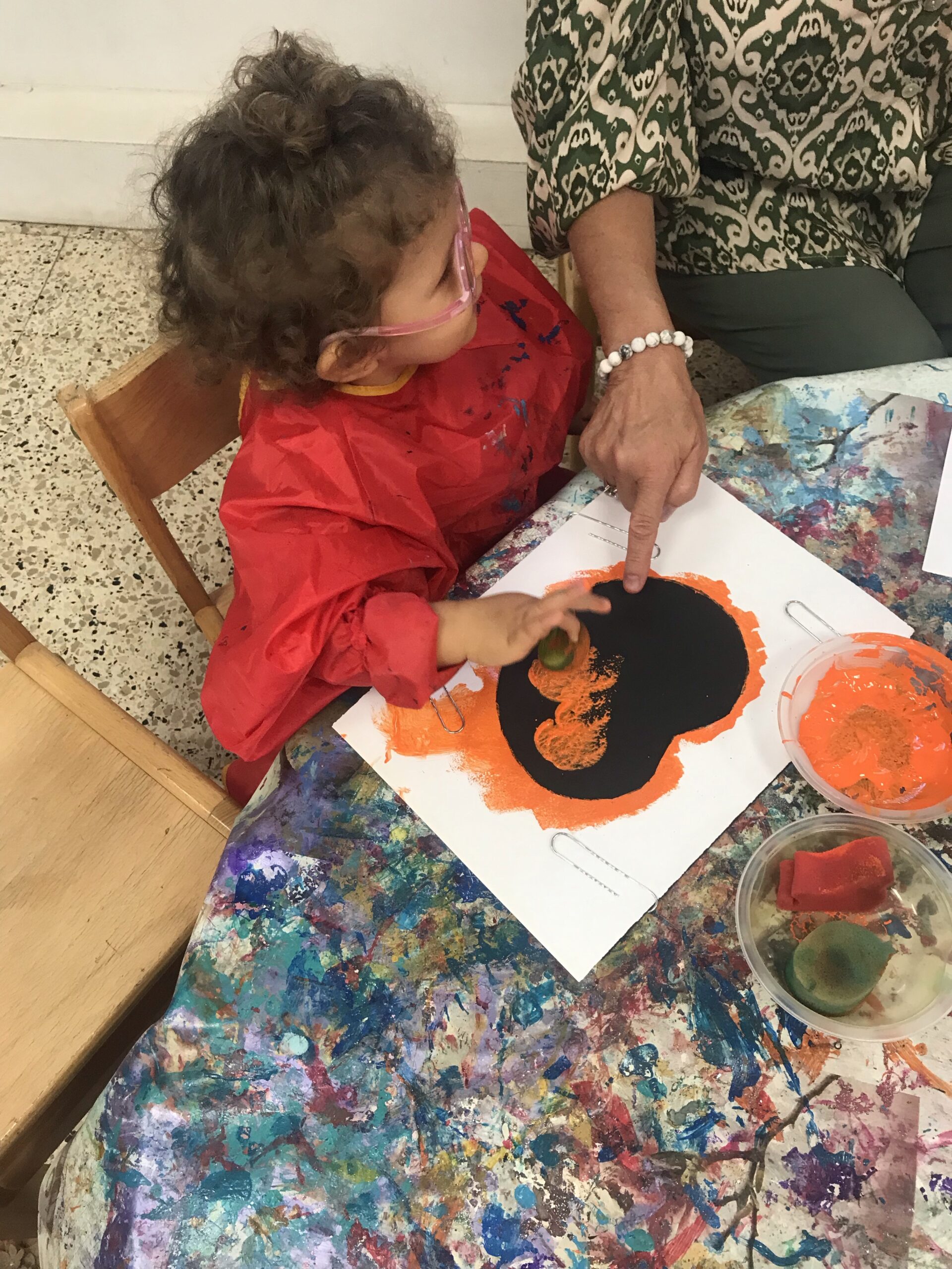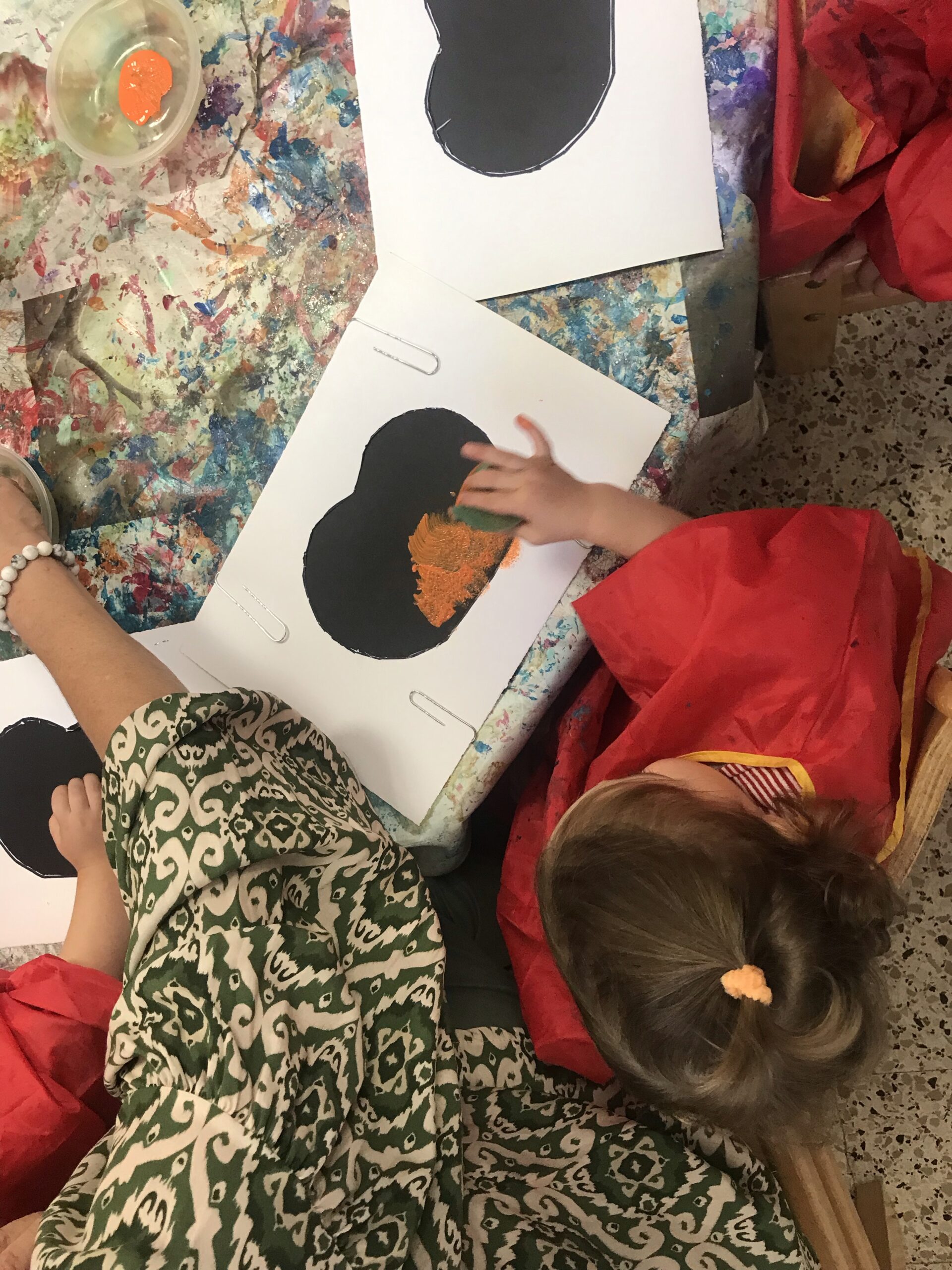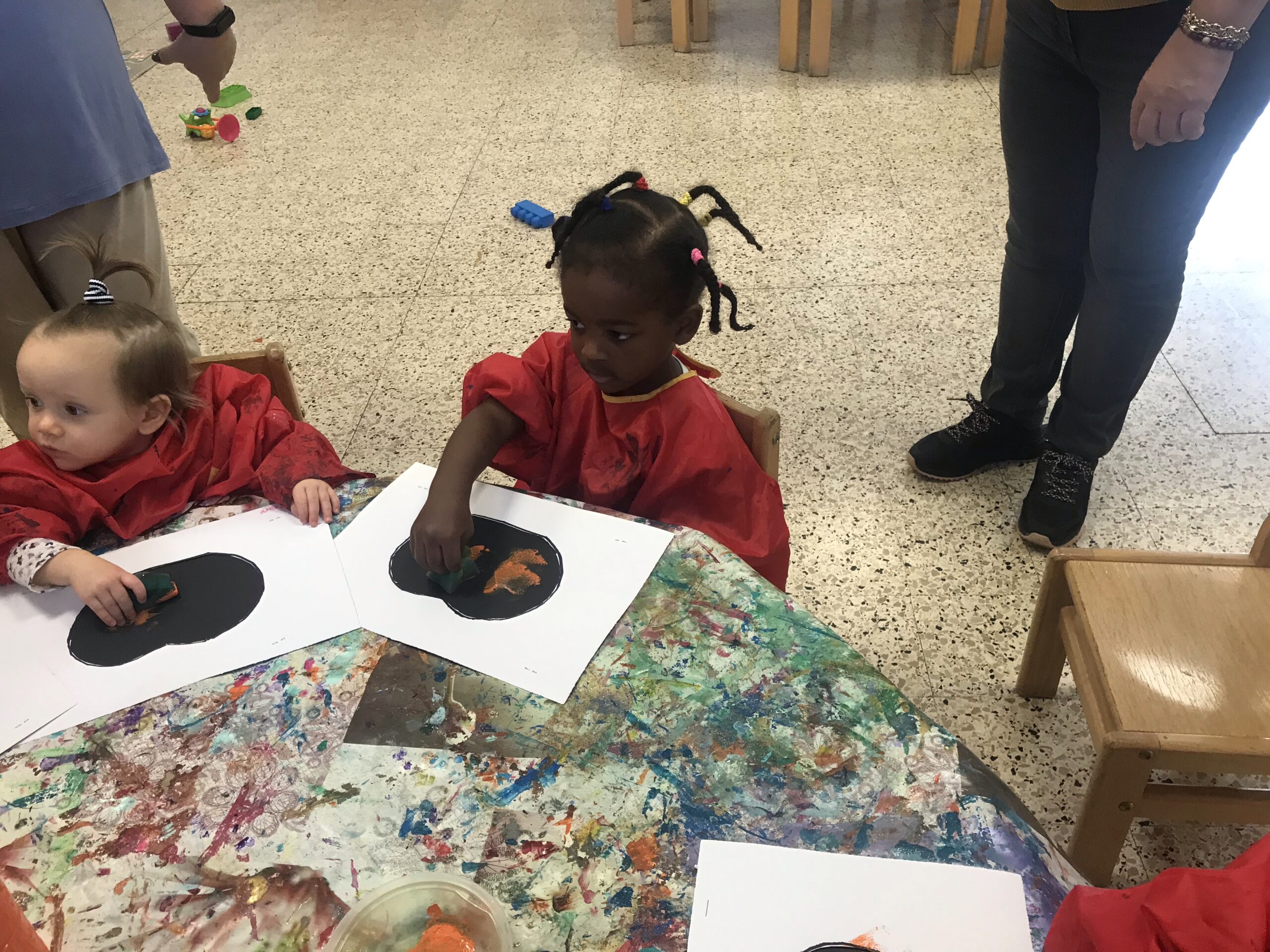 Aujourd’hui nous étions à la salle pour une activité de peinture « la citrouille d’halloween »