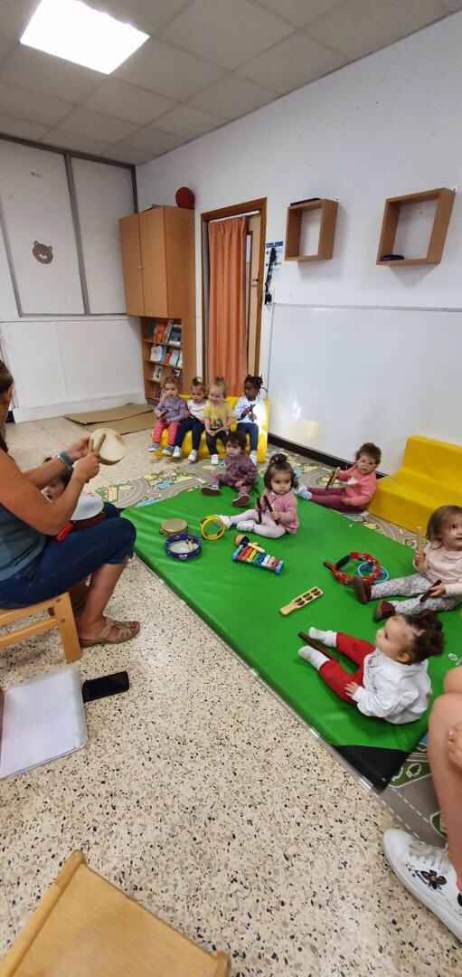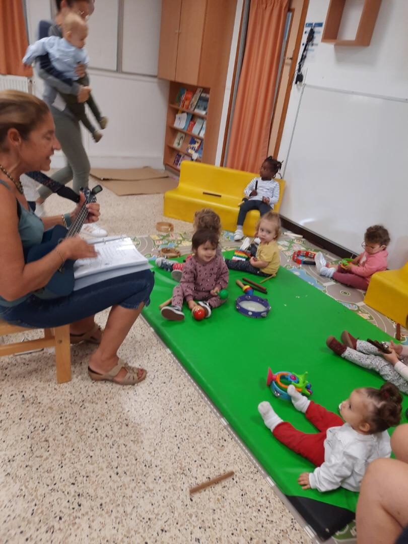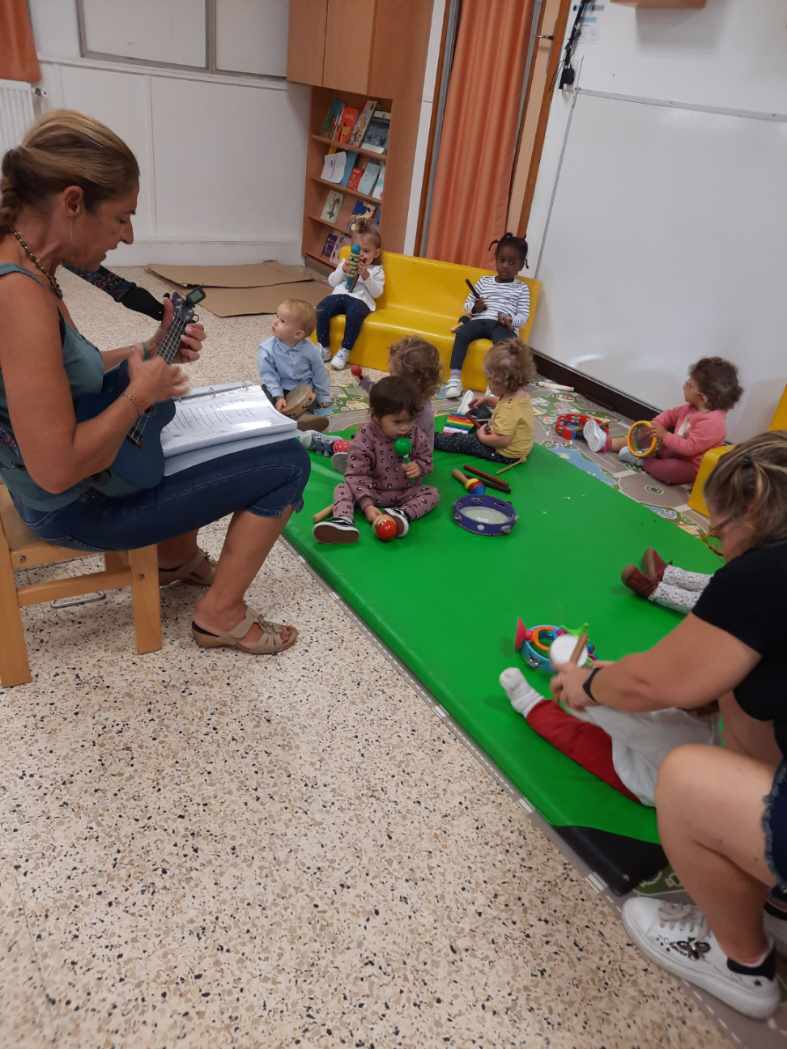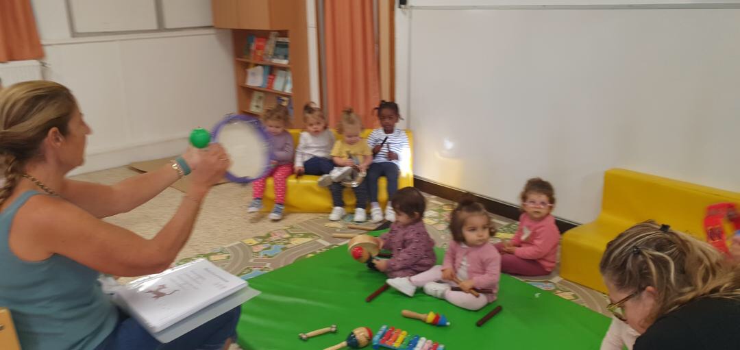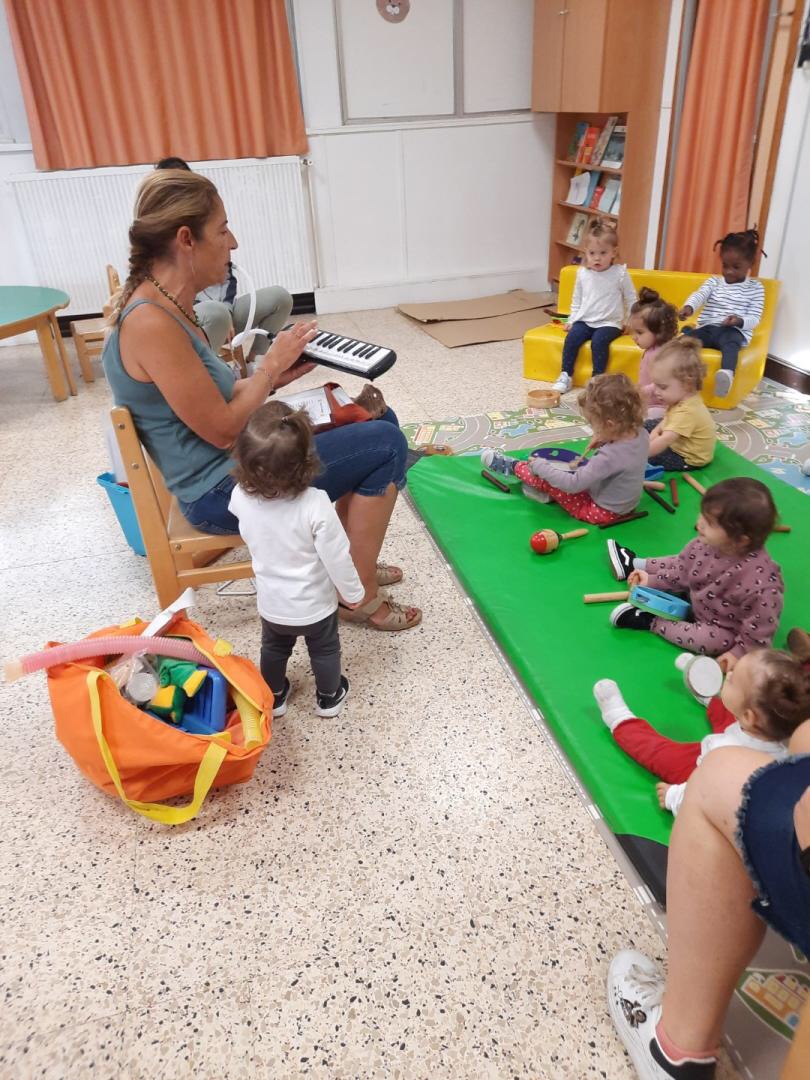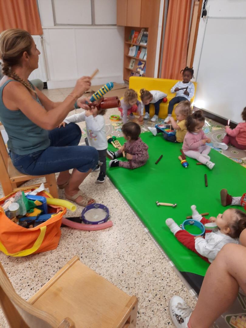 Aujourd’hui nous avons fait de l’éveil musical avec nos petits poussins