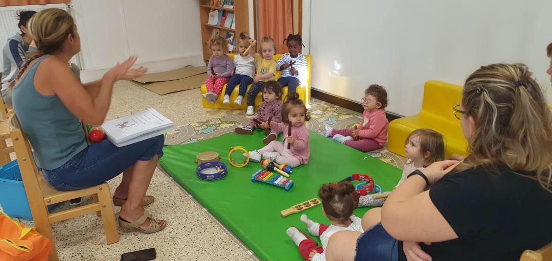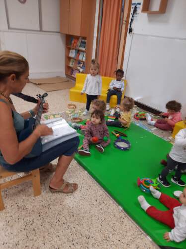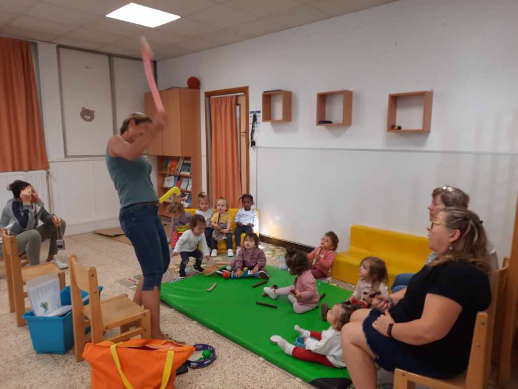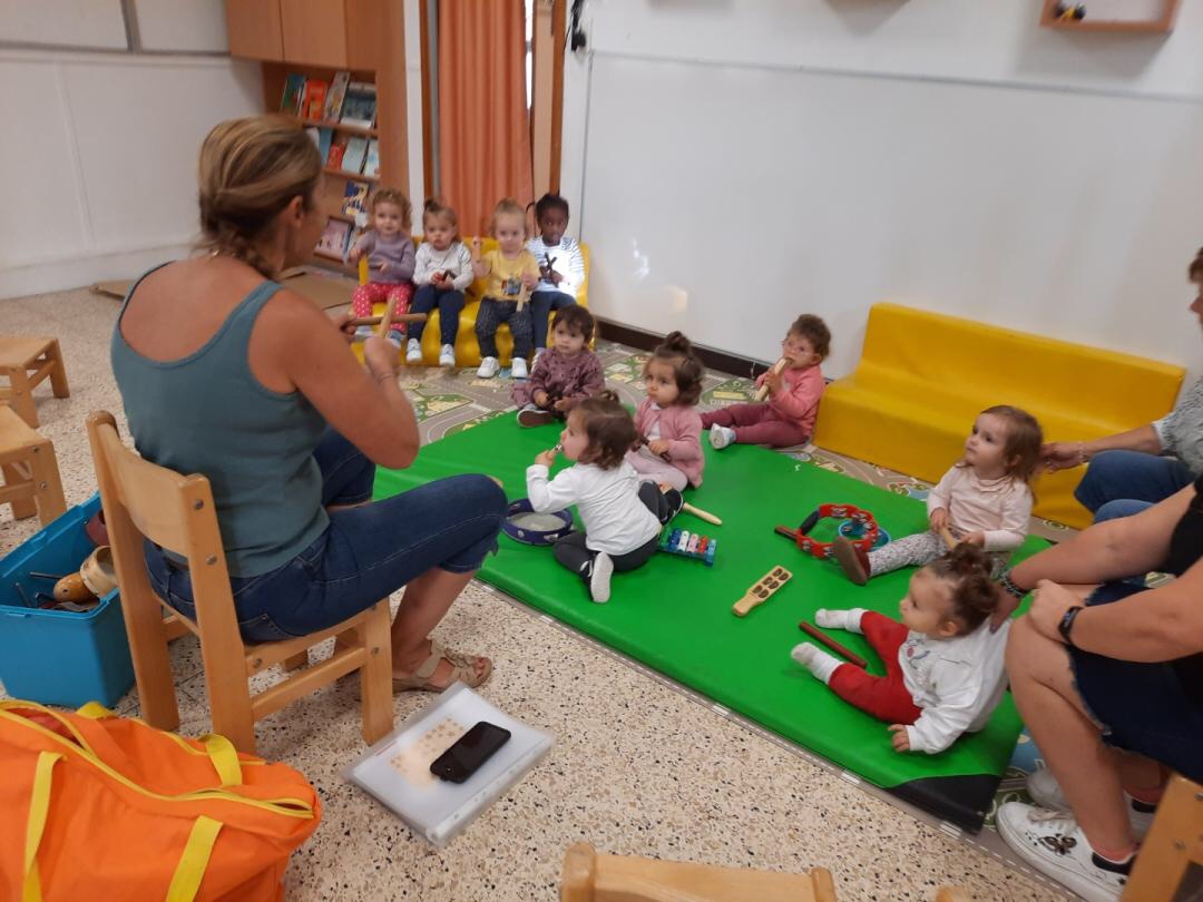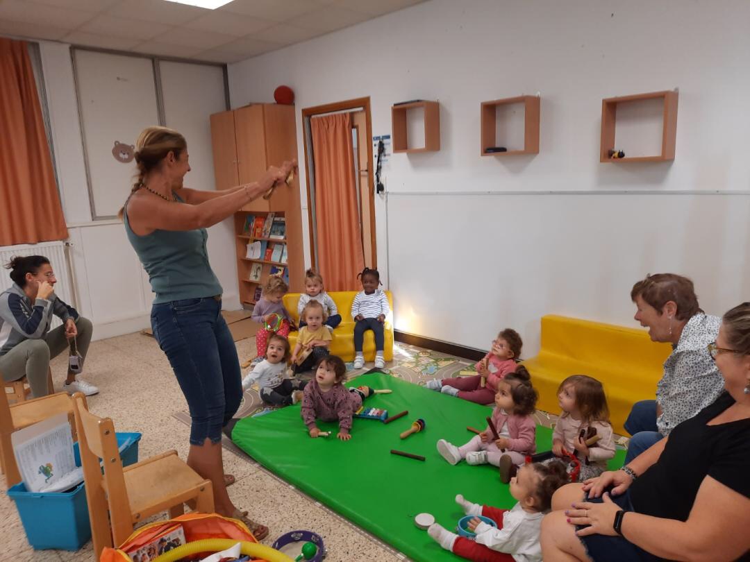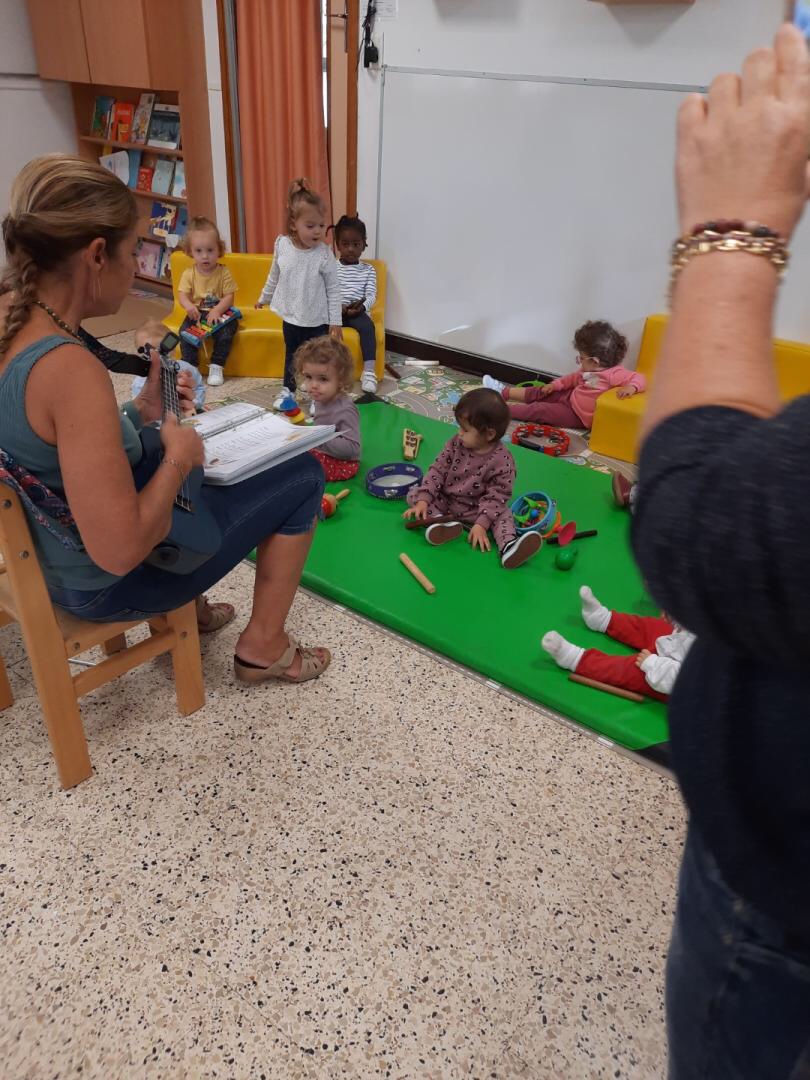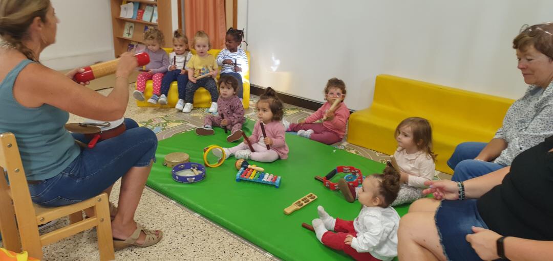 Aujourd’hui nous avons fait de l’éveil musical avec nos petits poussins