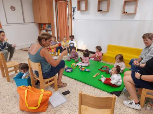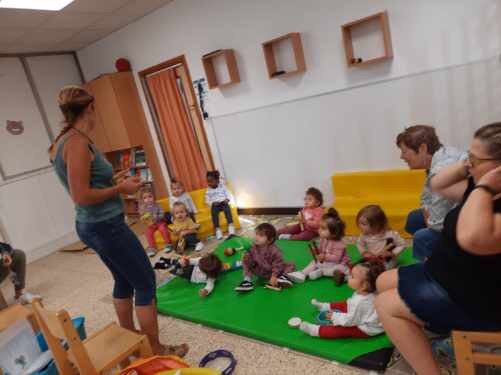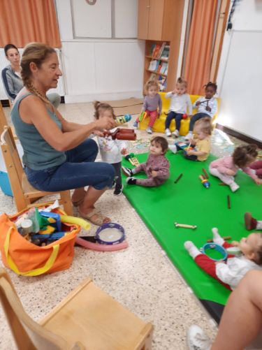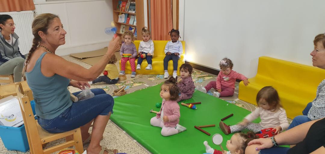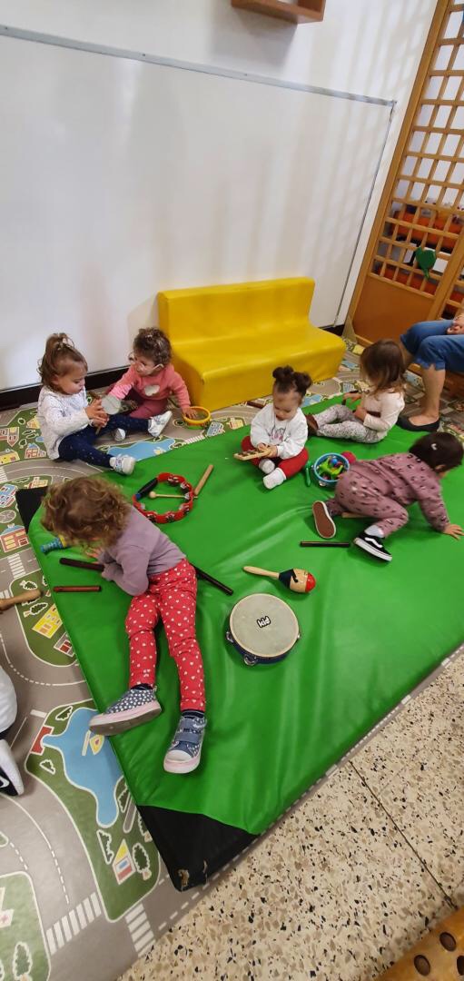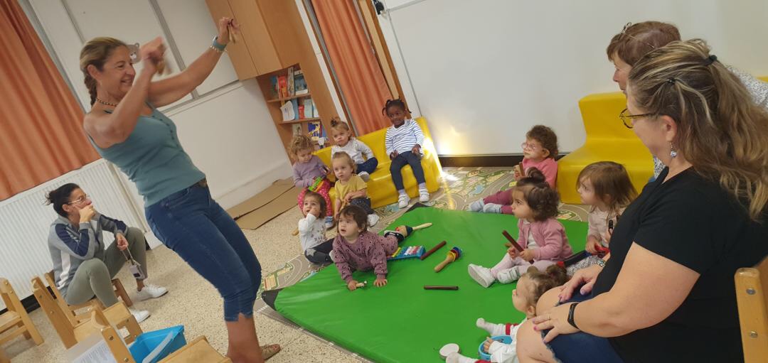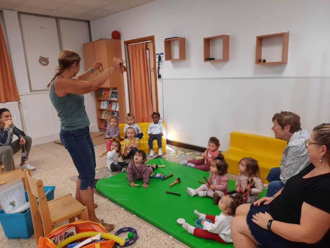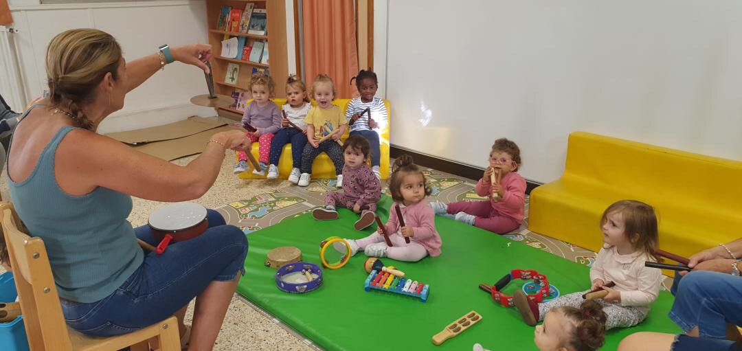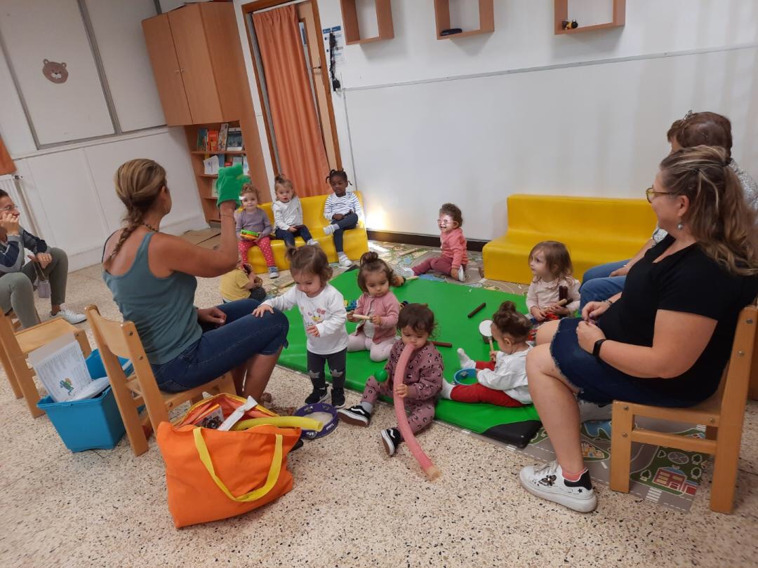 Aujourd’hui nous avons fait de l’éveil musical avec nos petits poussins