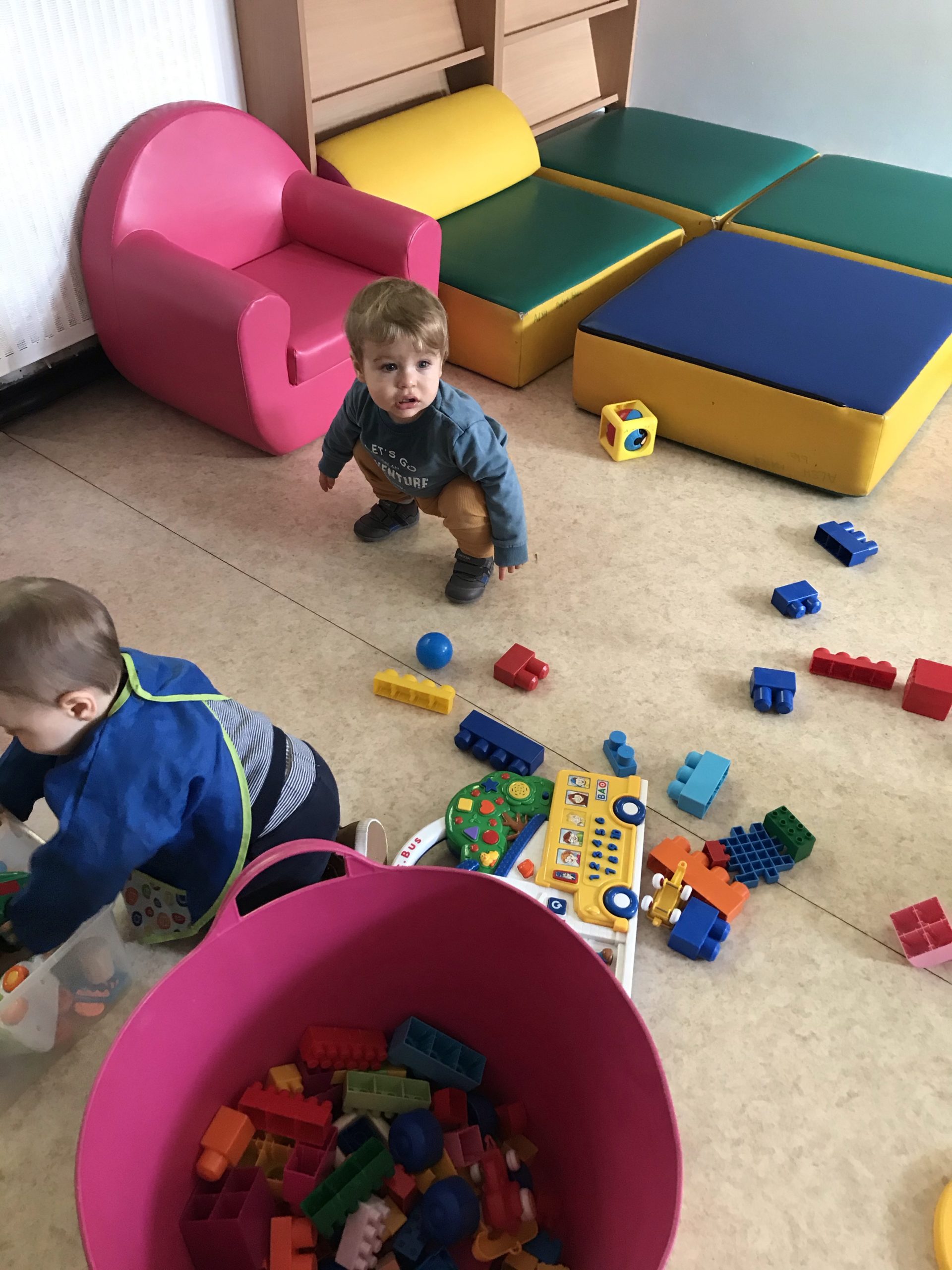 Le deuxième tapis à histoire était tiré du livre « petit poisson blanc est triste » et oui il a perdu sa maman, et le 2eme livre « petit poisson blanc est content » car maman vient le chercher.