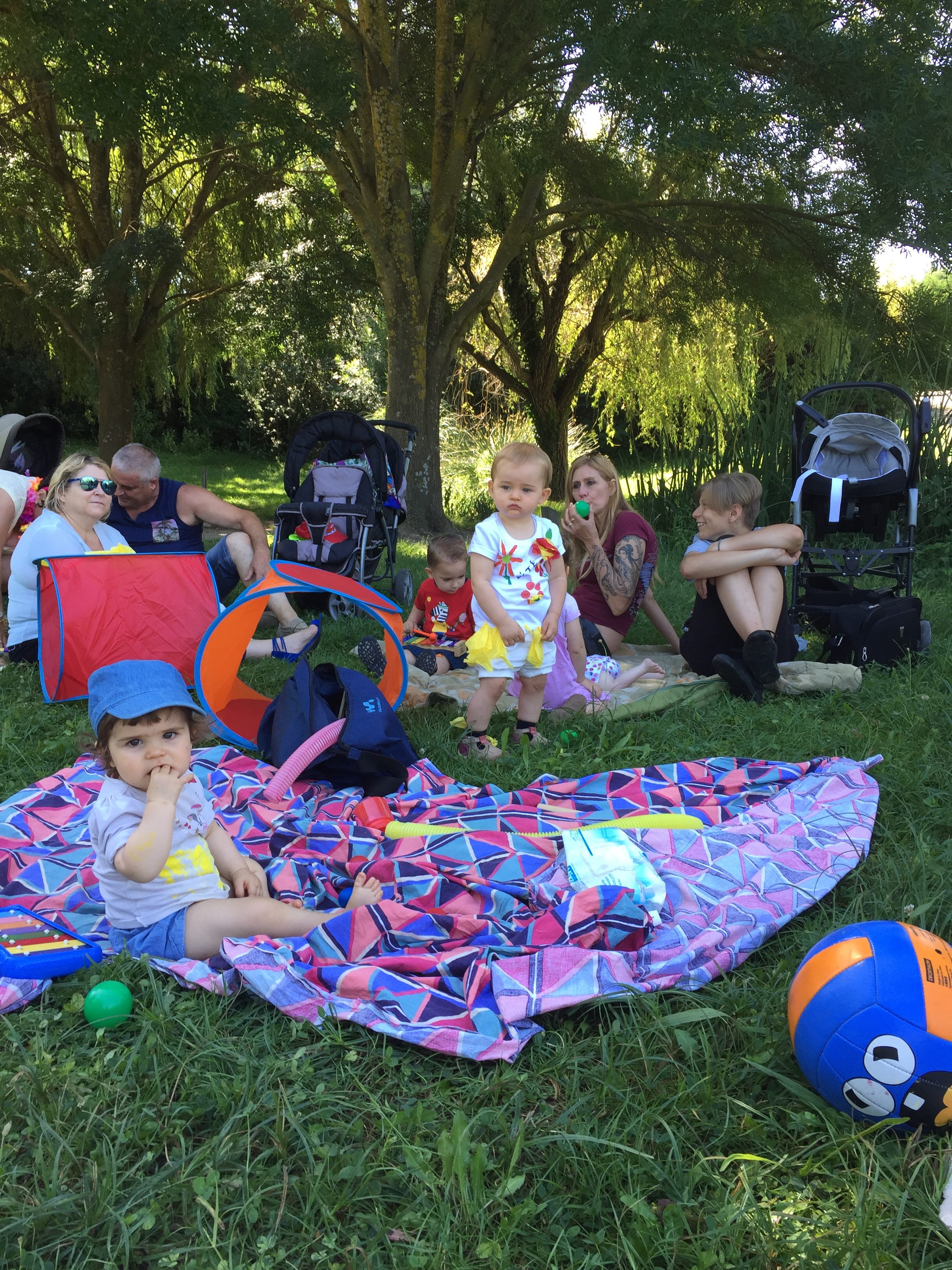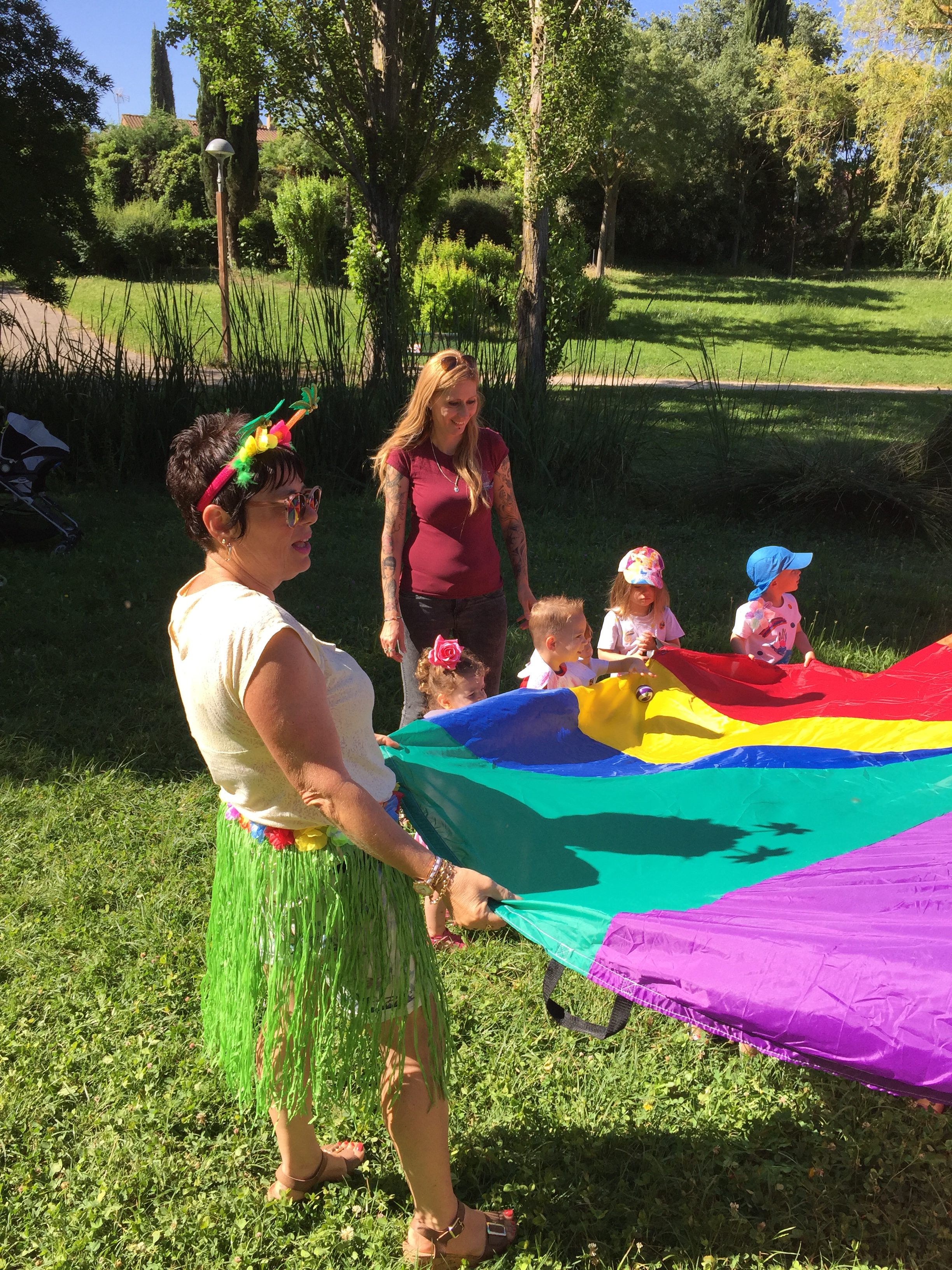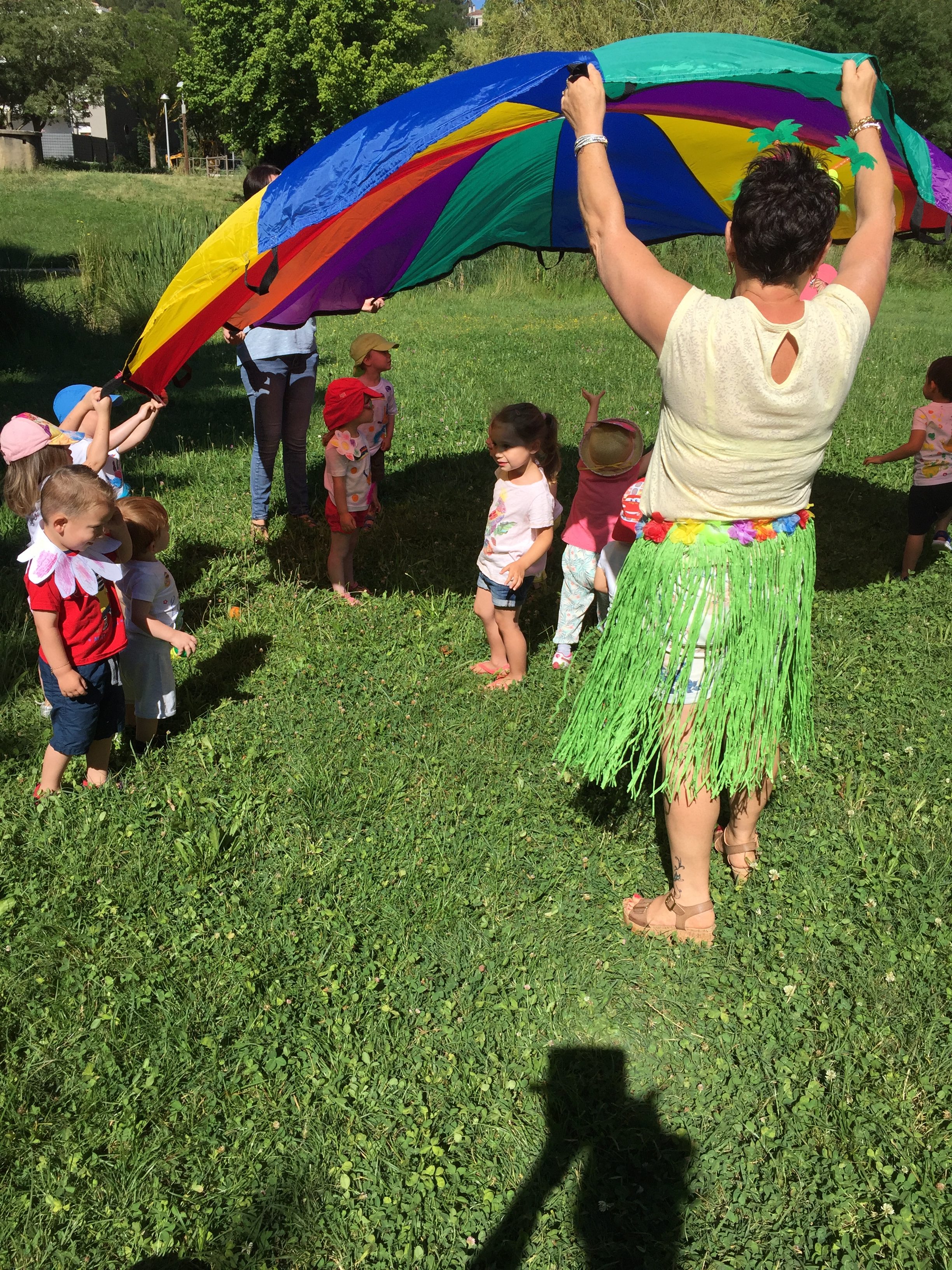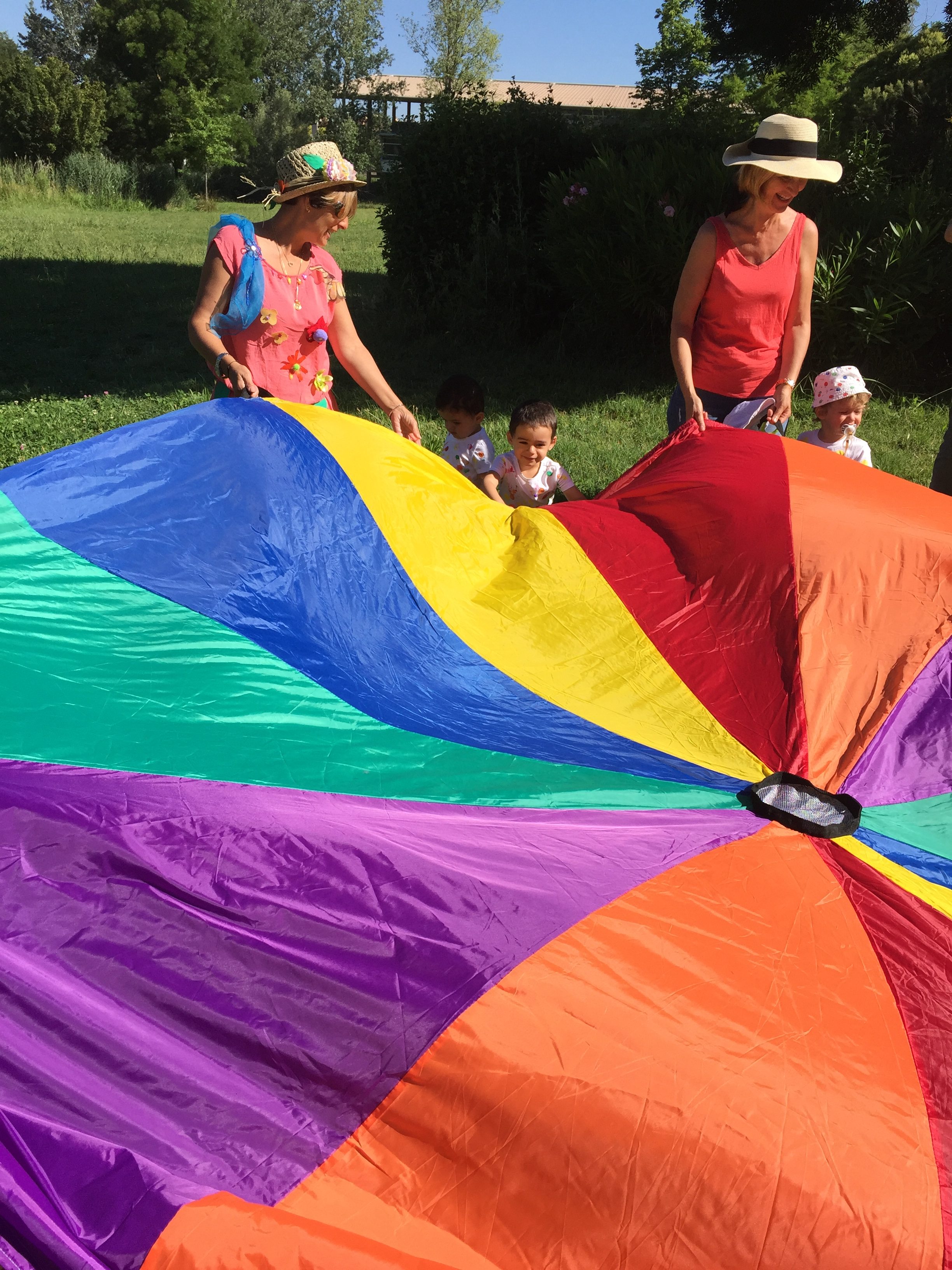 A l’ombre des arbres nous avons pu organiser des moments d’animations, comme le parachute, les piscines a balles, tunnel..