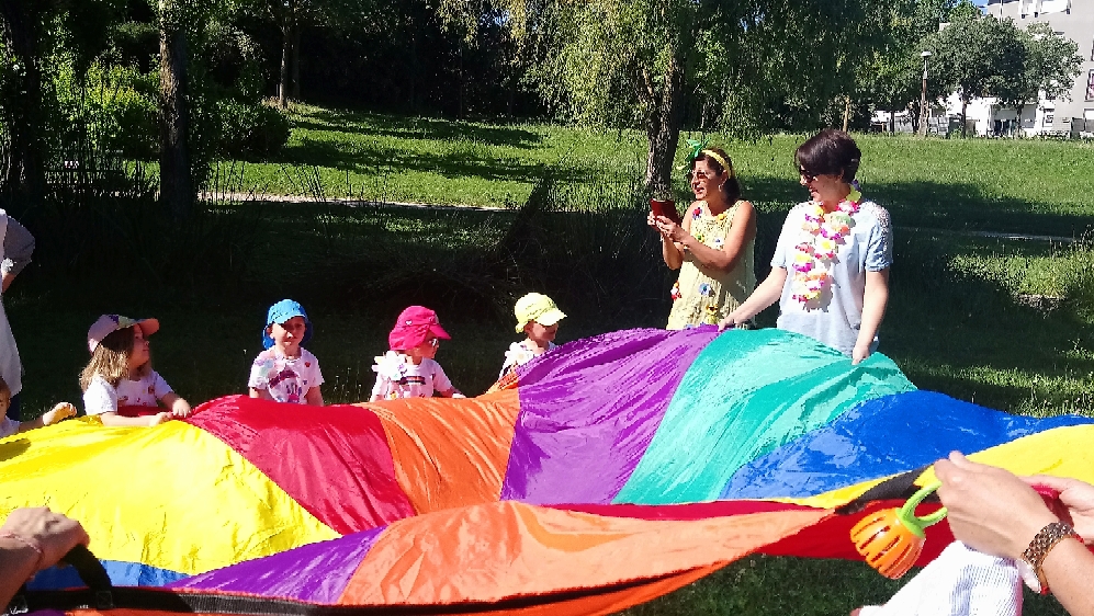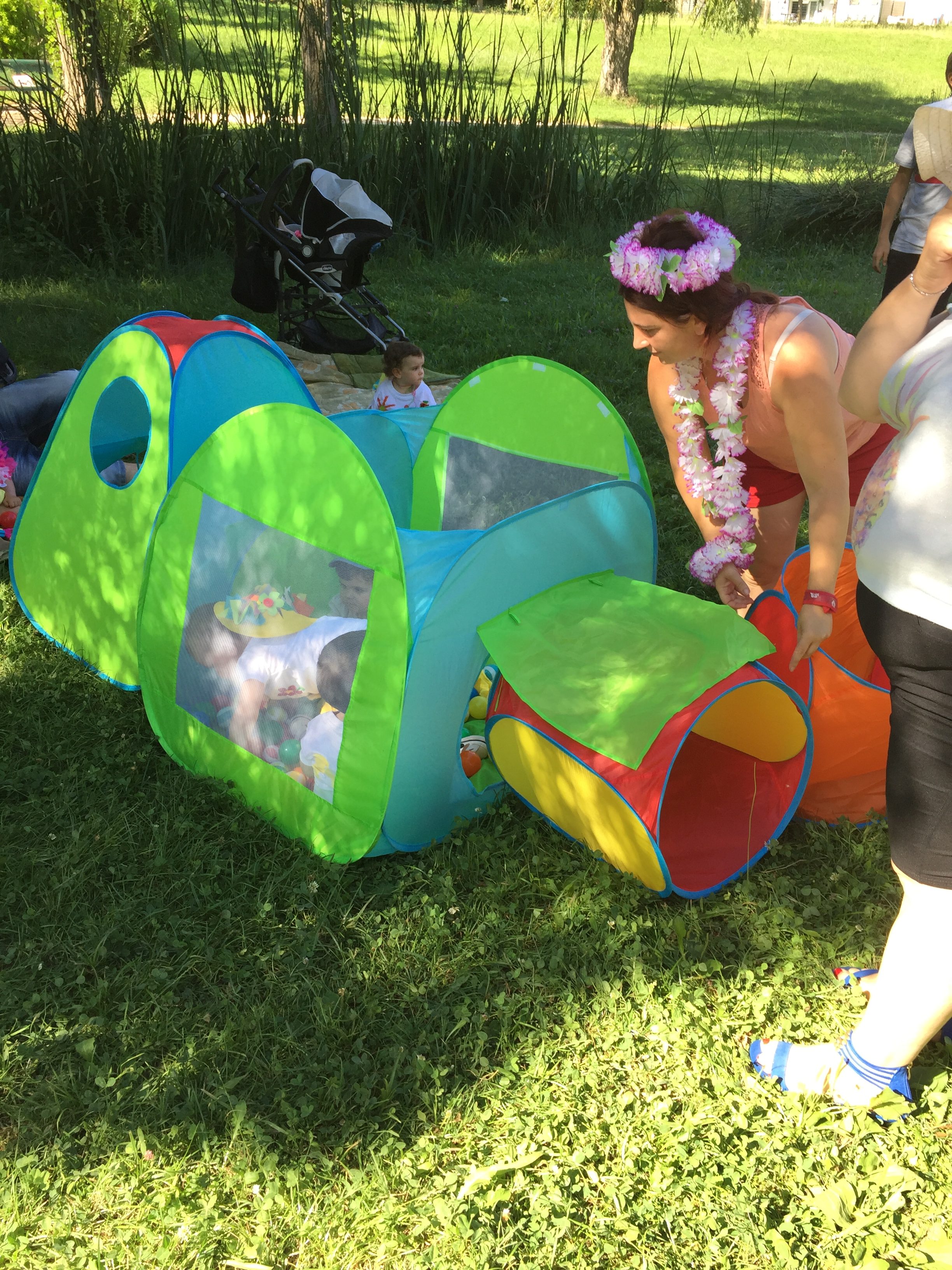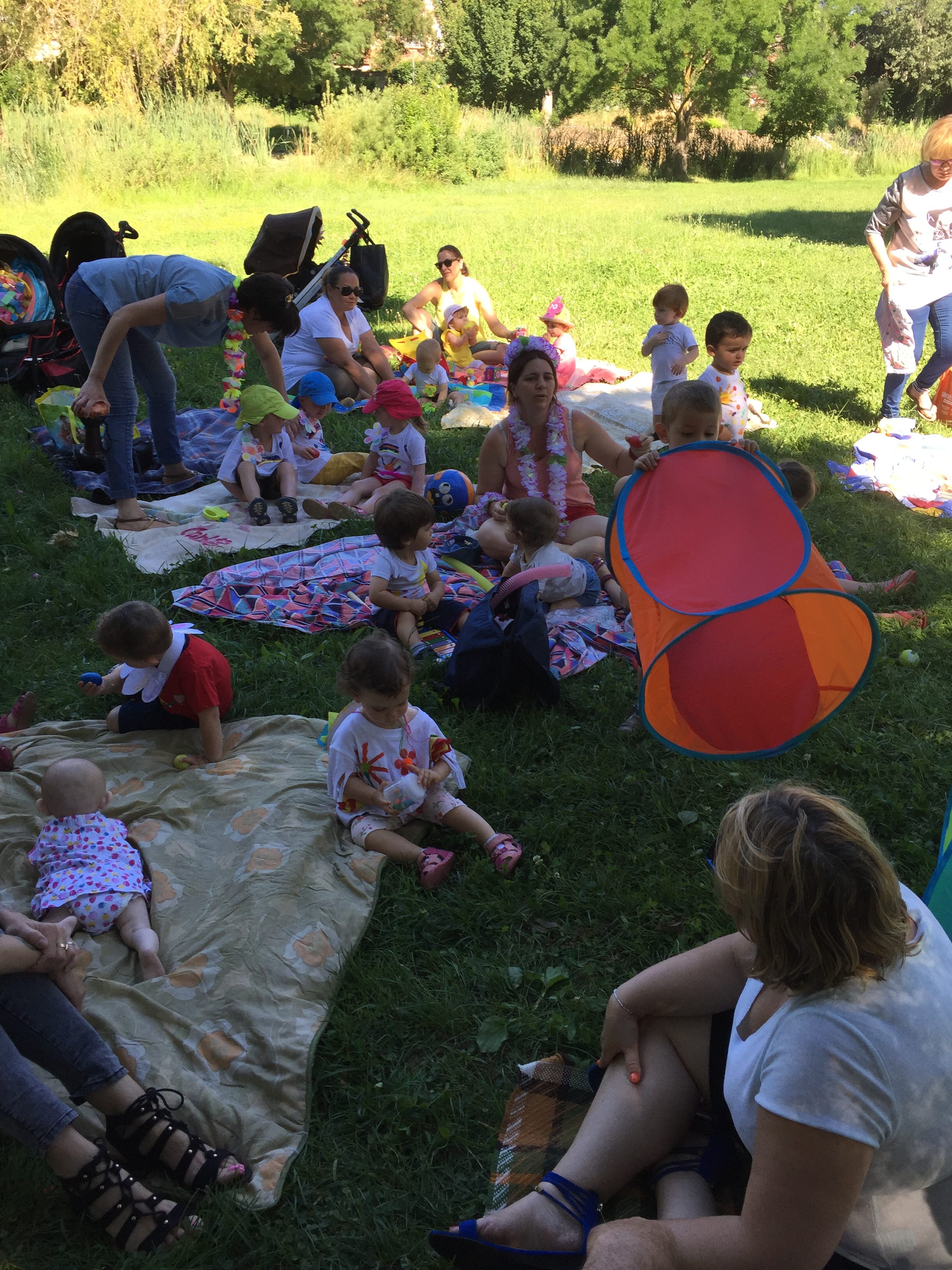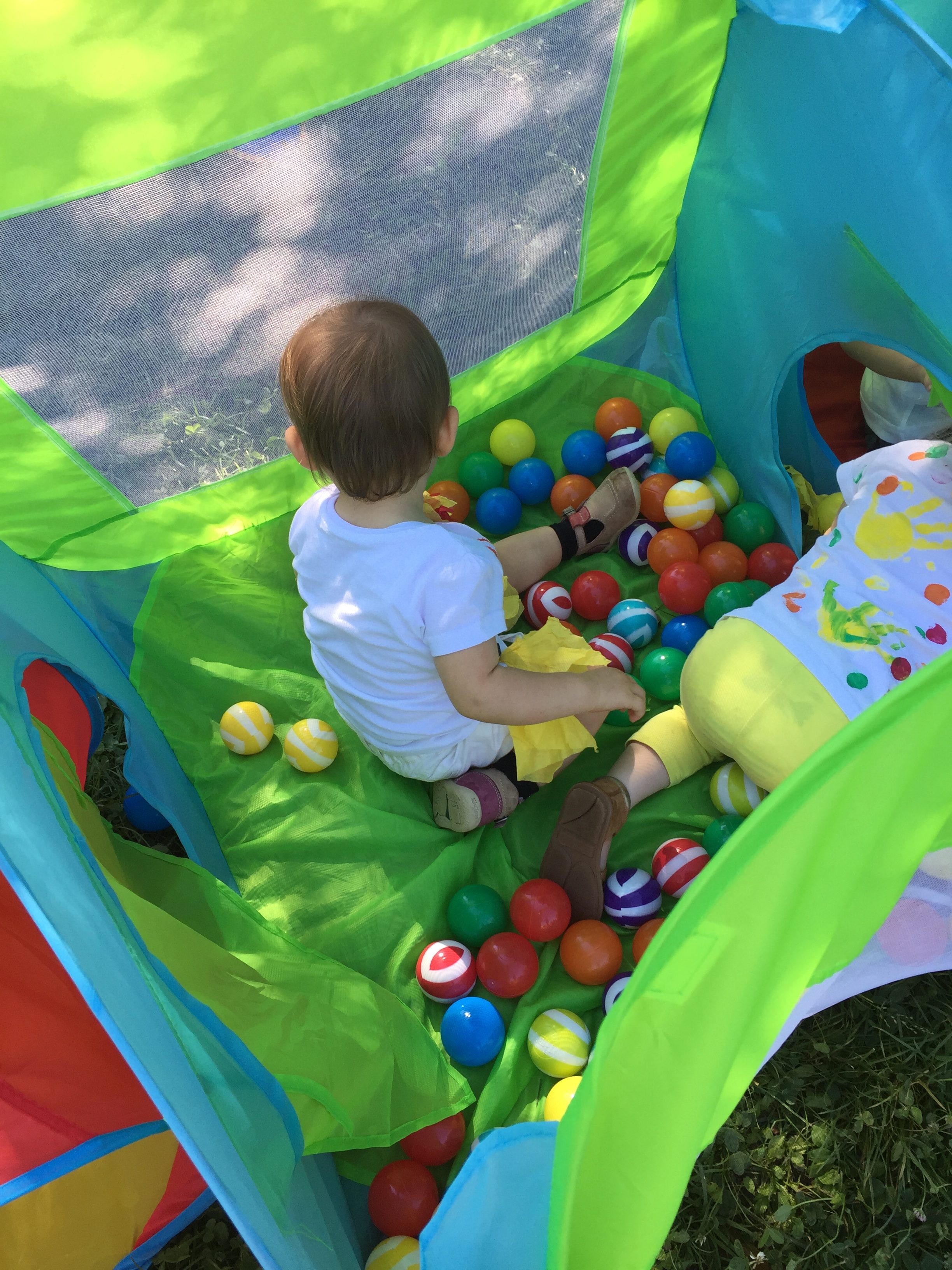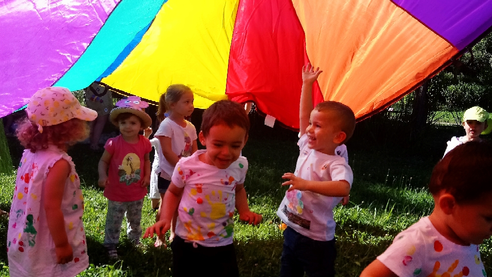 A l’ombre des arbres nous avons pu organiser des moments d’animations, comme le parachute, les piscines a balles, tunnel..