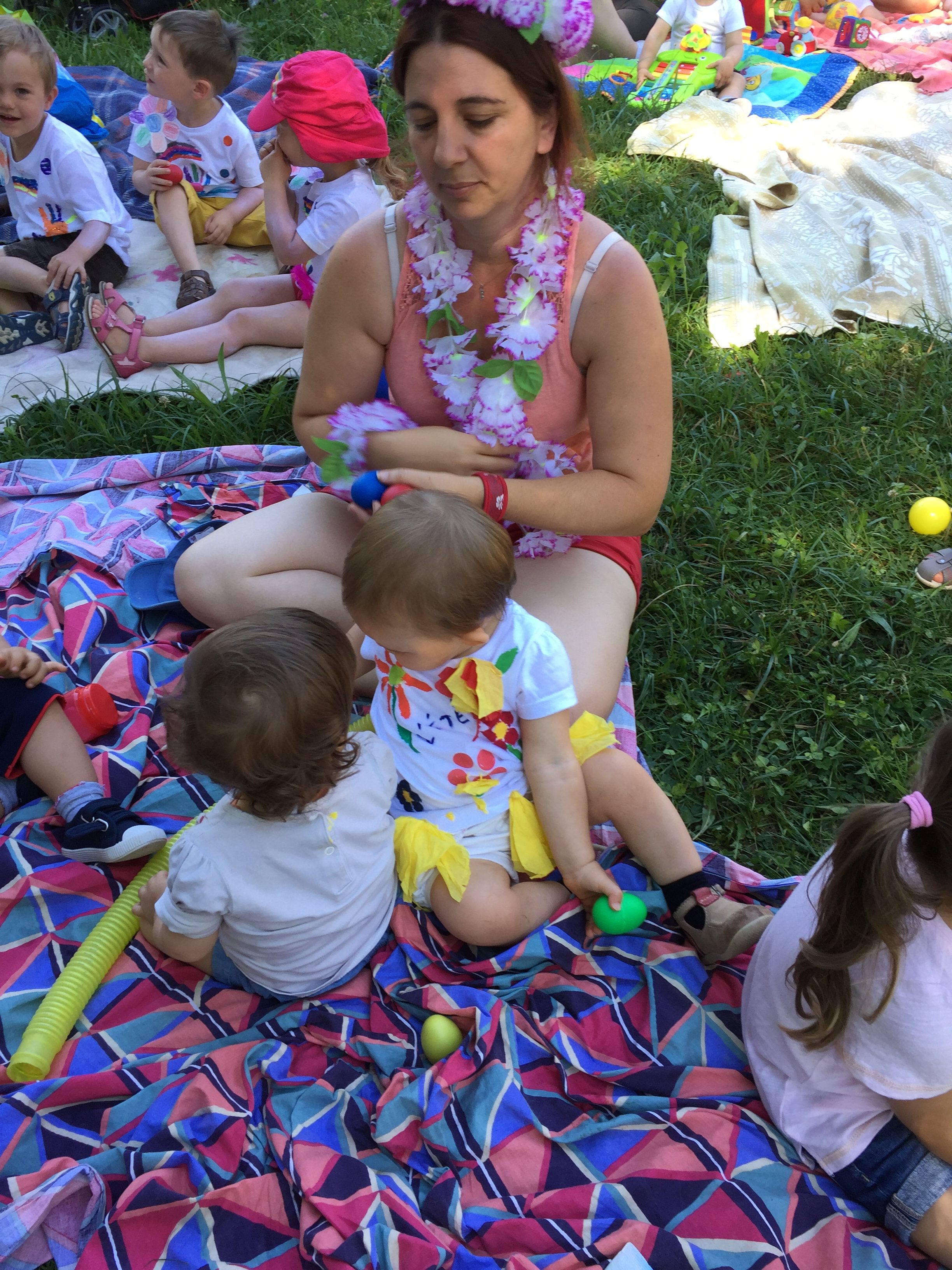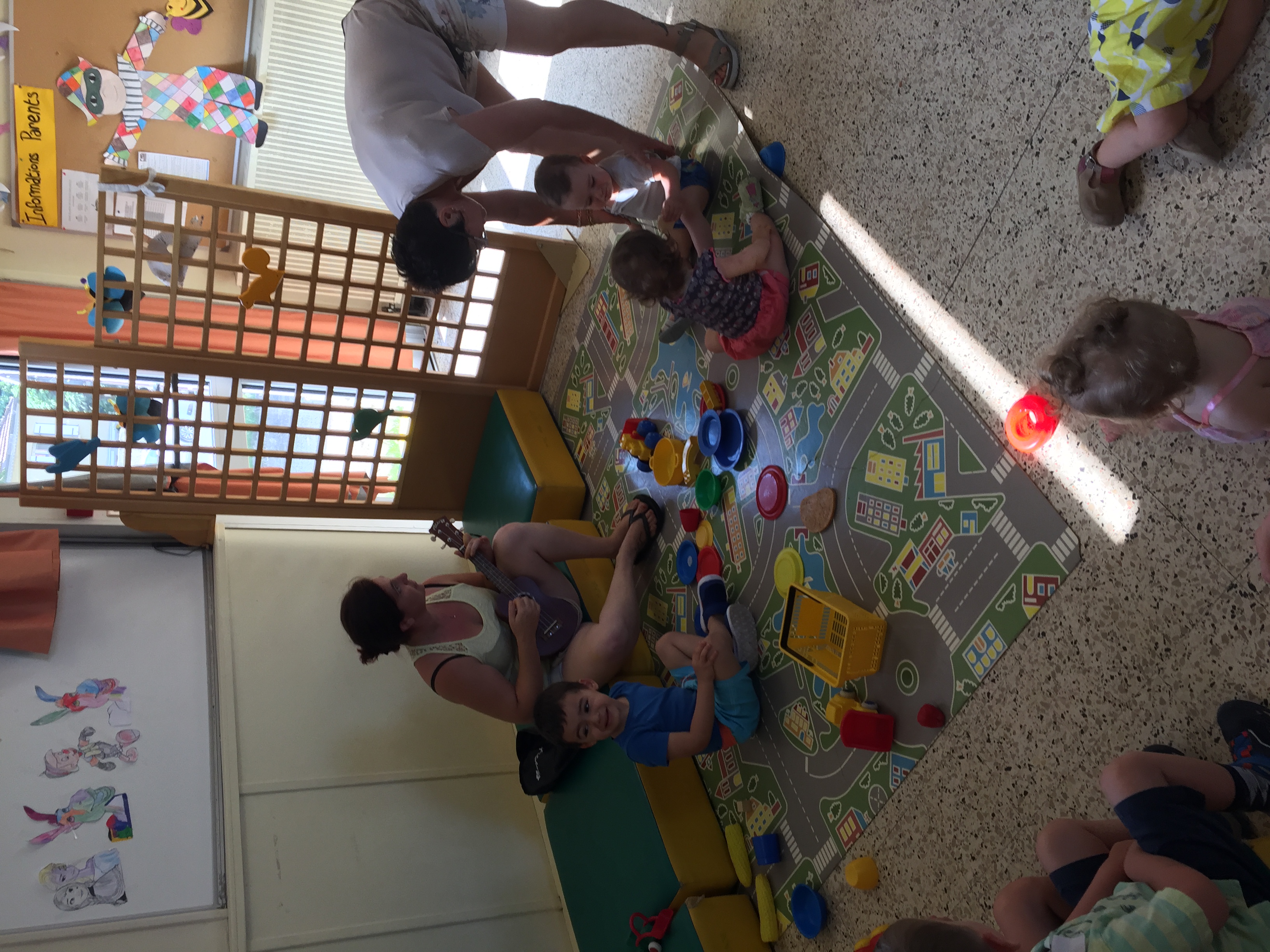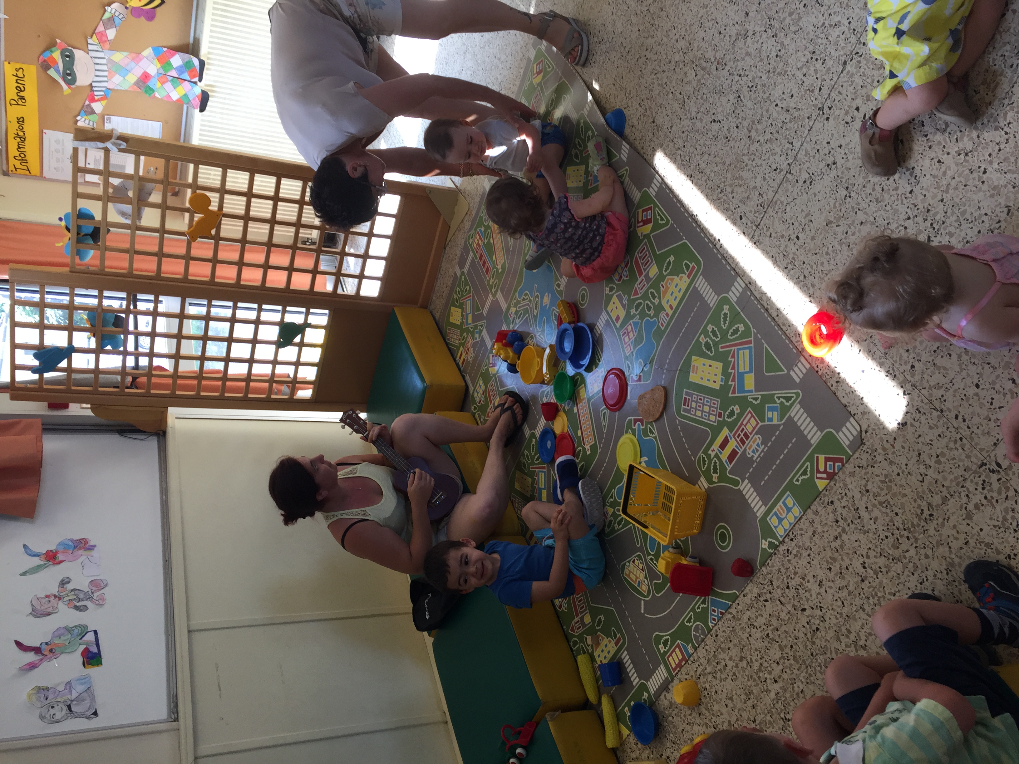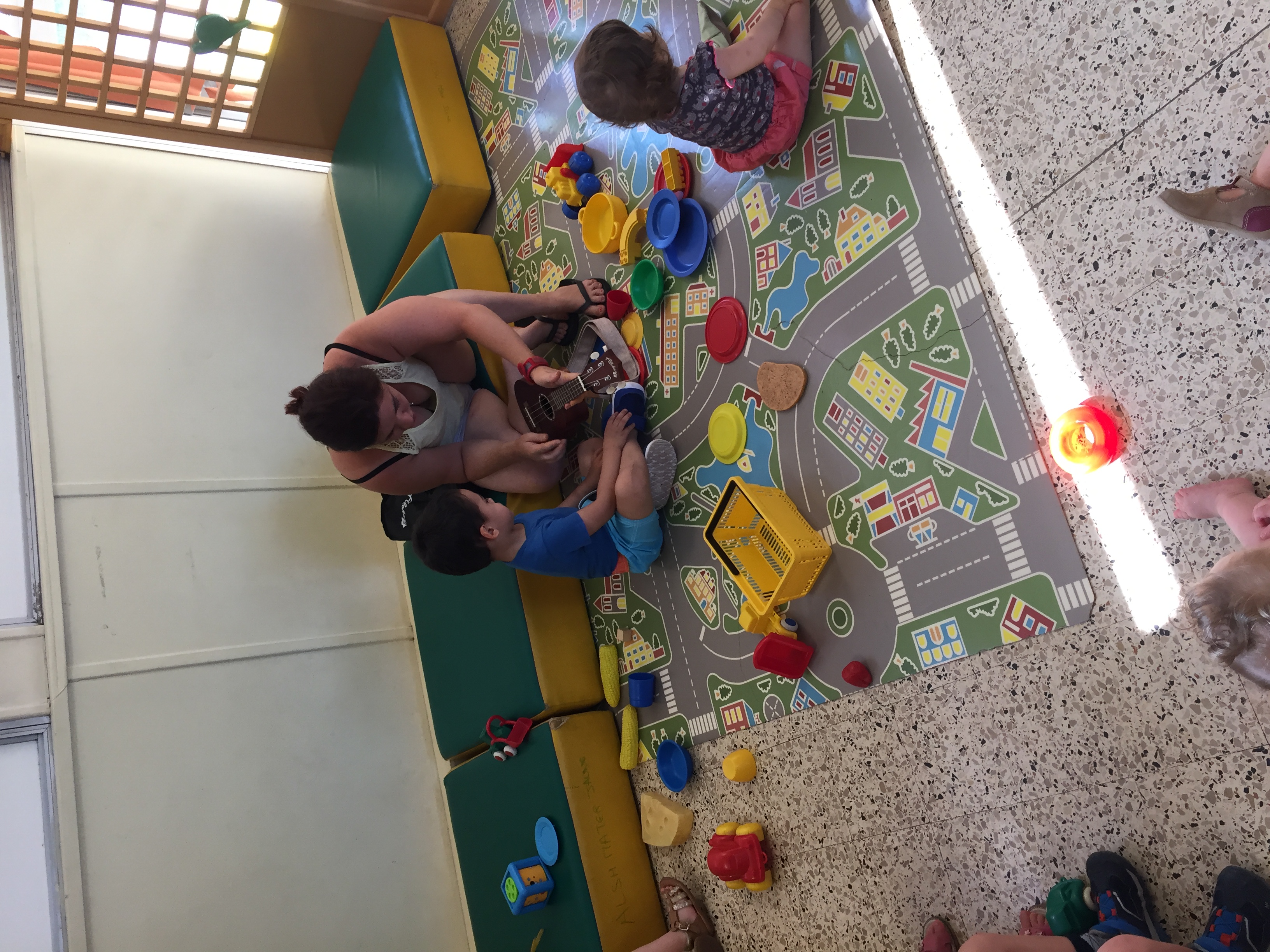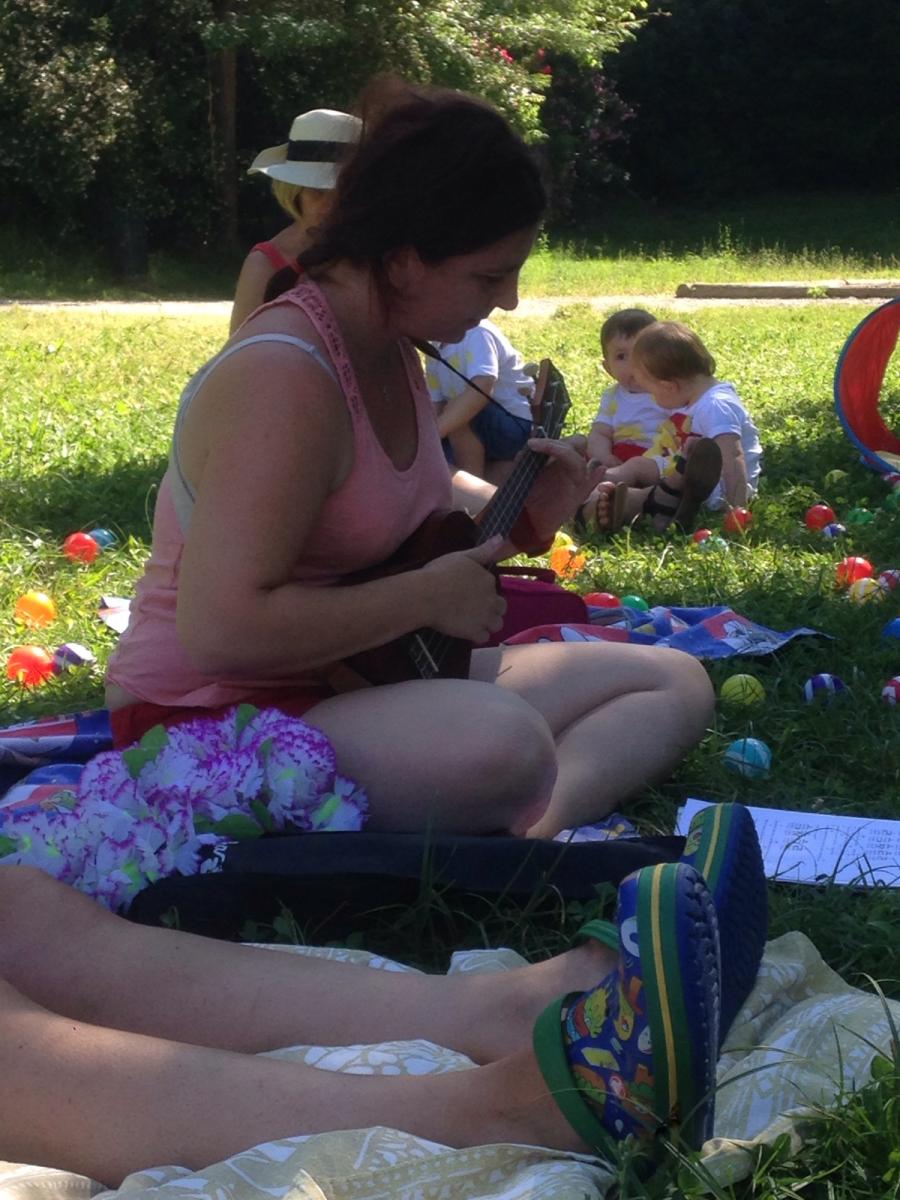 Christelle et son youkoulélé, pour attirer les enfants vers elle pour un petit retour au calme et détente