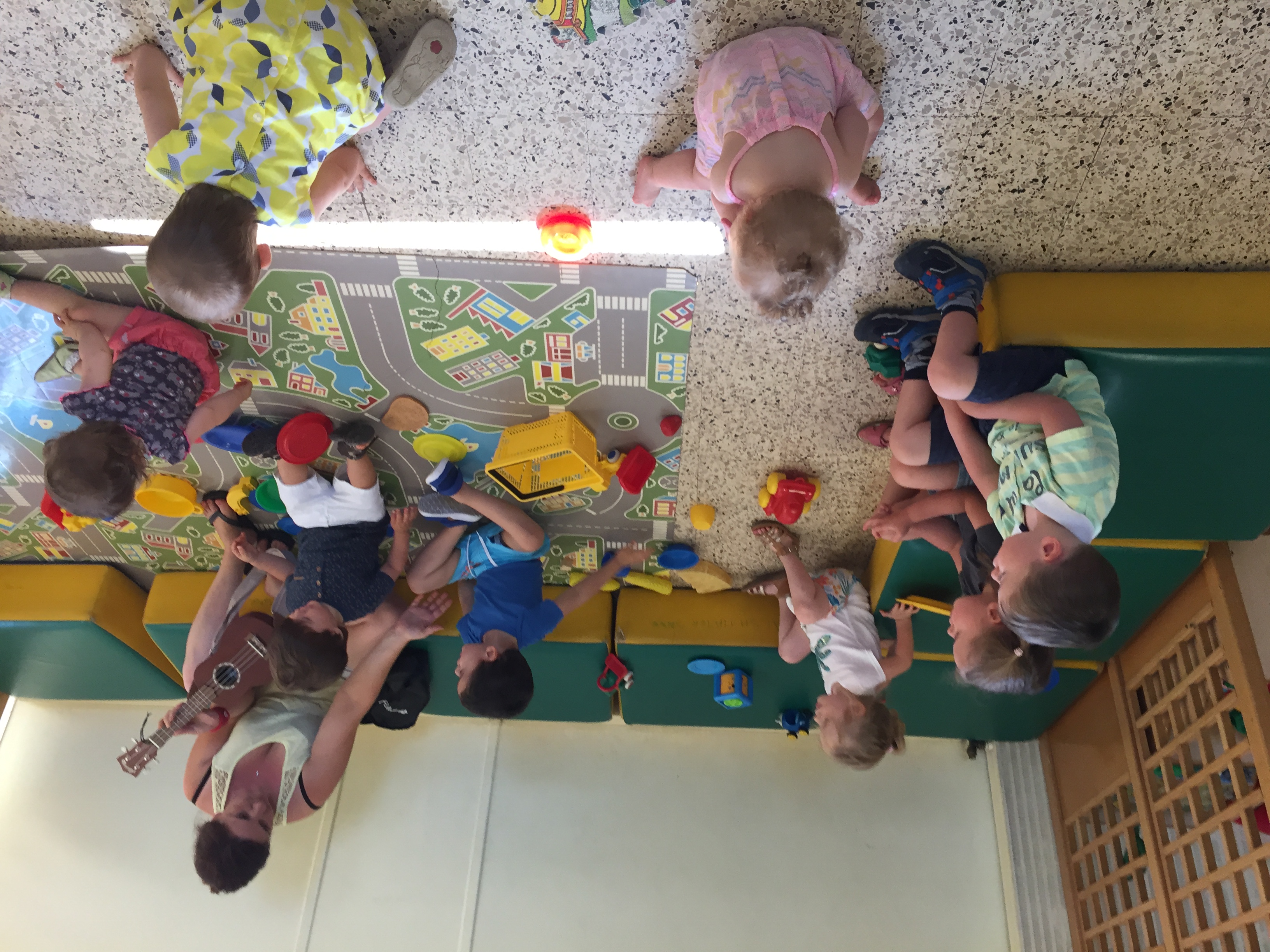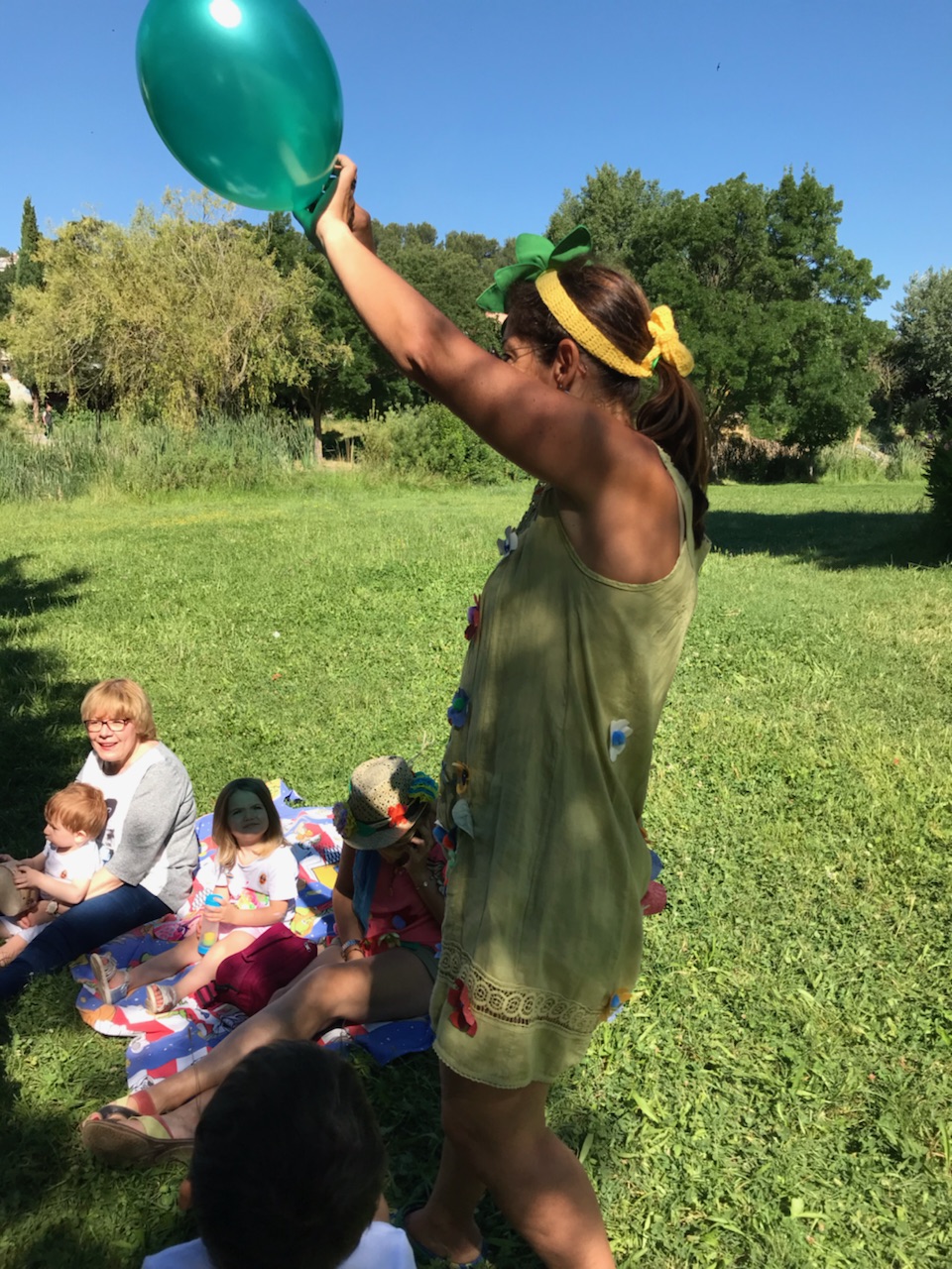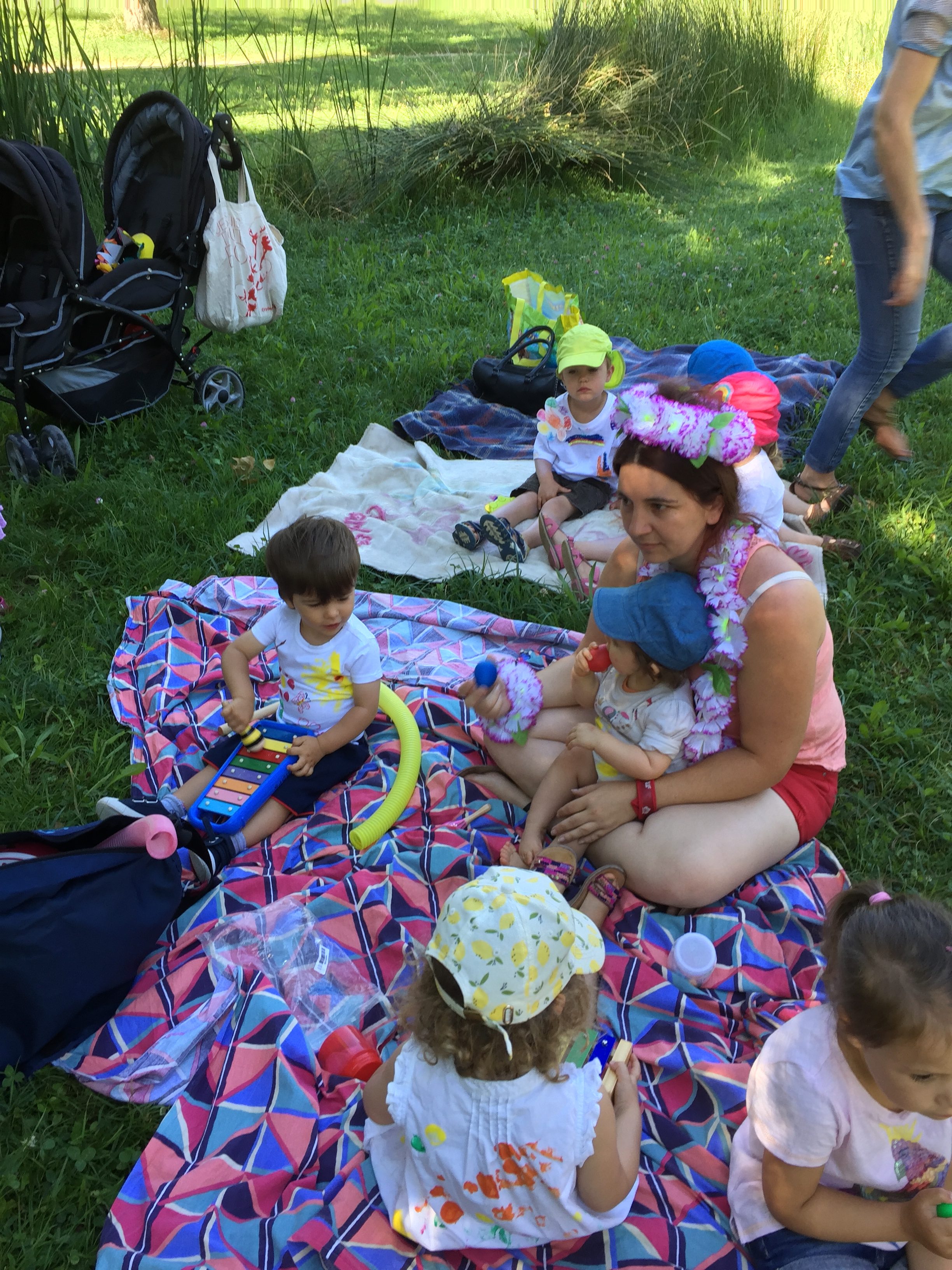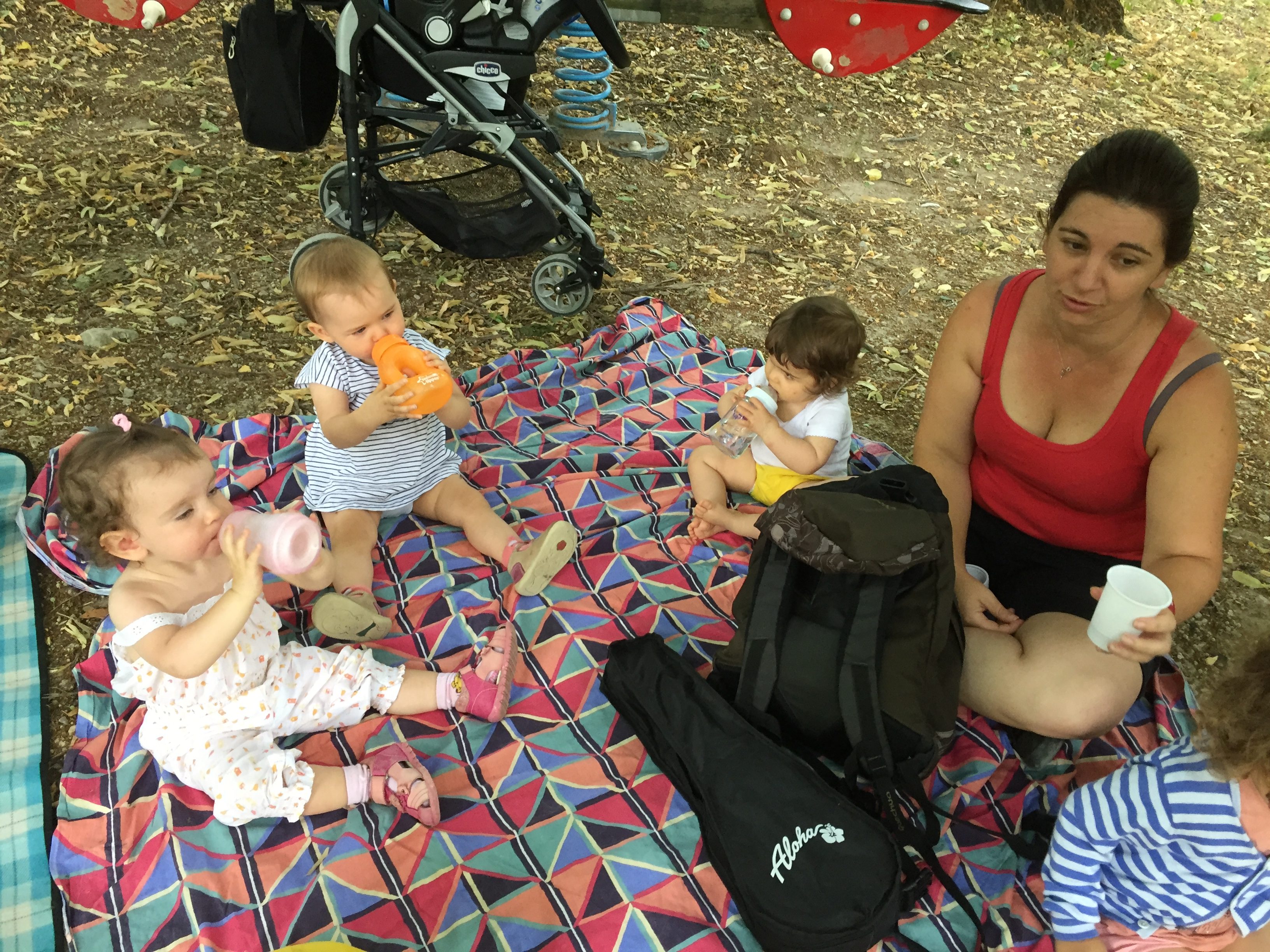 Christelle et son youkoulélé, pour attirer les enfants vers elle pour un petit retour au calme et détente