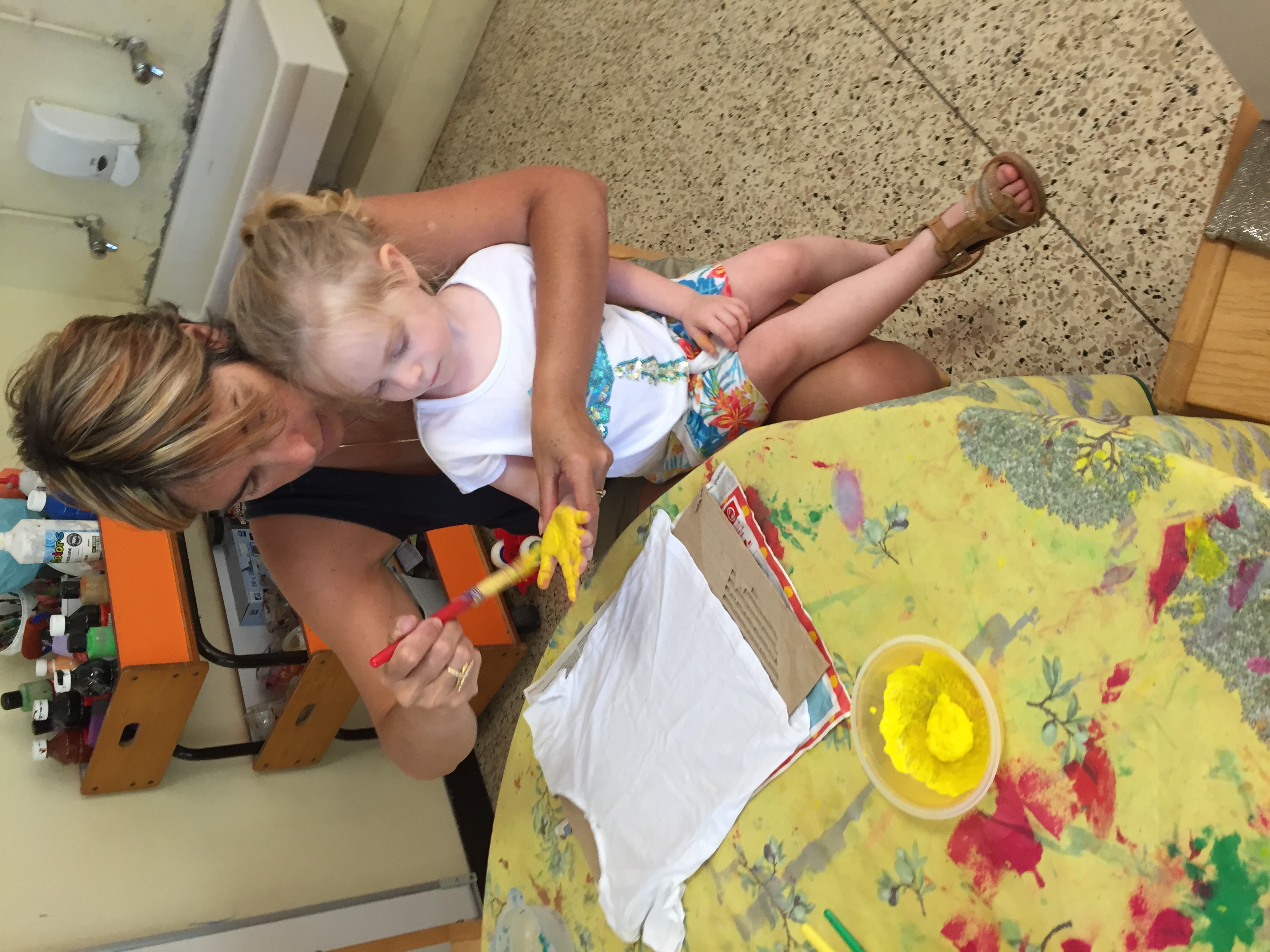 sur un tee shirt Blanc peinture aux couleurs de l’été, du soleil, des fleurs,